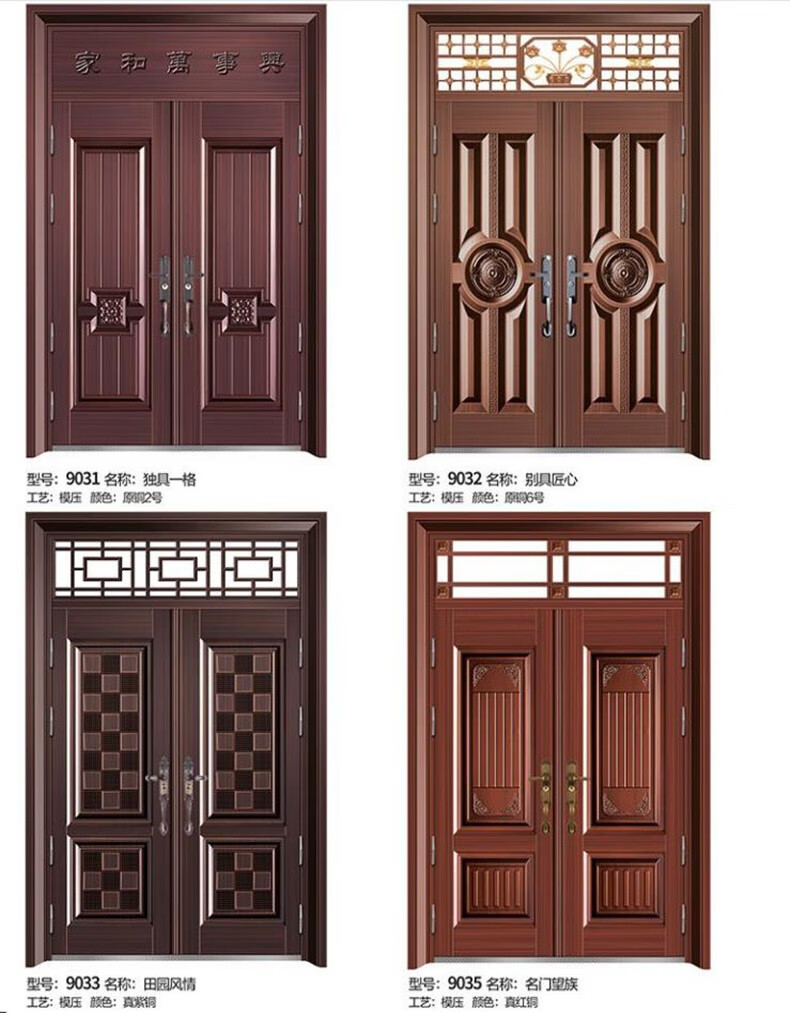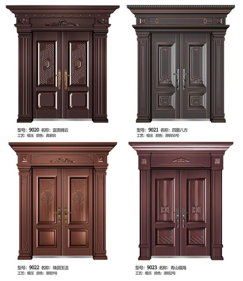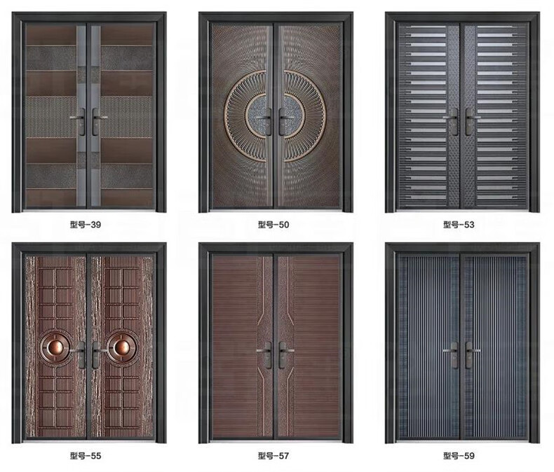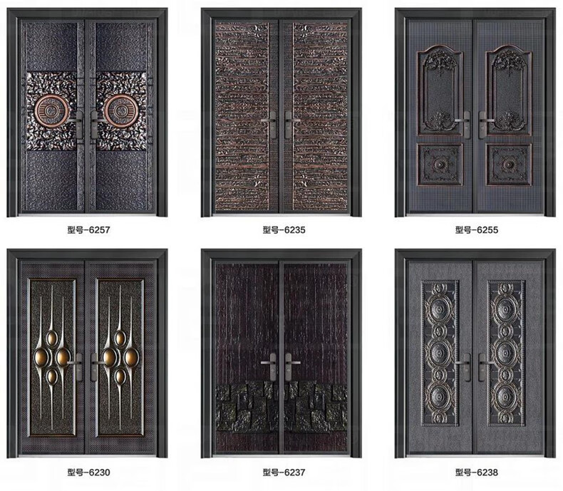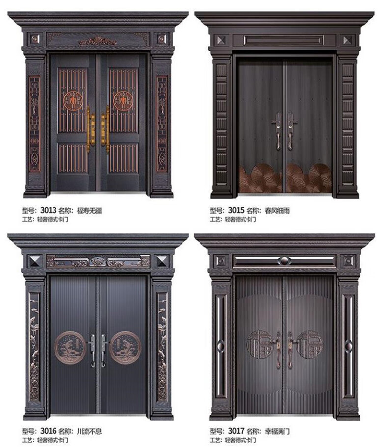 Chenyuju rural zinc alloy villa door luxury imitation copper door household security door cast aluminum double door self-built house entry door style 1