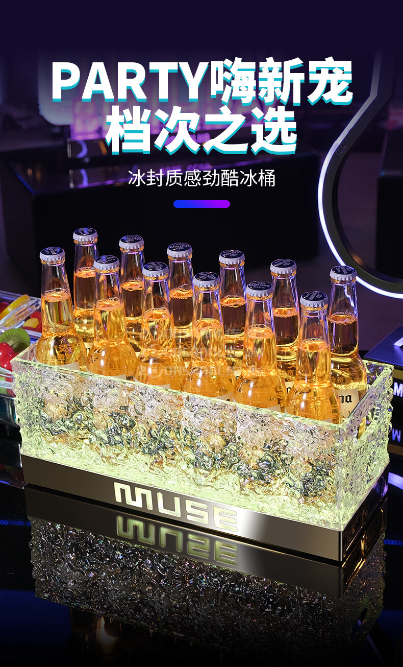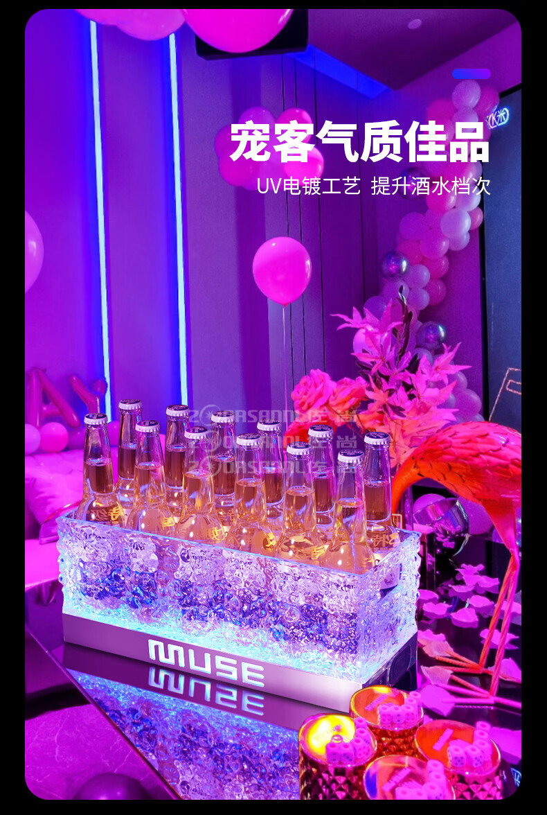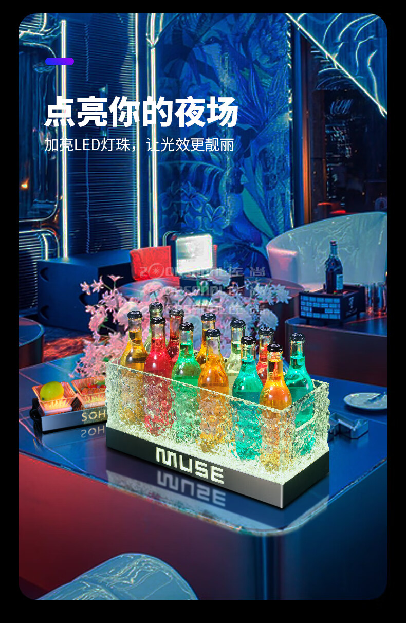 Hualeji luminous wine basket ice bucket commercial acrylic champagne bucket led beer box party ktv cocktail bucket bar ice bucket fifth generation charging box (with 3000 mAh seven color TV