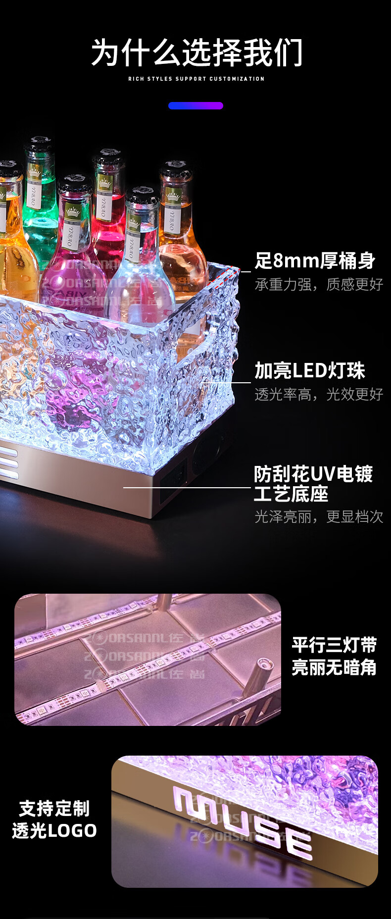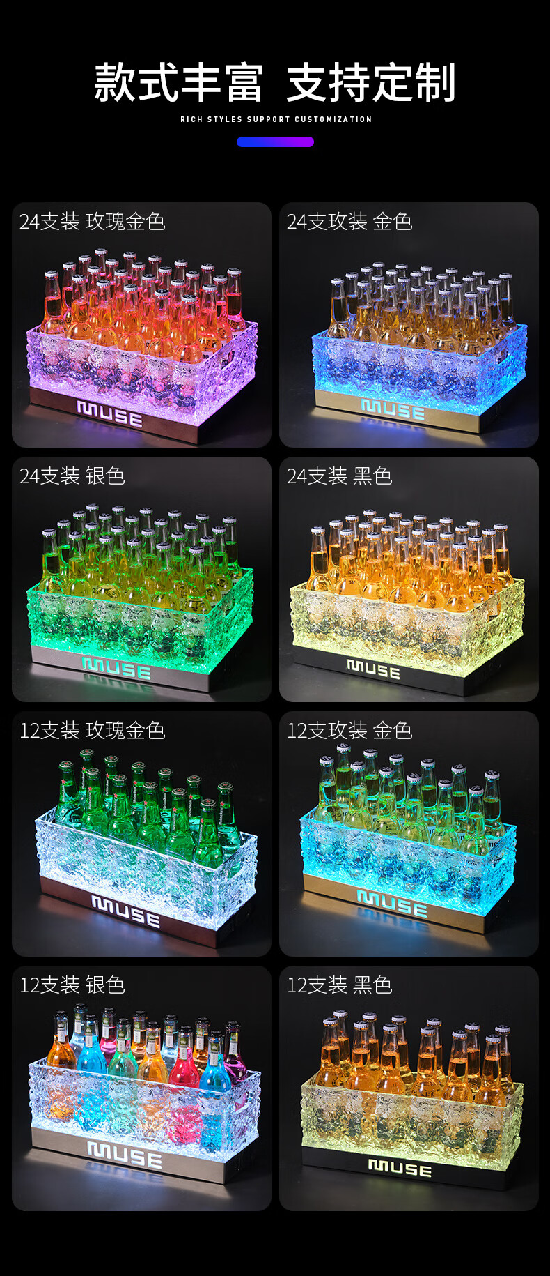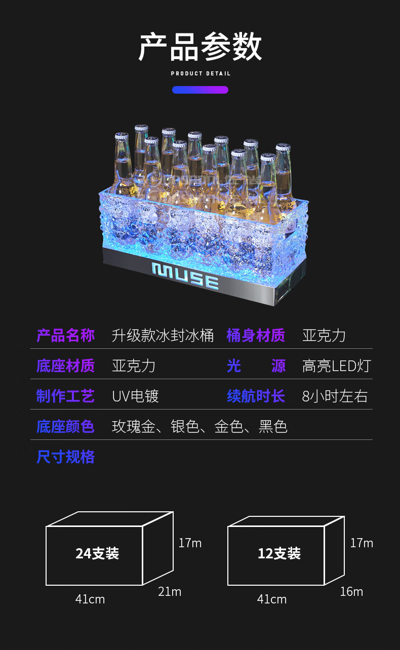 Hualeji luminous wine basket ice bucket commercial acrylic champagne bucket led beer box party ktv cocktail bucket bar ice bucket fifth generation charging box (with 3000 mAh seven color TV