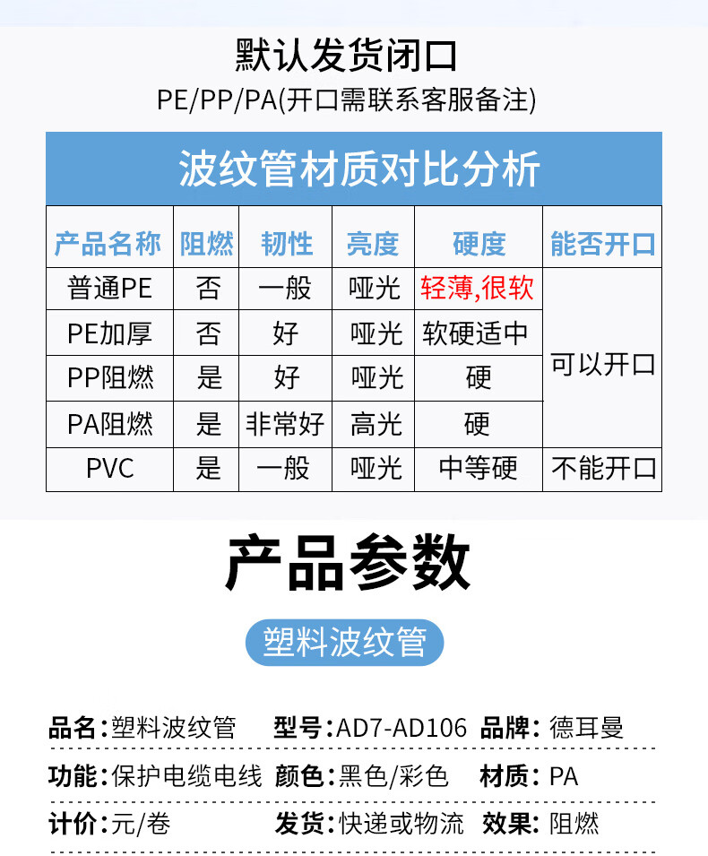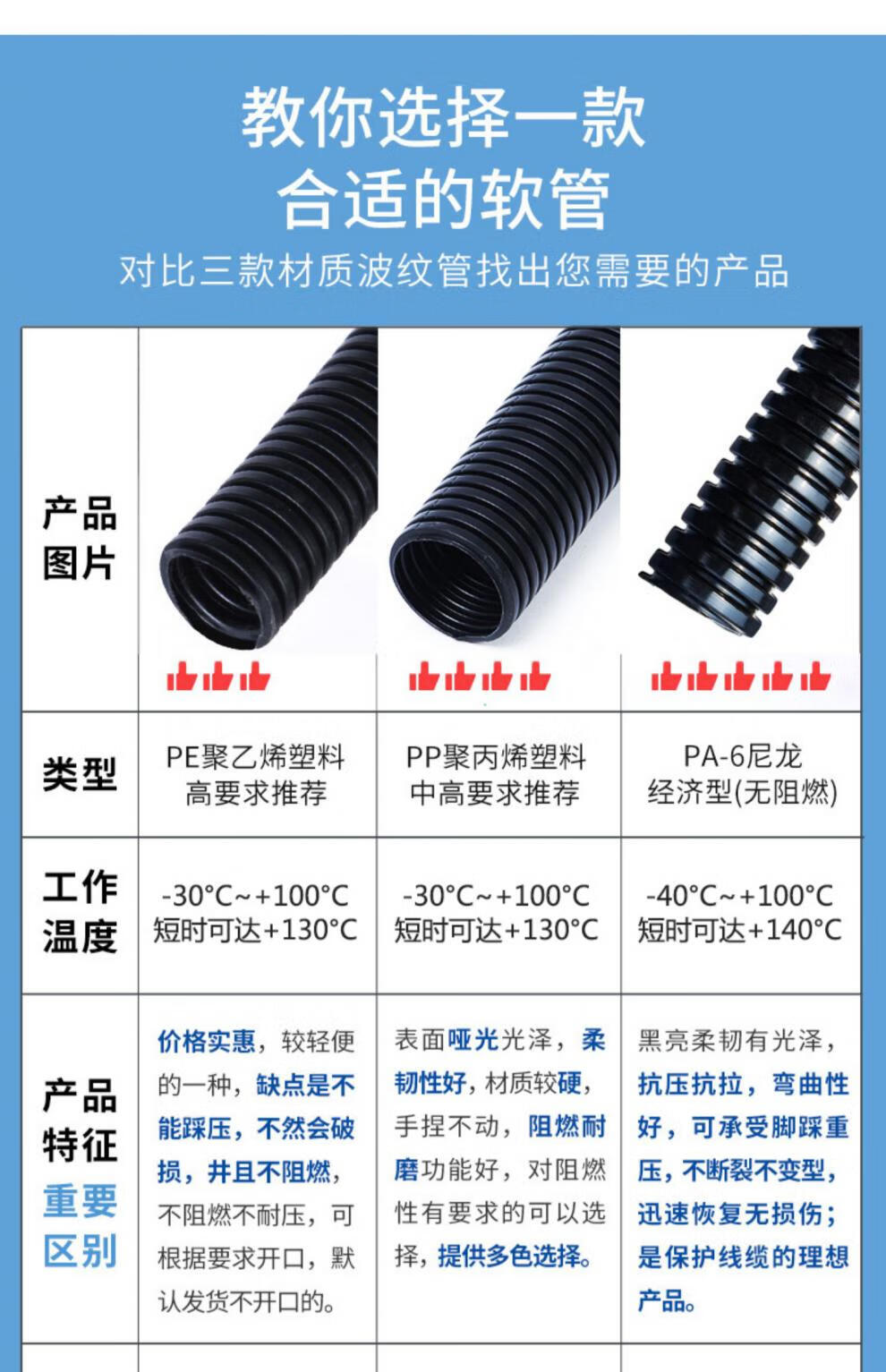 TLXTPA nylon plastic corrugated pipe waterproof flame retardant cable protection sleeve open threaded threading hose 4 minutes 6 minutes PA flame retardant-AD25 (inner diameter 20mm) 100 meters