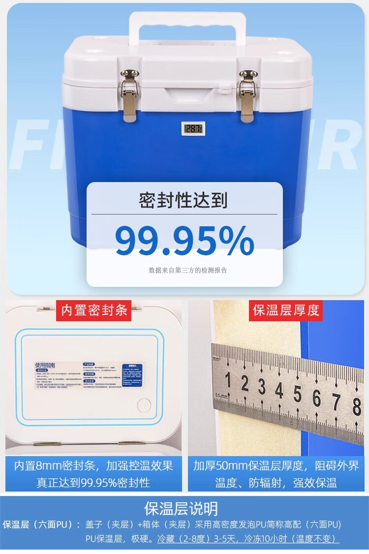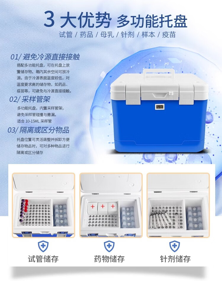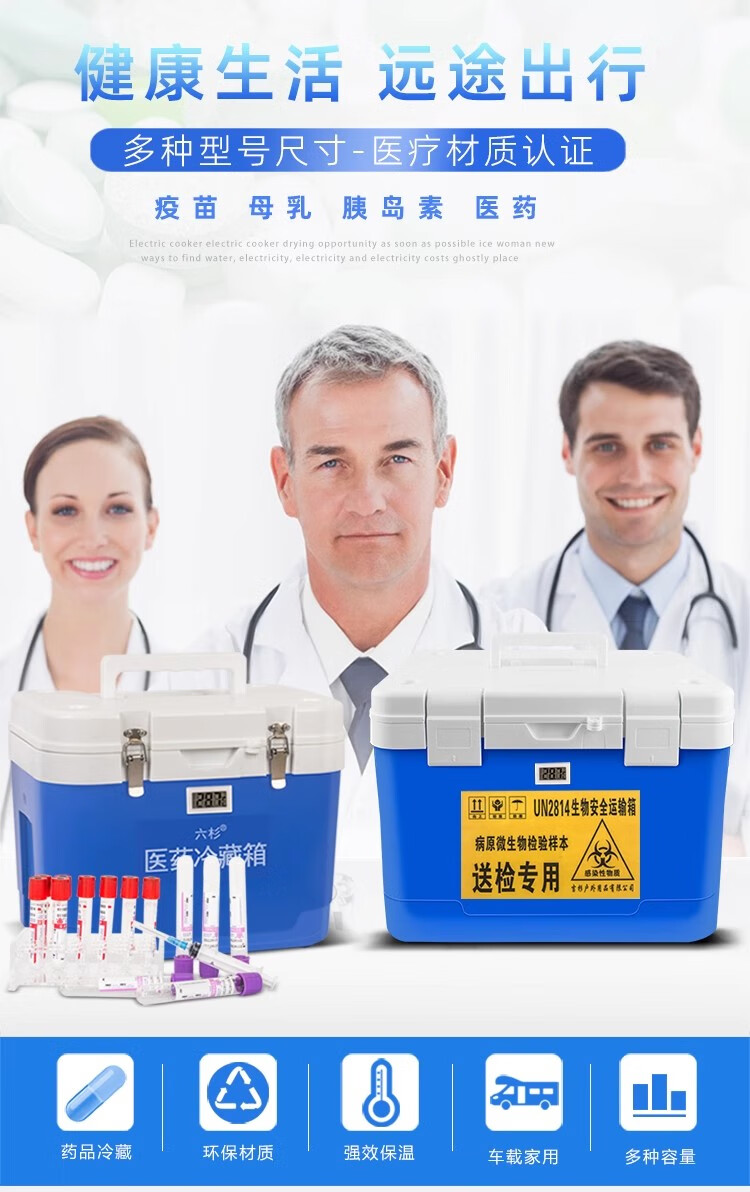 Liushan medical refrigerator 2-8 degrees portable incubator vaccine medicine breast milk cold chain box specimen transfer transport box 56L (partition + temperature display + 20 ice bags) thickened PU