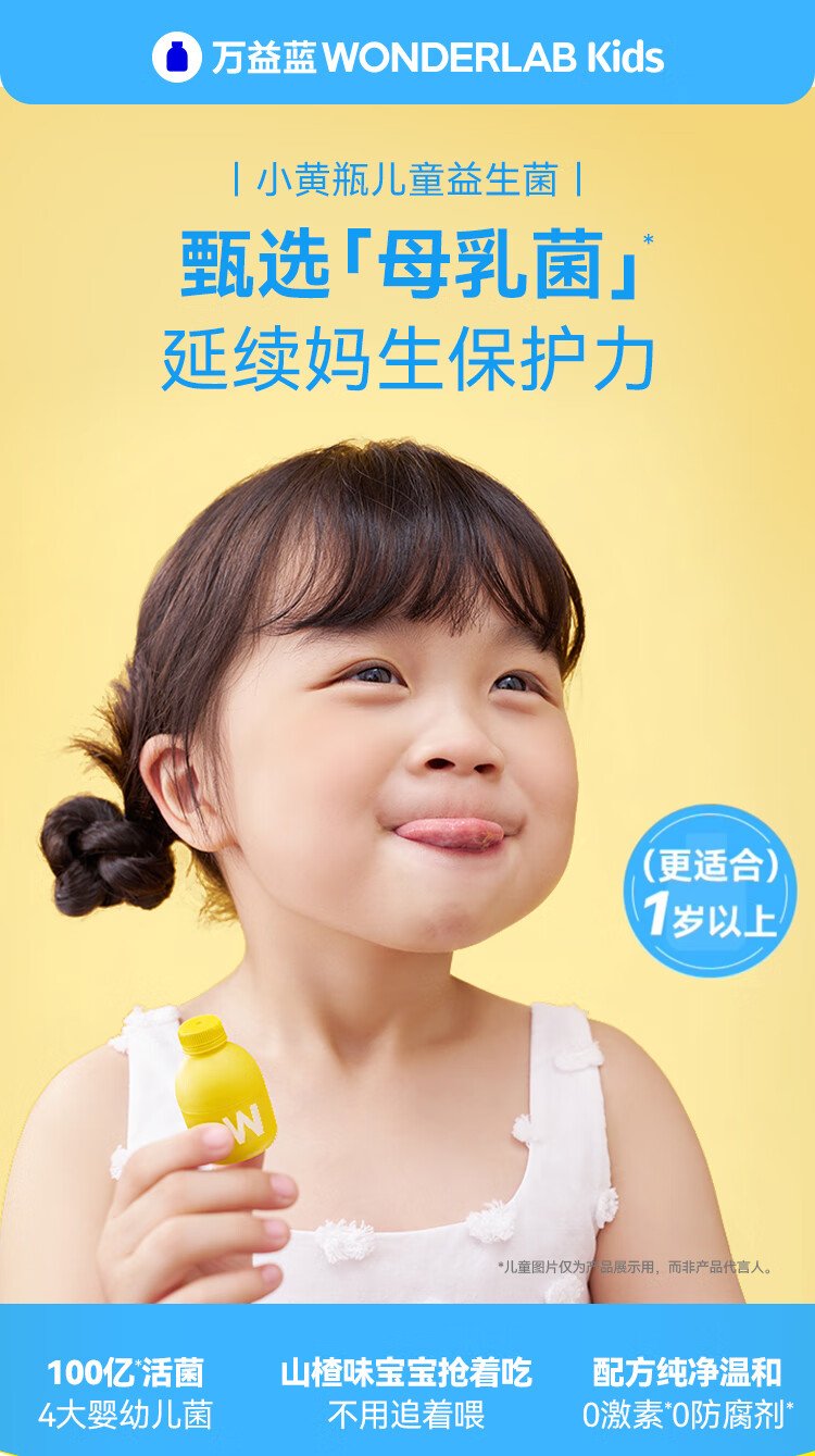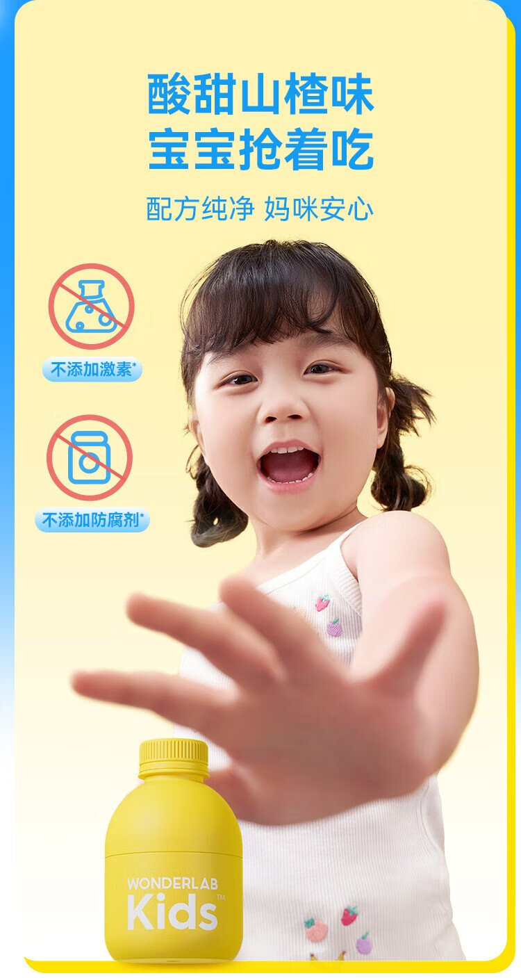 WonderLab Children's Probiotics Small Yellow Bottle Probiotics Baby Hawthorn Flavor Ready-to-Eat Lactic Acid Bacteria 3 Months Consolidation Set 10 Bottles*9 Boxes