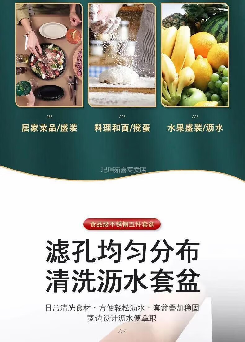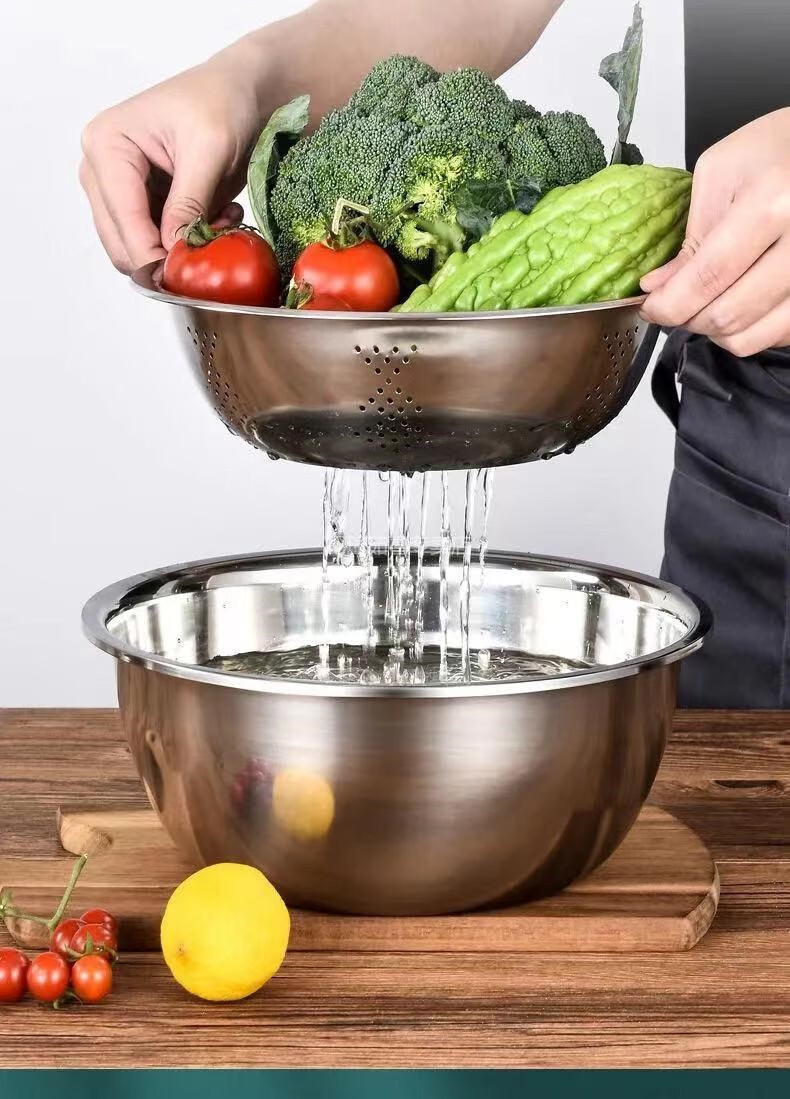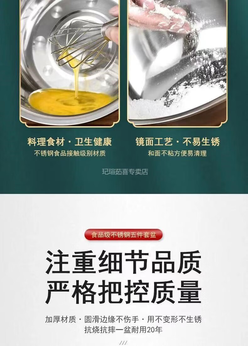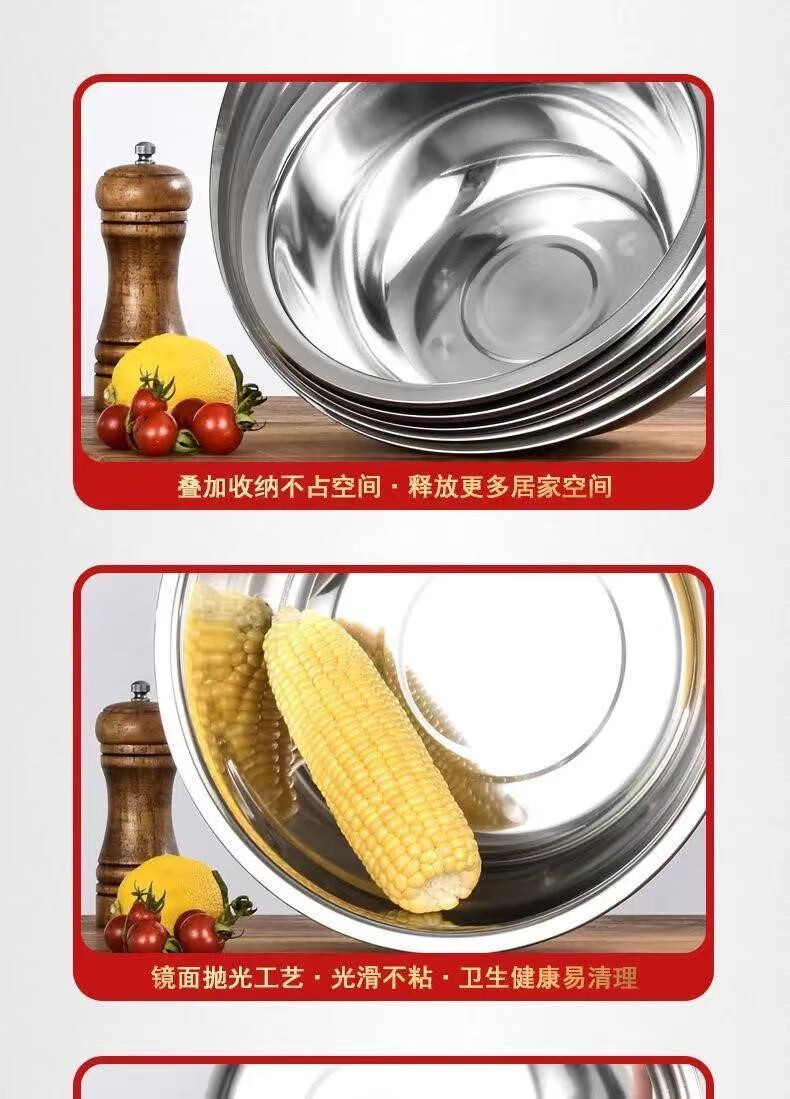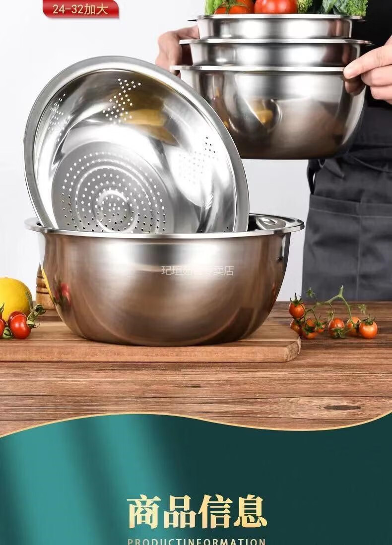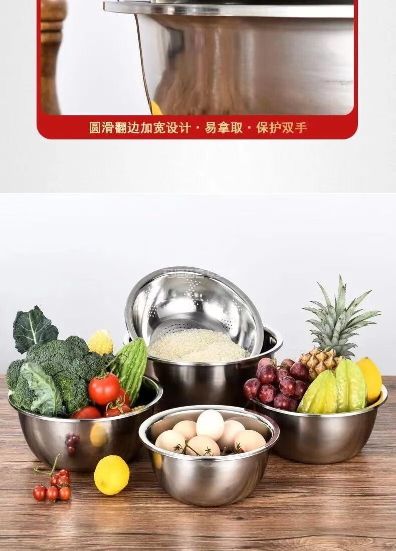 Burnison pots and pans kitchen utensils set of ten pieces and five pieces of stainless steel thickened kitchen egg beater thickened version (4 solid basins and 1 leaky basin) 5-piece set extra large 24+26+28+30+32cm
