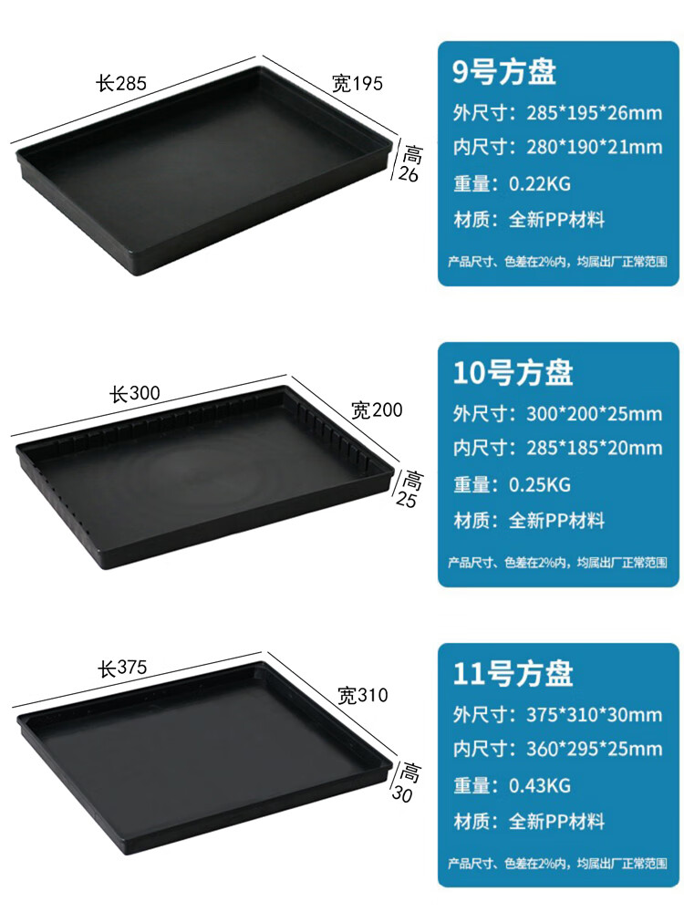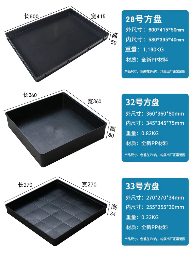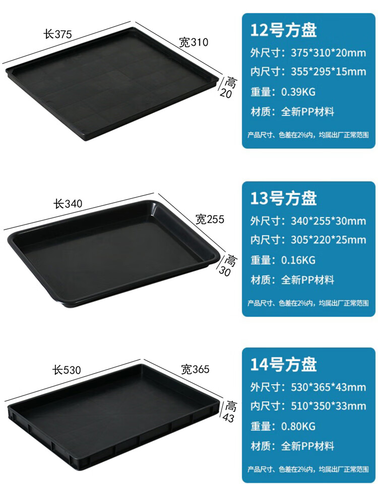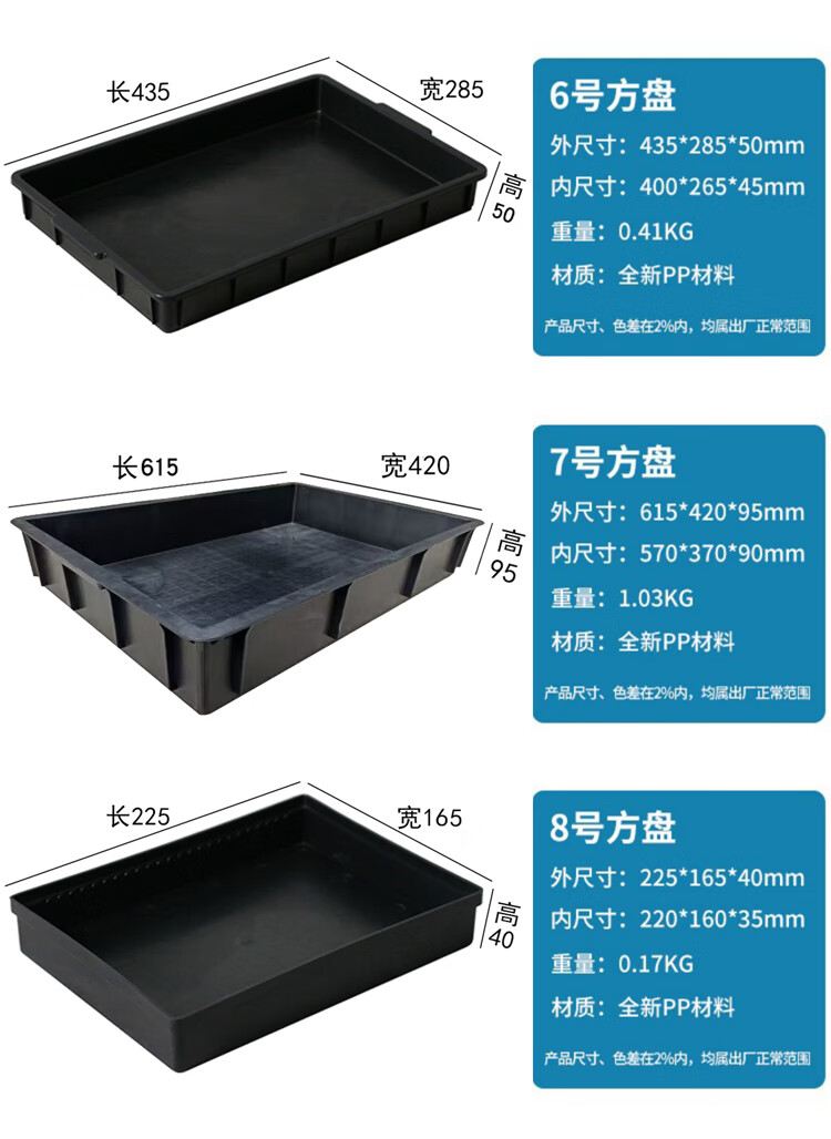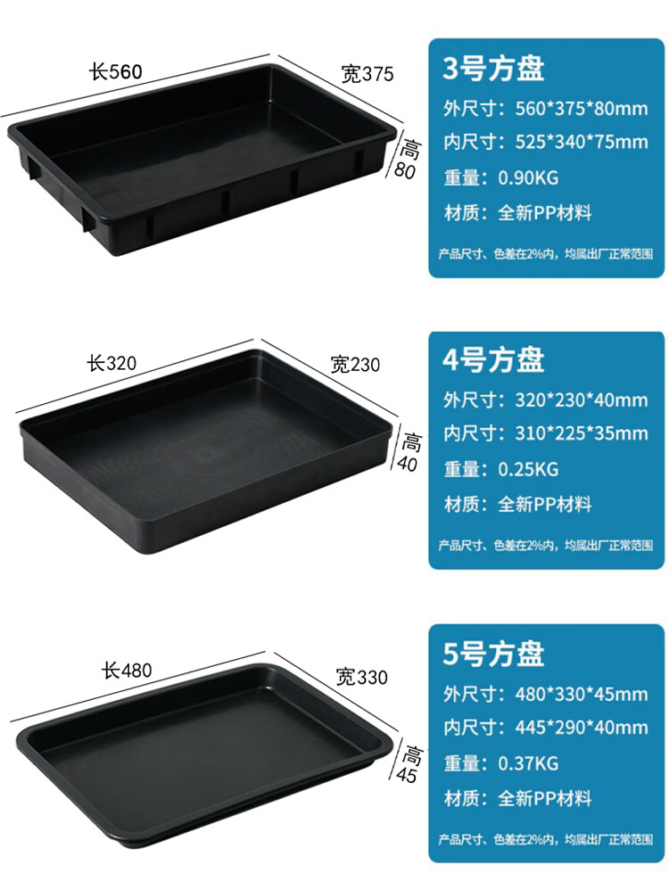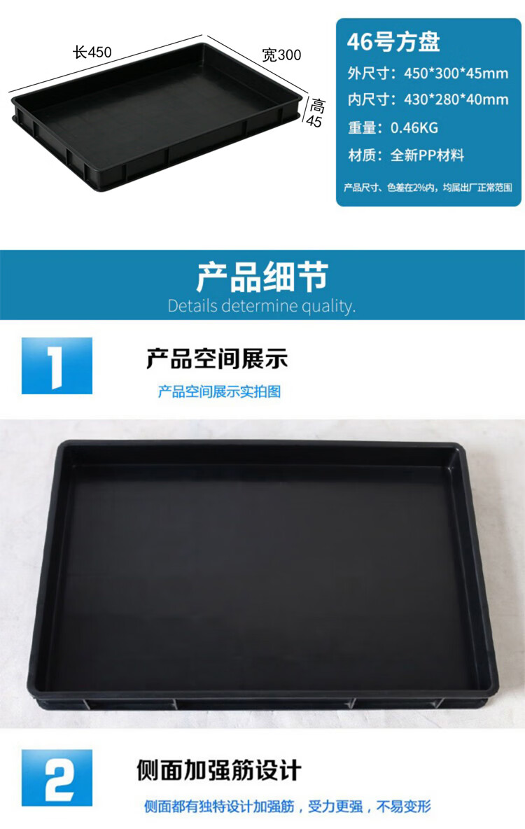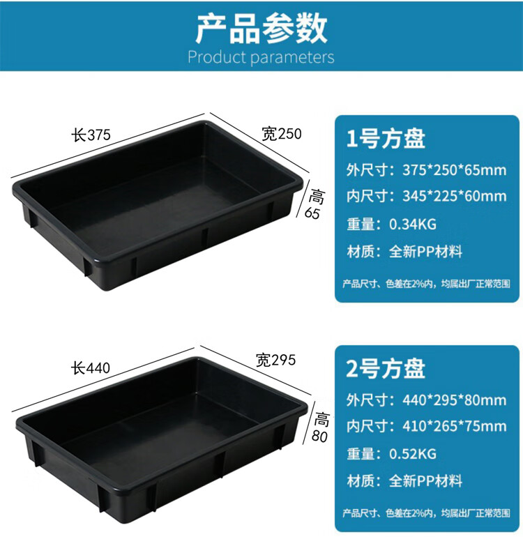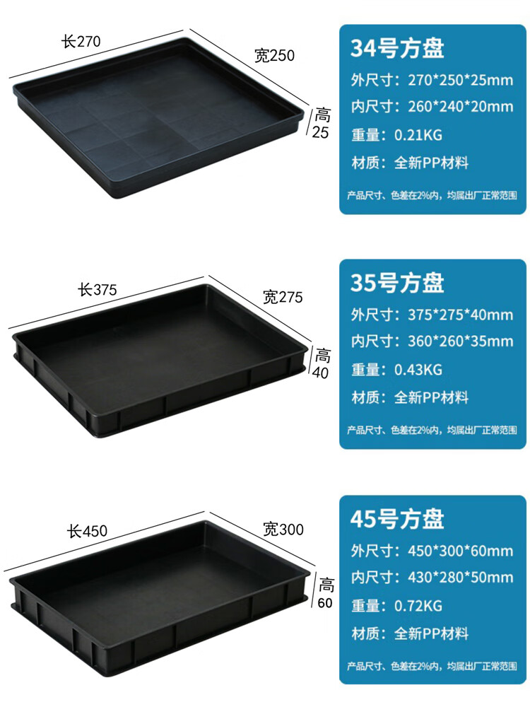 Plastic anti-static pallet rectangular square plate thickened component box material box parts box tool turnover box black No. 1 square plate 375*250*65mm