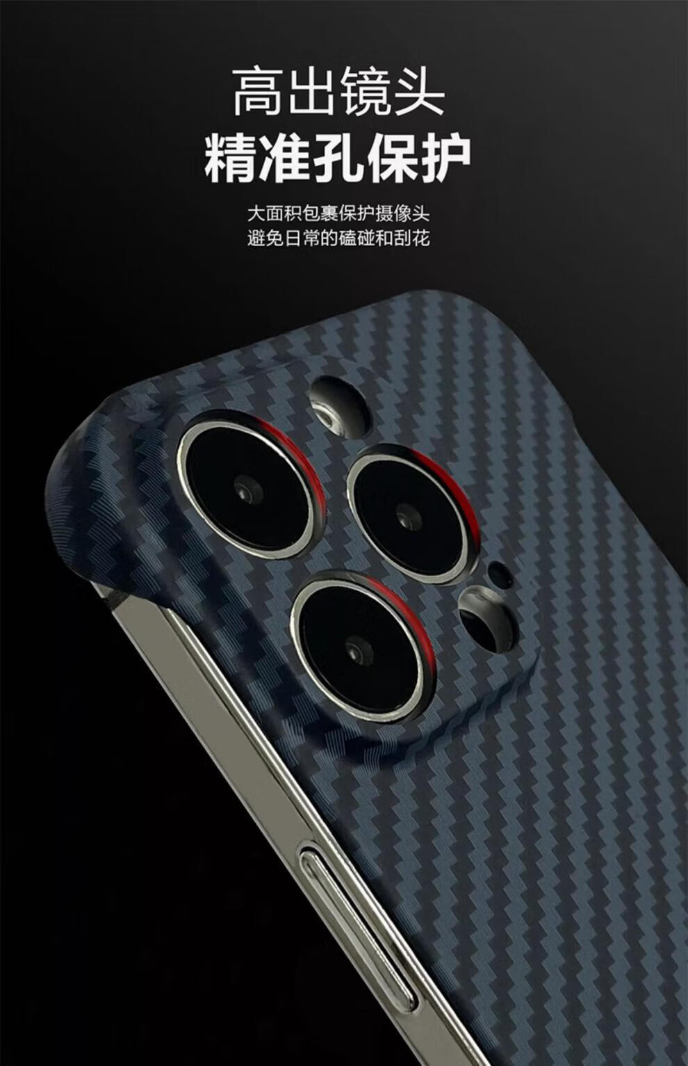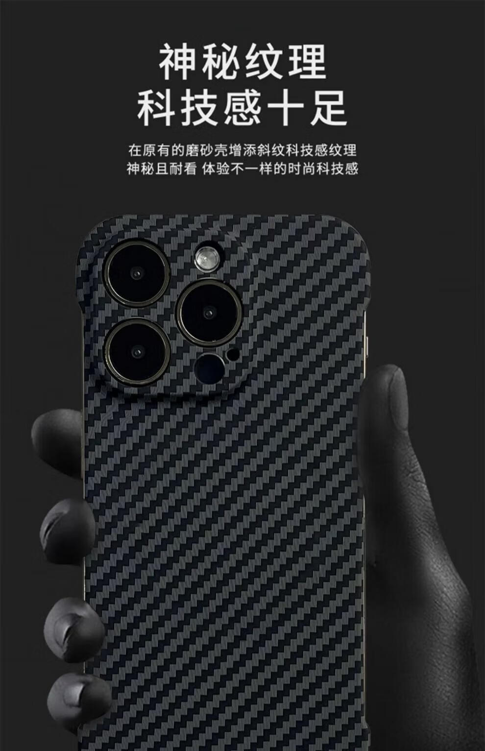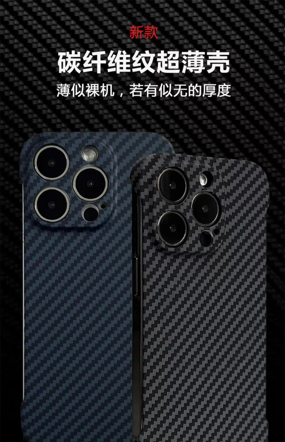 Suitable for Apple 15 mobile phone case carbon fiber iphone15promax protective cover new 15plus half pack Kevlar frameless bare metal boys black frameless carbon fiber pattern case bare metal feel + explosion-proof film iPhone 15 Pro