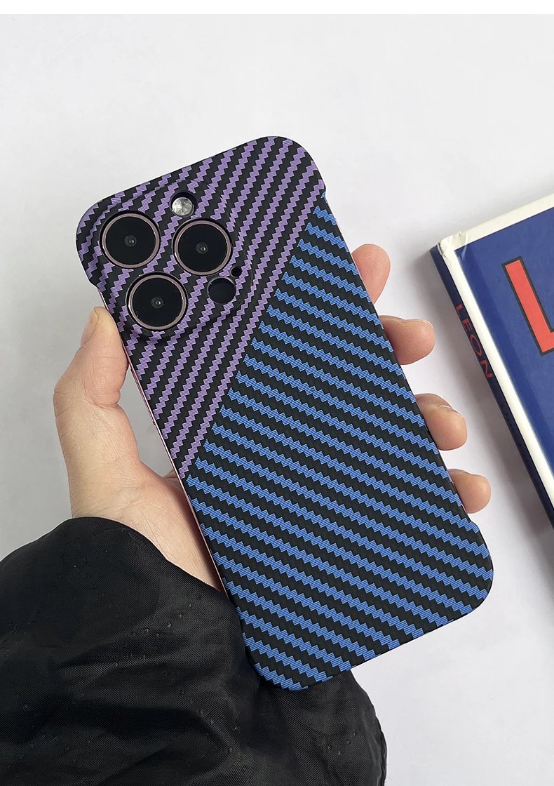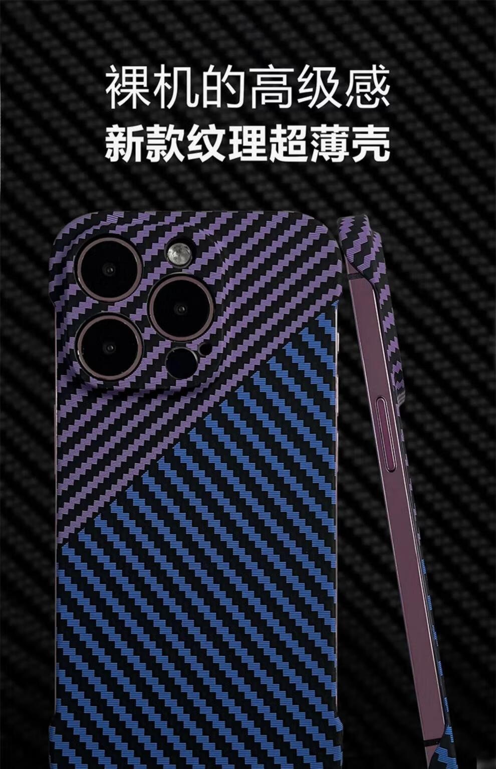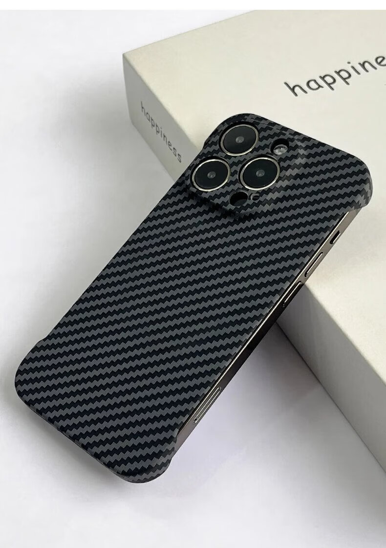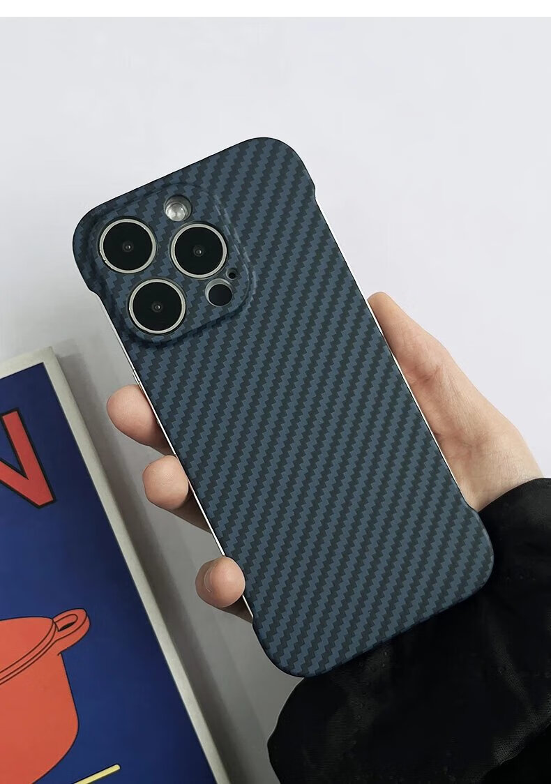 Suitable for Apple 15 mobile phone case carbon fiber iphone15promax protective cover new 15plus half pack Kevlar frameless bare metal boys black frameless carbon fiber pattern case bare metal feel + explosion-proof film iPhone 15 Pro