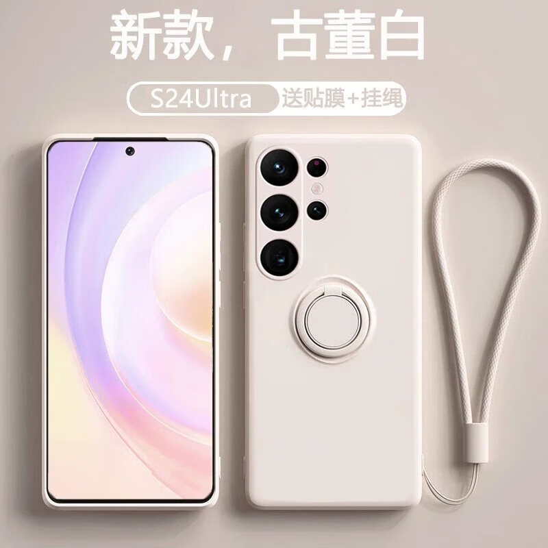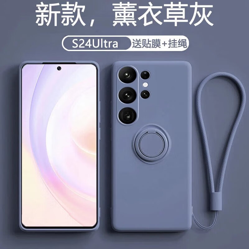 Suitable for Samsung s24ultra mobile phone case s24 new ring liquid anti-fall Galaxys23fe creative male magnetic holder s23 Chinese red solid color + hand strap Samsung Galaxy S24 Ultra