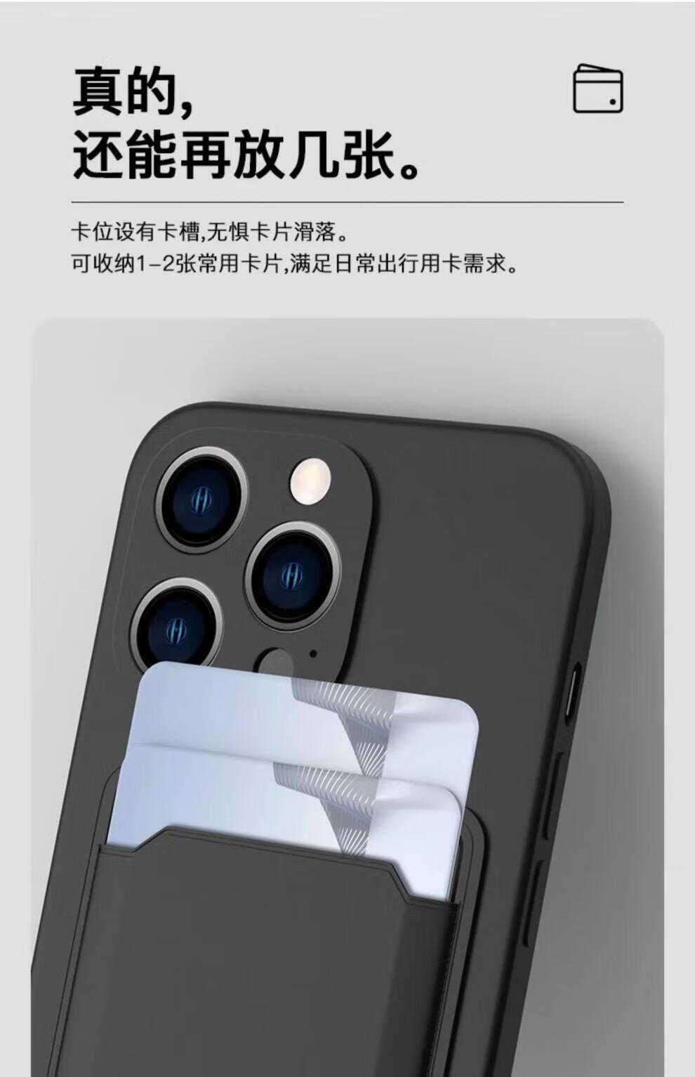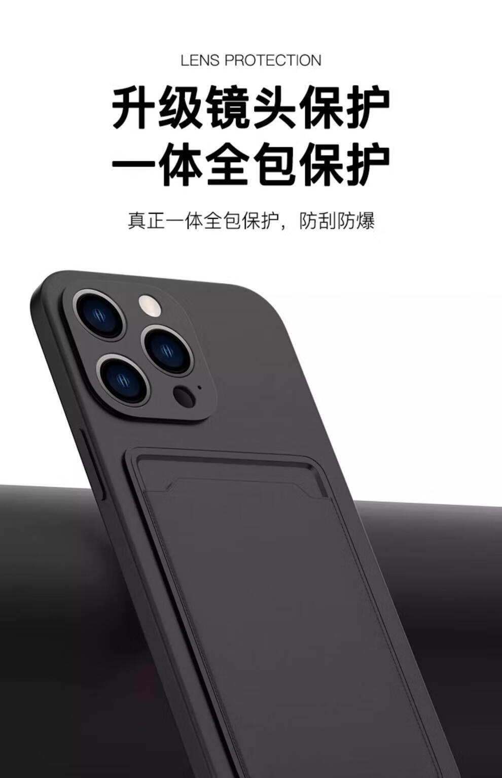 Suitable for Apple 15 card holder mobile phone case iphone14Promax card holder integrated Apple 15pro protection 13 soft 12plus silicone midnight color experience upgrade-card holder integrated-lens all-inclusive iPhone 13
