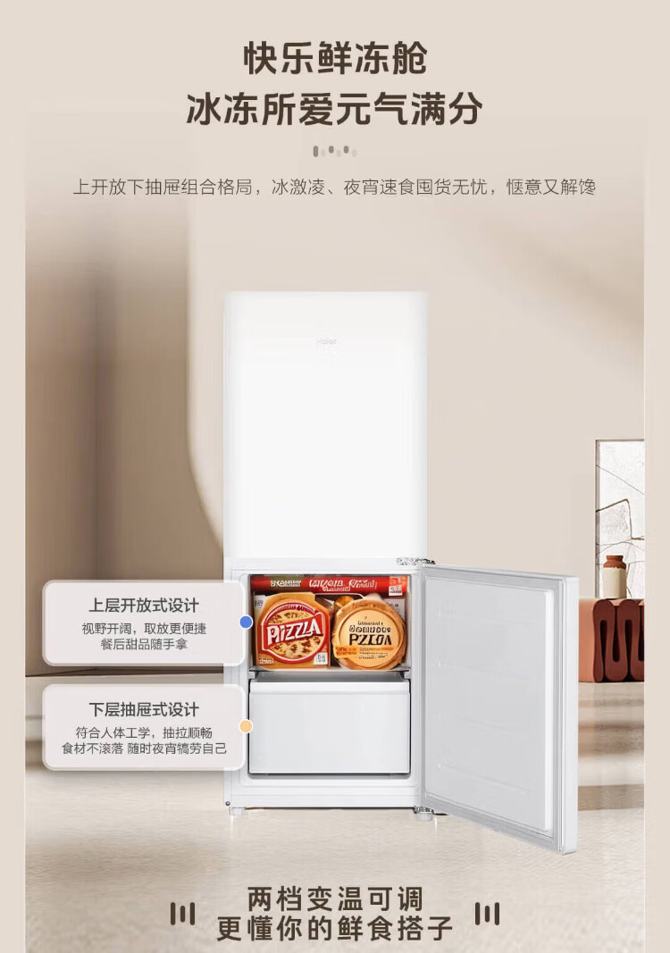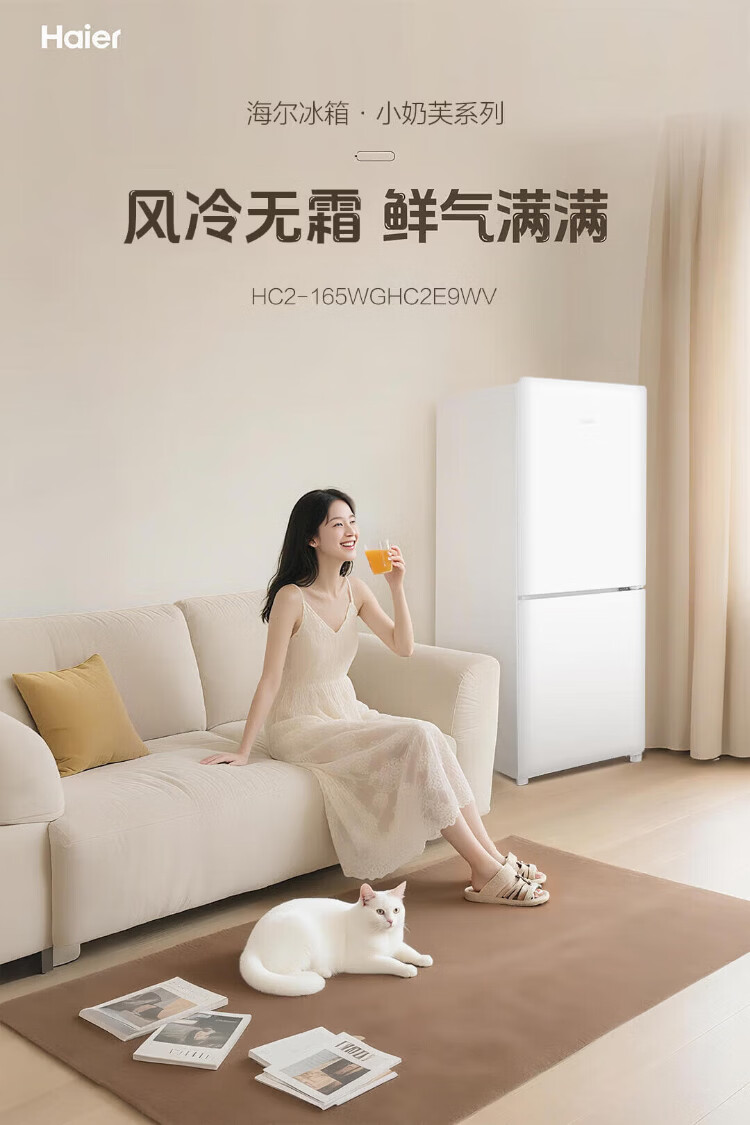 Haier household double-door small two-door refrigerator air-cooled and frost-free two-door ultra-thin fresh-keeping rental room 165-level energy efficiency energy-saving electricity-saving national trade-in subsidy 15% 190 liters refrigerator air-cooled frost-free + DEO purification + height 1.53 meters