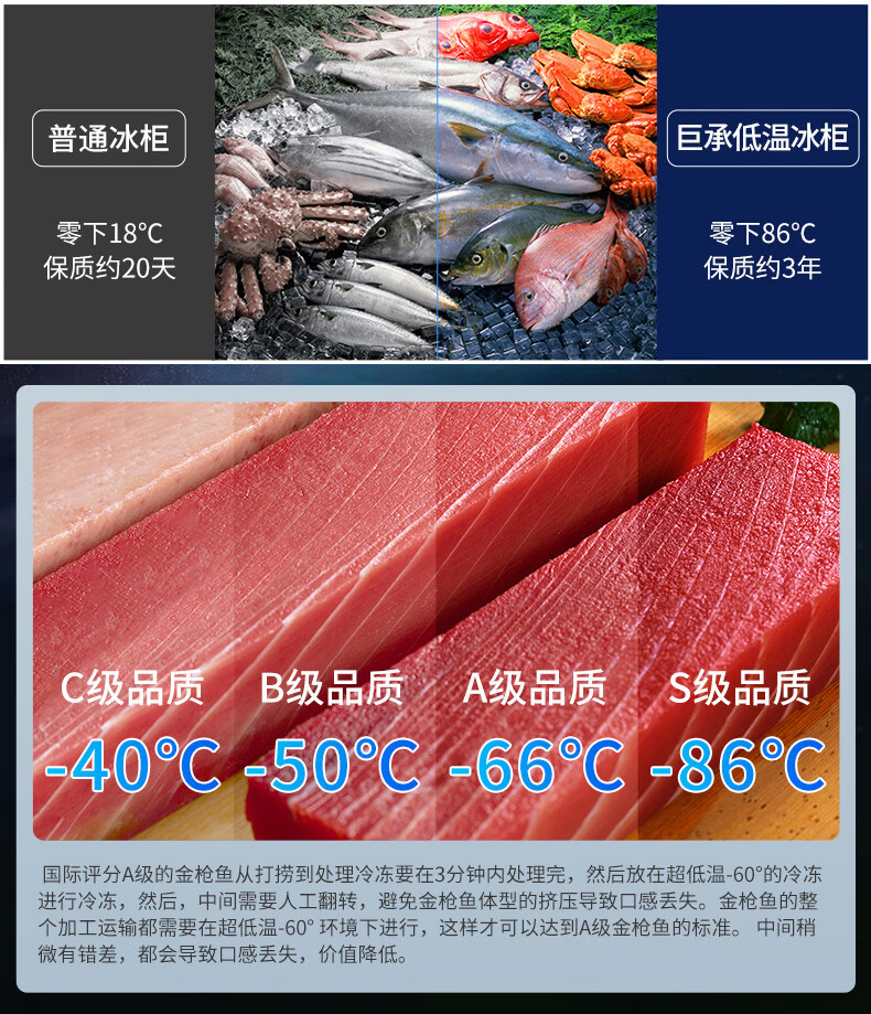 Jucheng ultra-low temperature freezer - 80-70-60 degrees tuna preservation horizontal household freezer commercial seafood freezer large capacity laboratory refrigerator high-end food storage cabinet normal temperature model customized special shot 138L -50 C ultra-low temperature Secop compressor