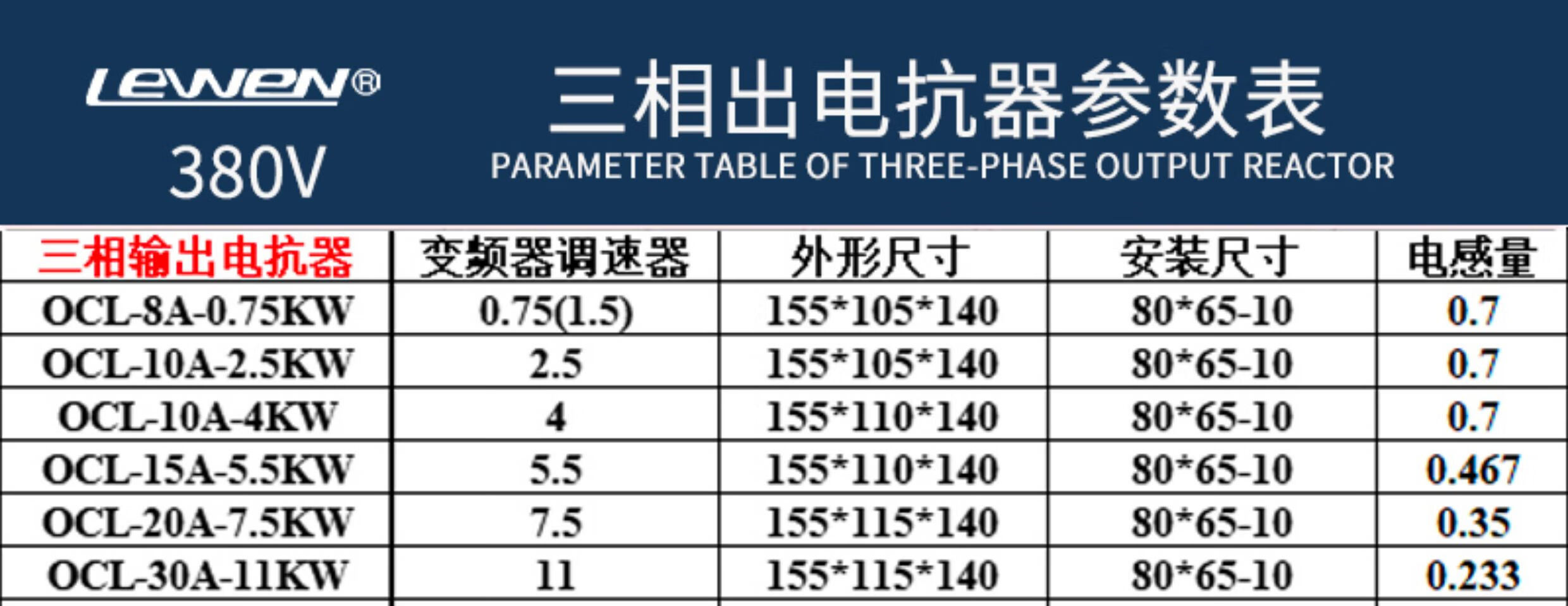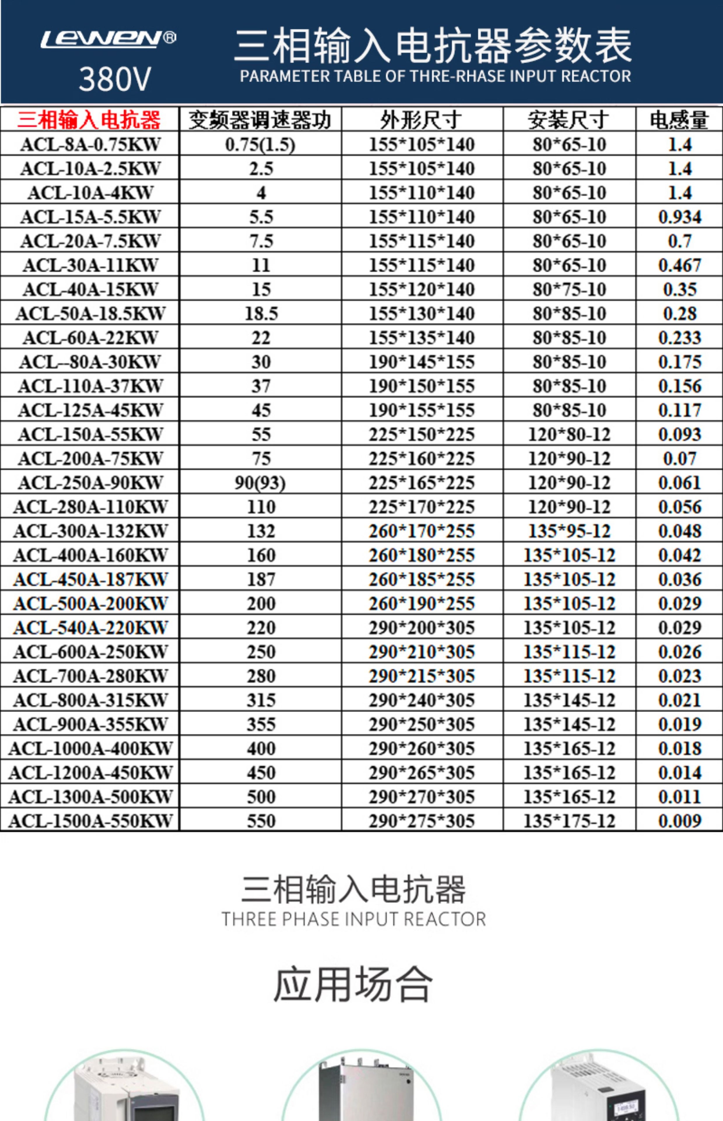 Three-phase ACL input incoming line reactor OCL output outgoing line reactor dedicated for inverter 1.5KVA-400KW ACL-50A-18.5KW