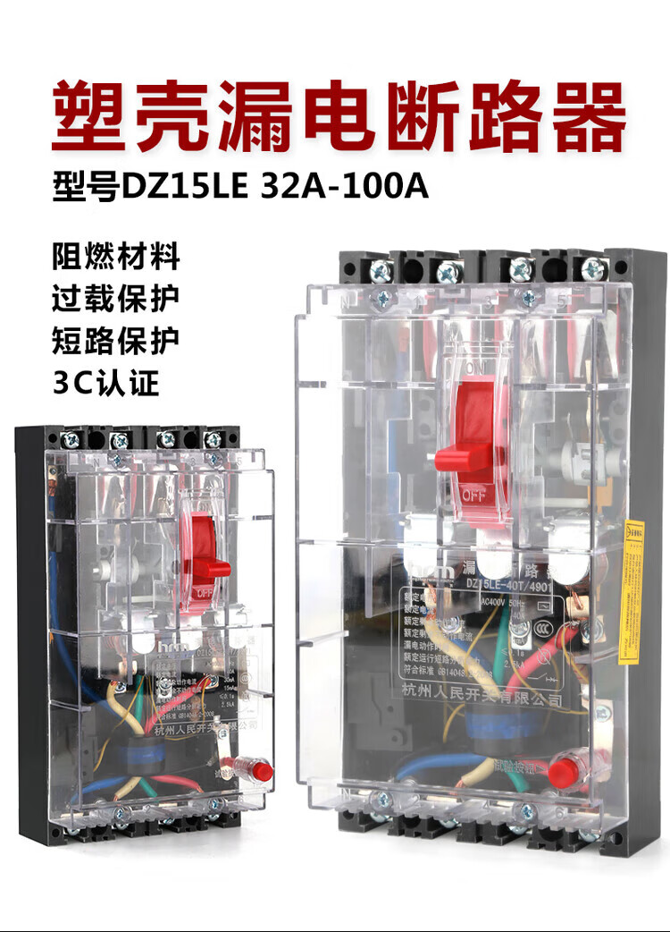 Hangzhou DZ15LE-100/490 transparent leakage protection three-phase four-wire plastic case leakage circuit breaker switch 100A 4p