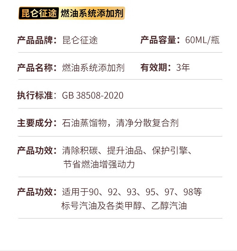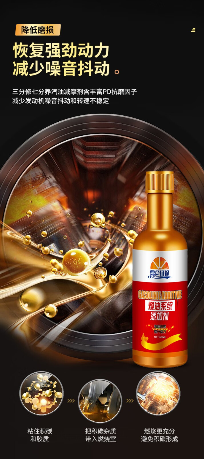 Kunlun Zhengtu Fuel Treasure Auto Fuel Additive Fuel Saving Treasure Gasoline Engine Oil Line Cleaning Agent Removes Carbon Deposits and Improves Power Concentrated Gold Bottle Upgrade 2 Bottles 60ml National Standard