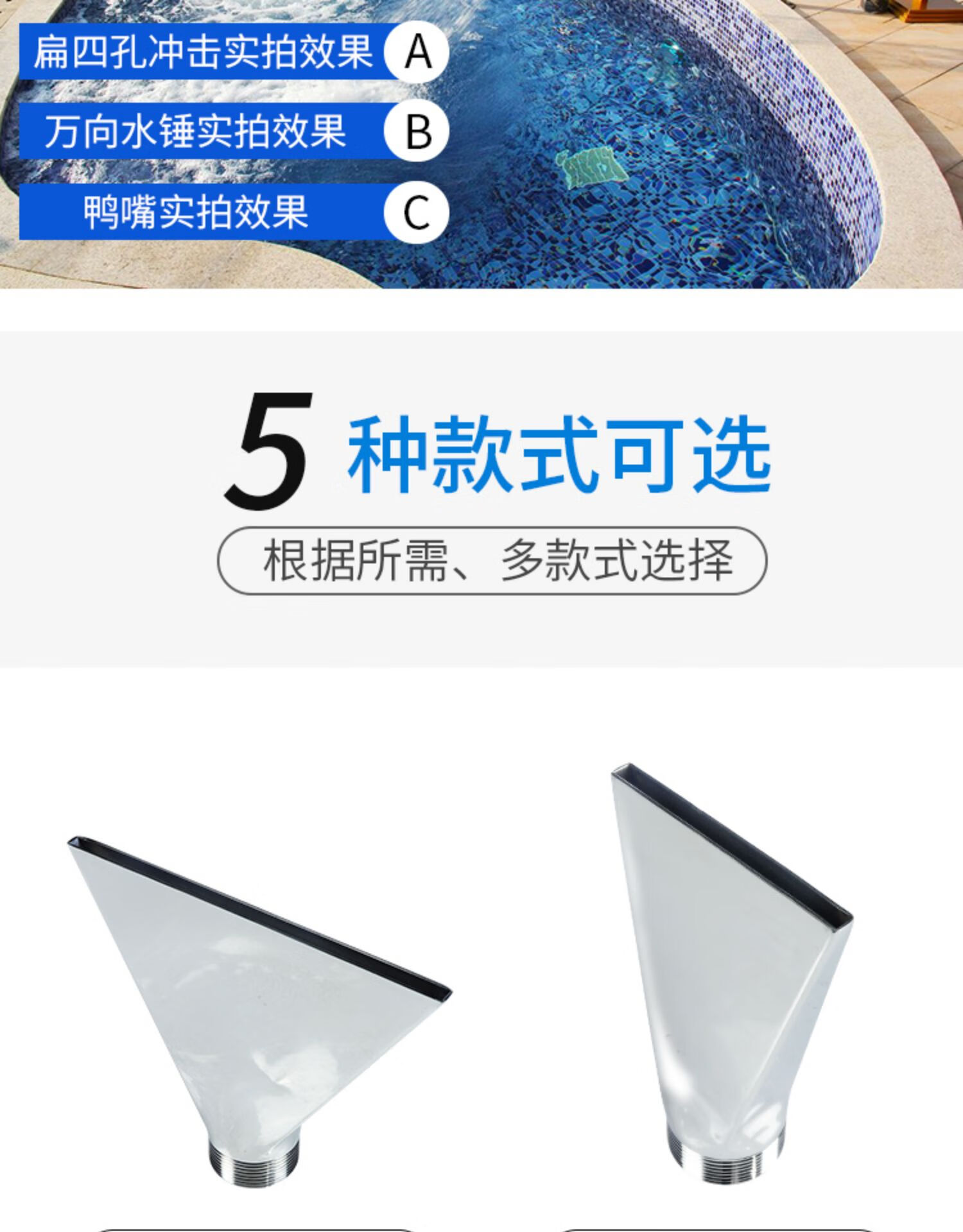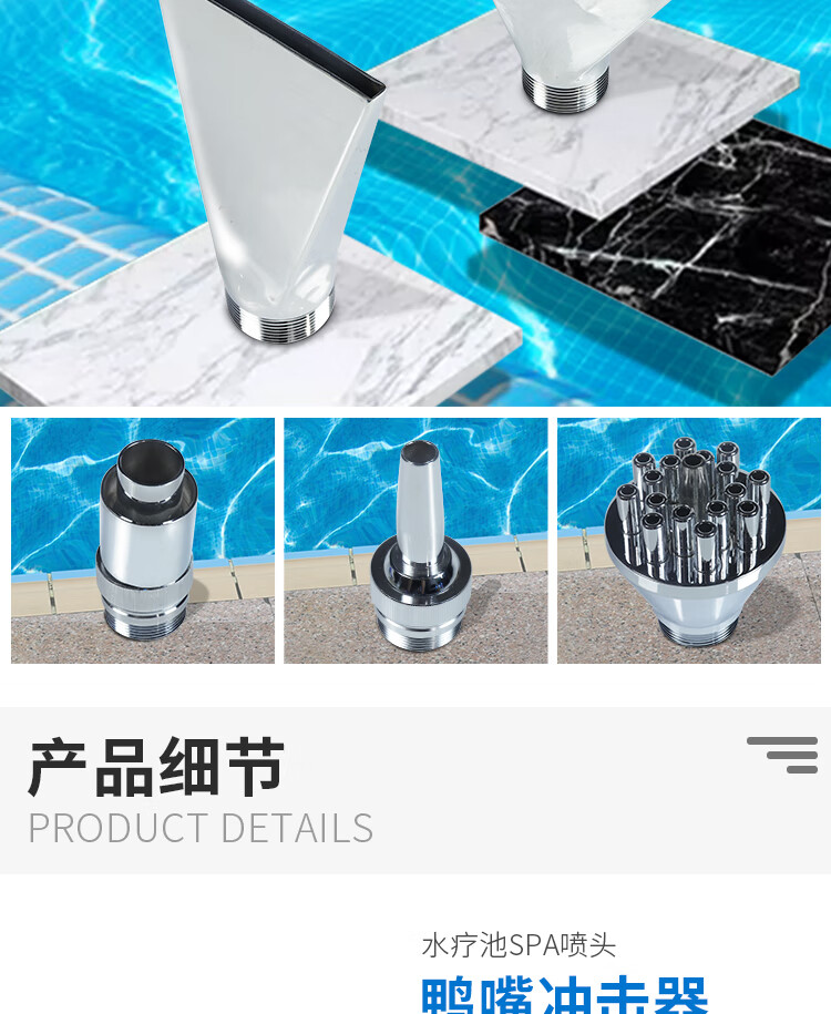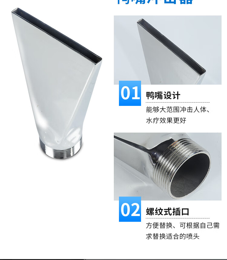 SPA hydrotherapy impactor waterfall duckbill impactor stainless steel swimming pool hot spring bath shower head small duckbill nozzle spa combination set