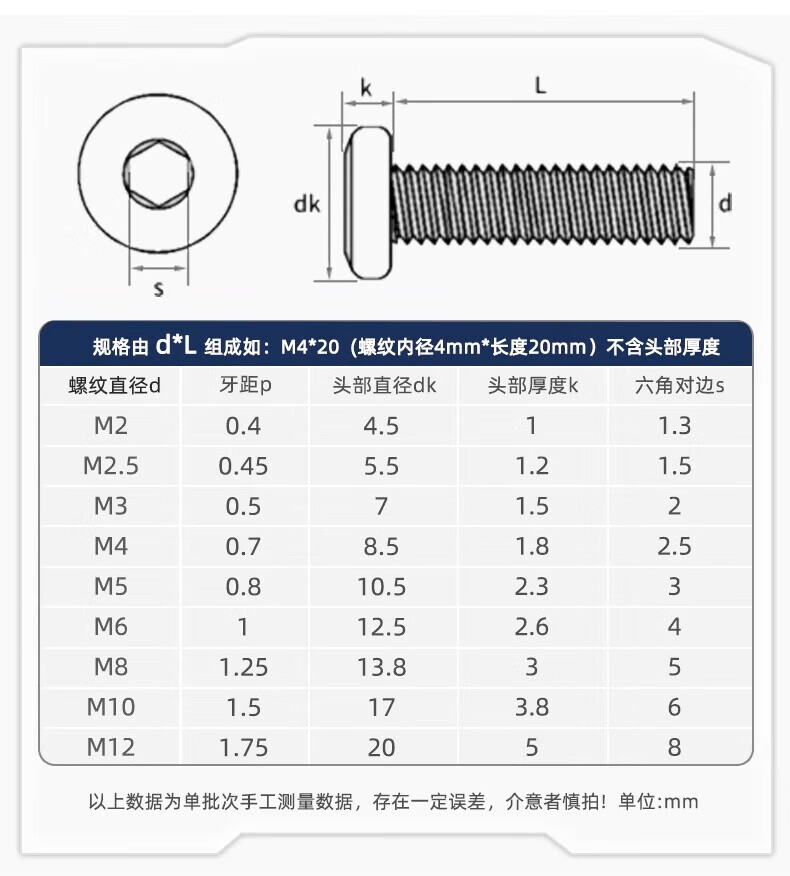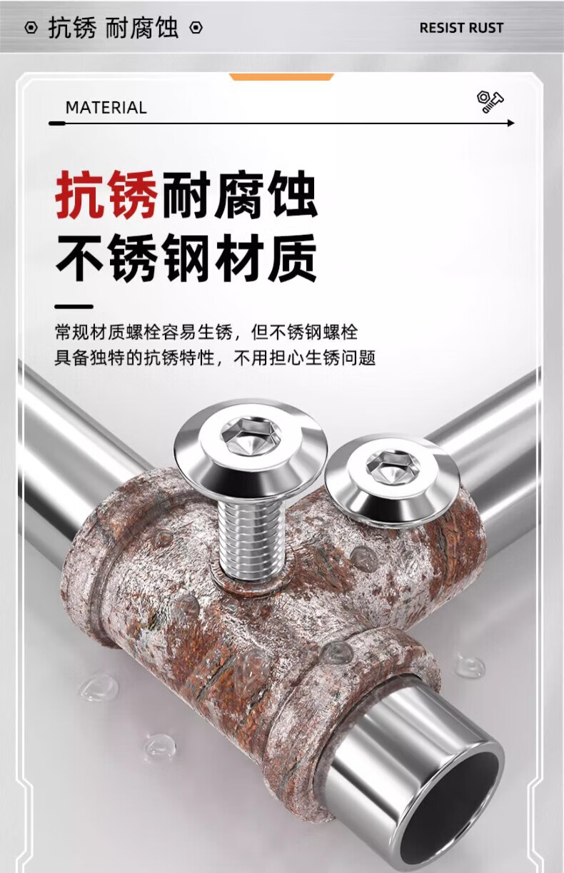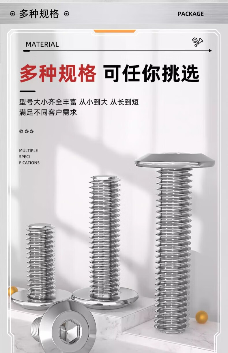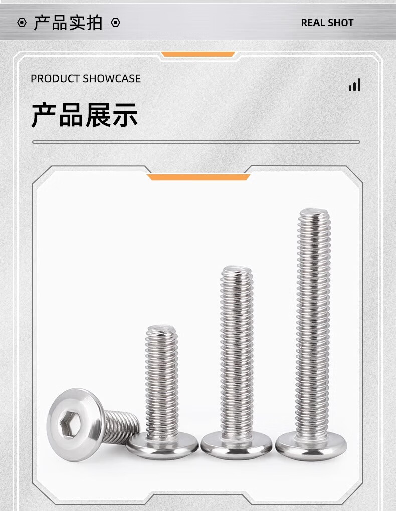 Tianzhuo Hardware 304 stainless steel furniture large flat head hexagonal head bevel screws round head bevel screws bevel bolts M2-M12 M5*65-10 pieces