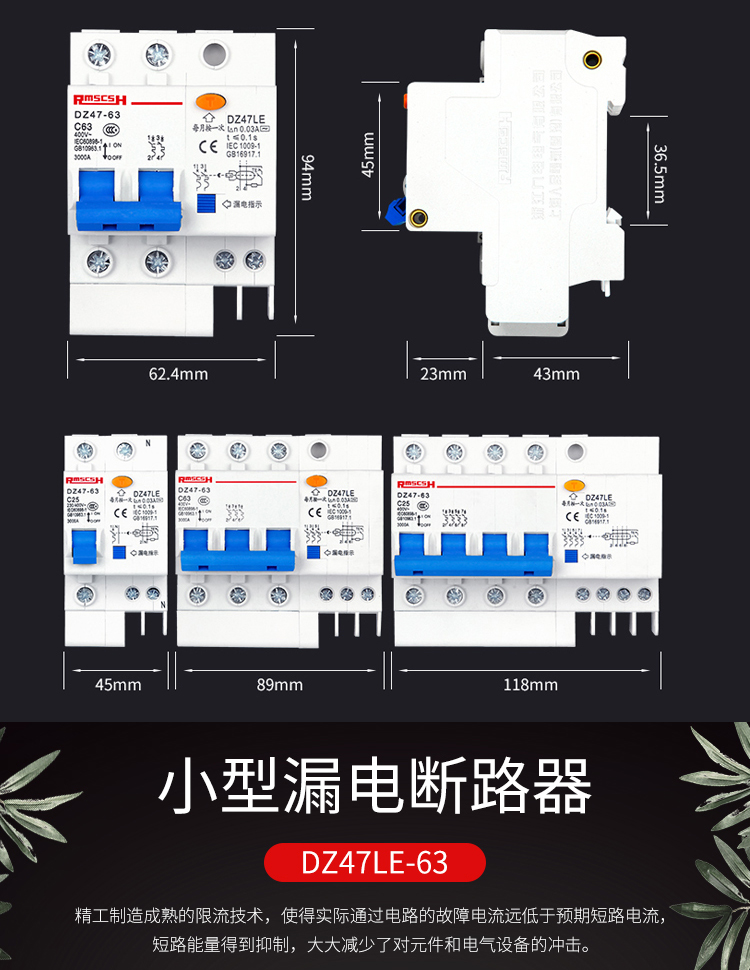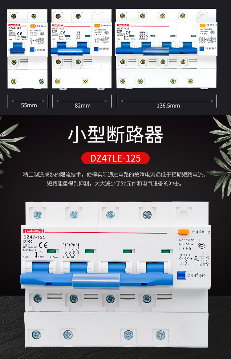 Shanghai People's three-phase leakage switch protection circuit breaker 100a three-phase four-wire air switch and leakage protection integrated DZ47LE 4p 125A