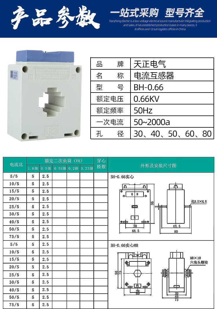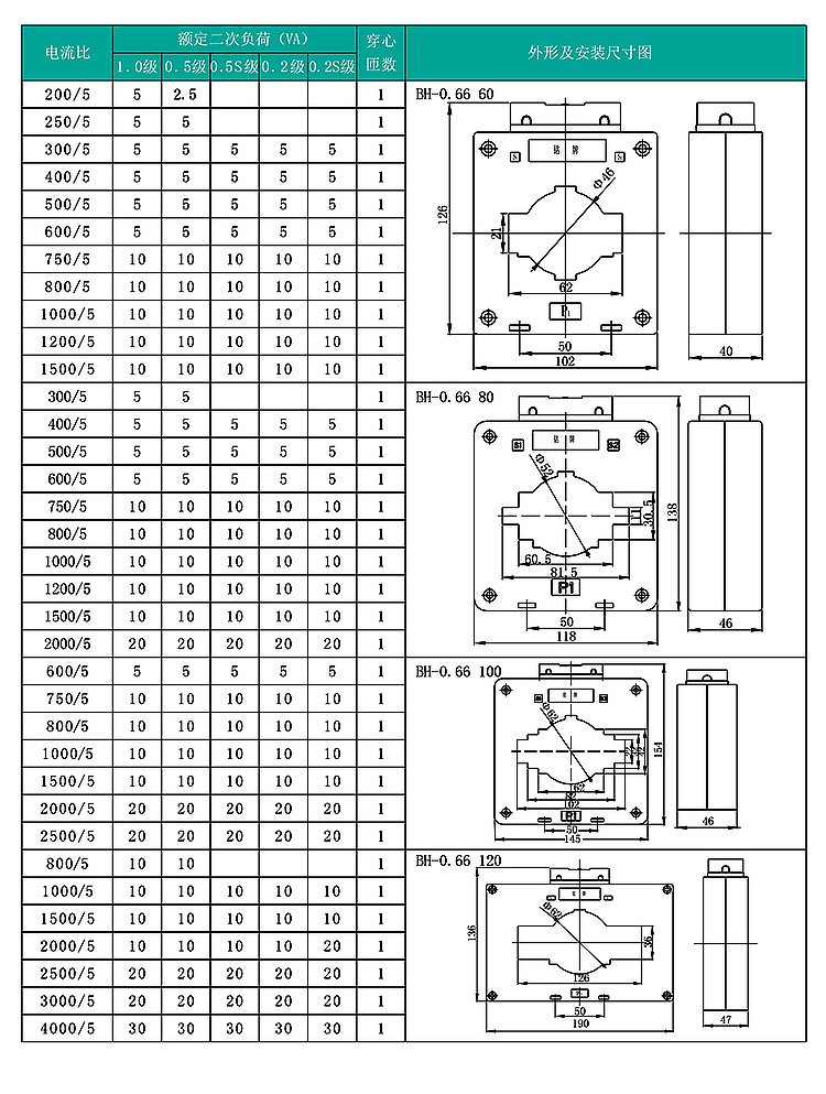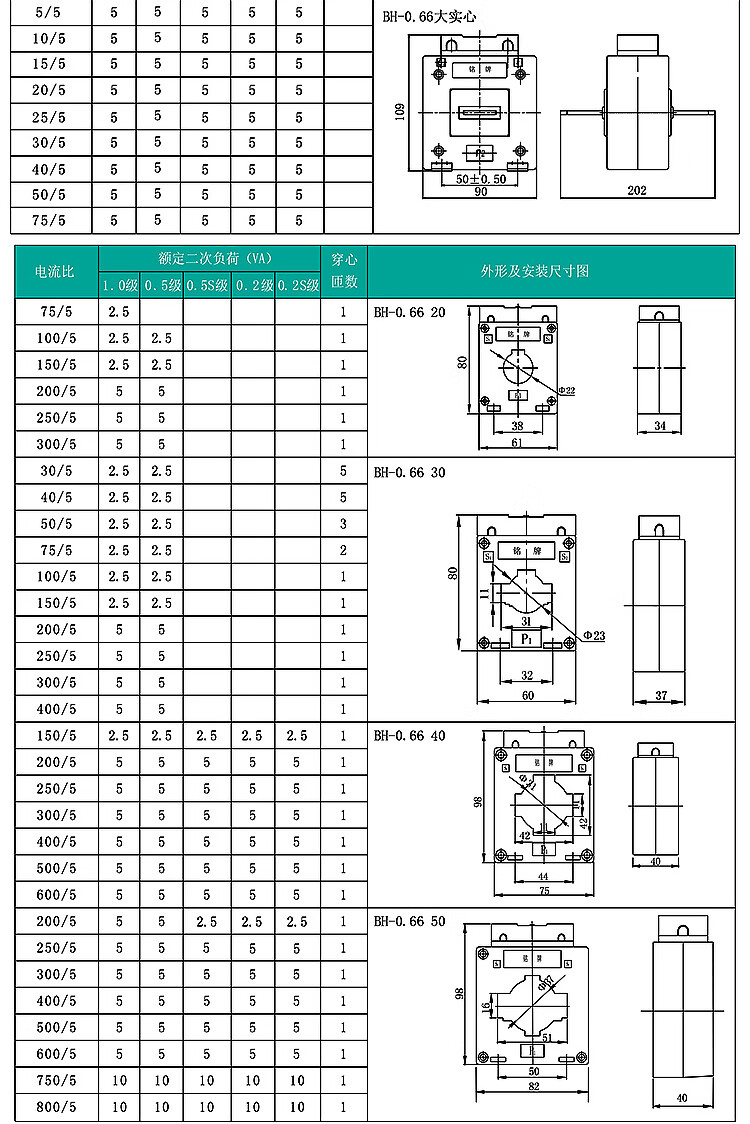Electrical transformer BH-0.66 0.2s level AC current ratio 10/5 25/5 30 four-wire electricity meter BH-0.66 40 300/5 0.2S level