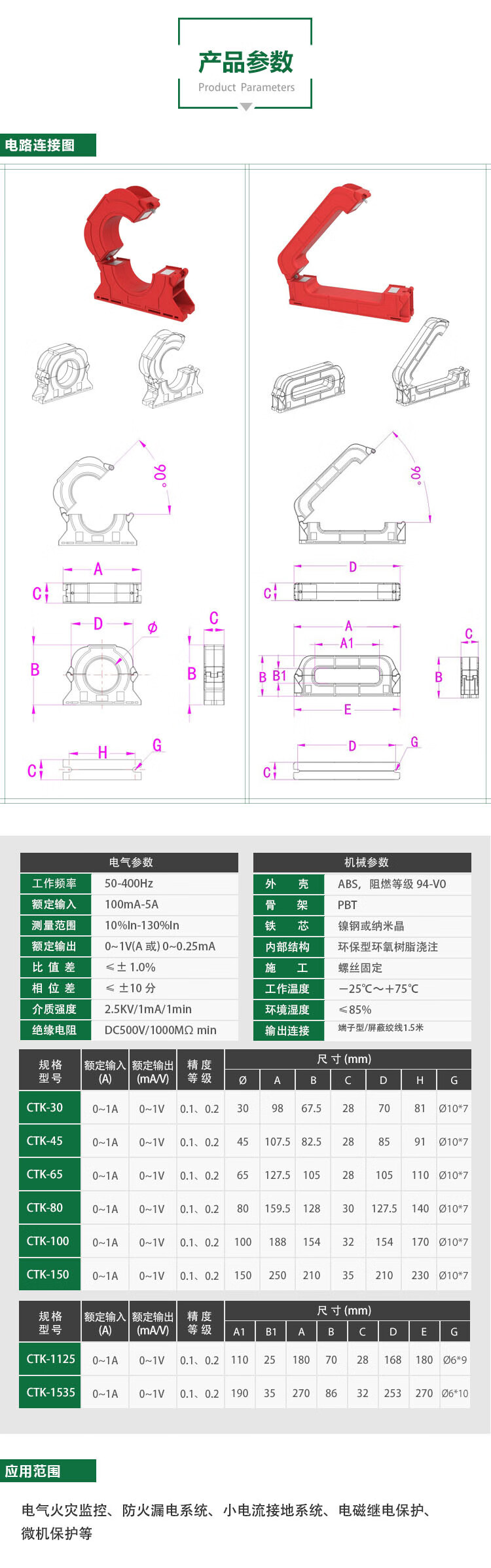 Open type residual current transformer smart power use fire protection electrical fire monitoring 2000/1 zero sequence 0-400A 80