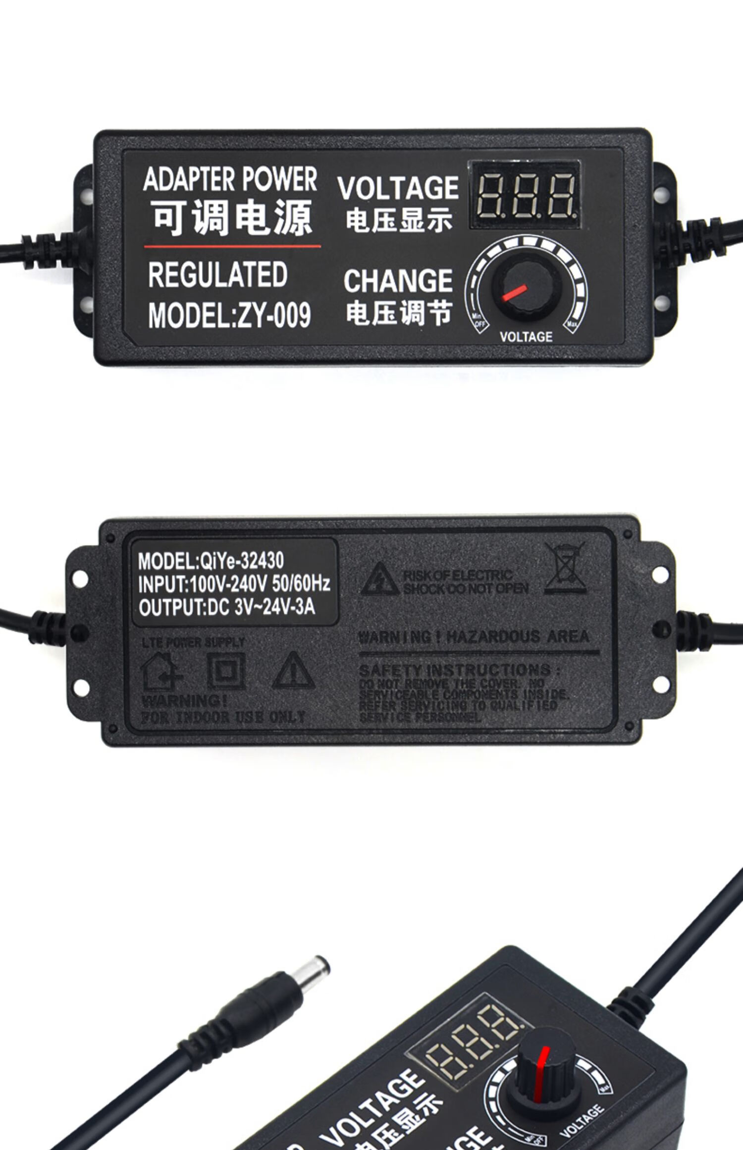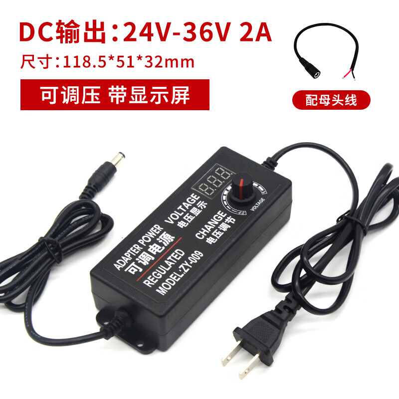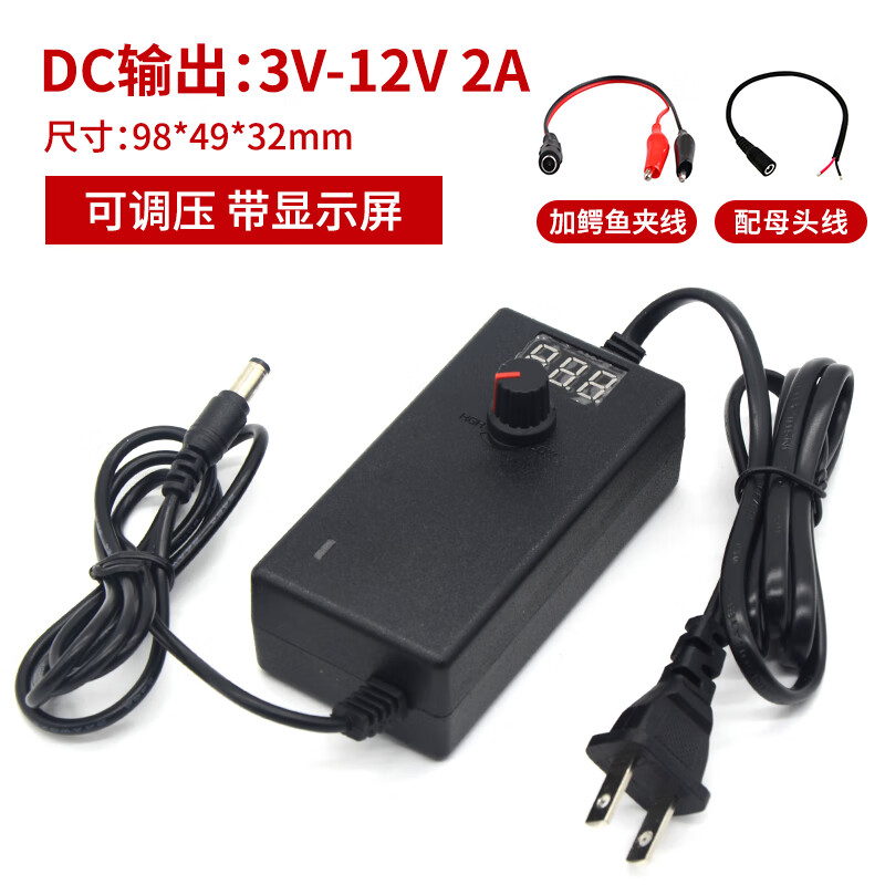 DC transformer adjustable 220V to 3v-12v24V36 adapter voltage regulating speed power supply with digital display 3-24V_2A with digital display + alligator clip cable_