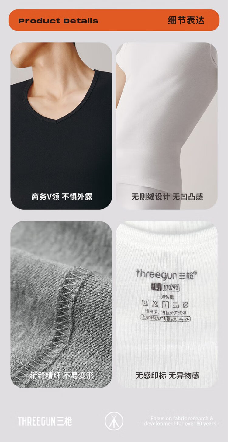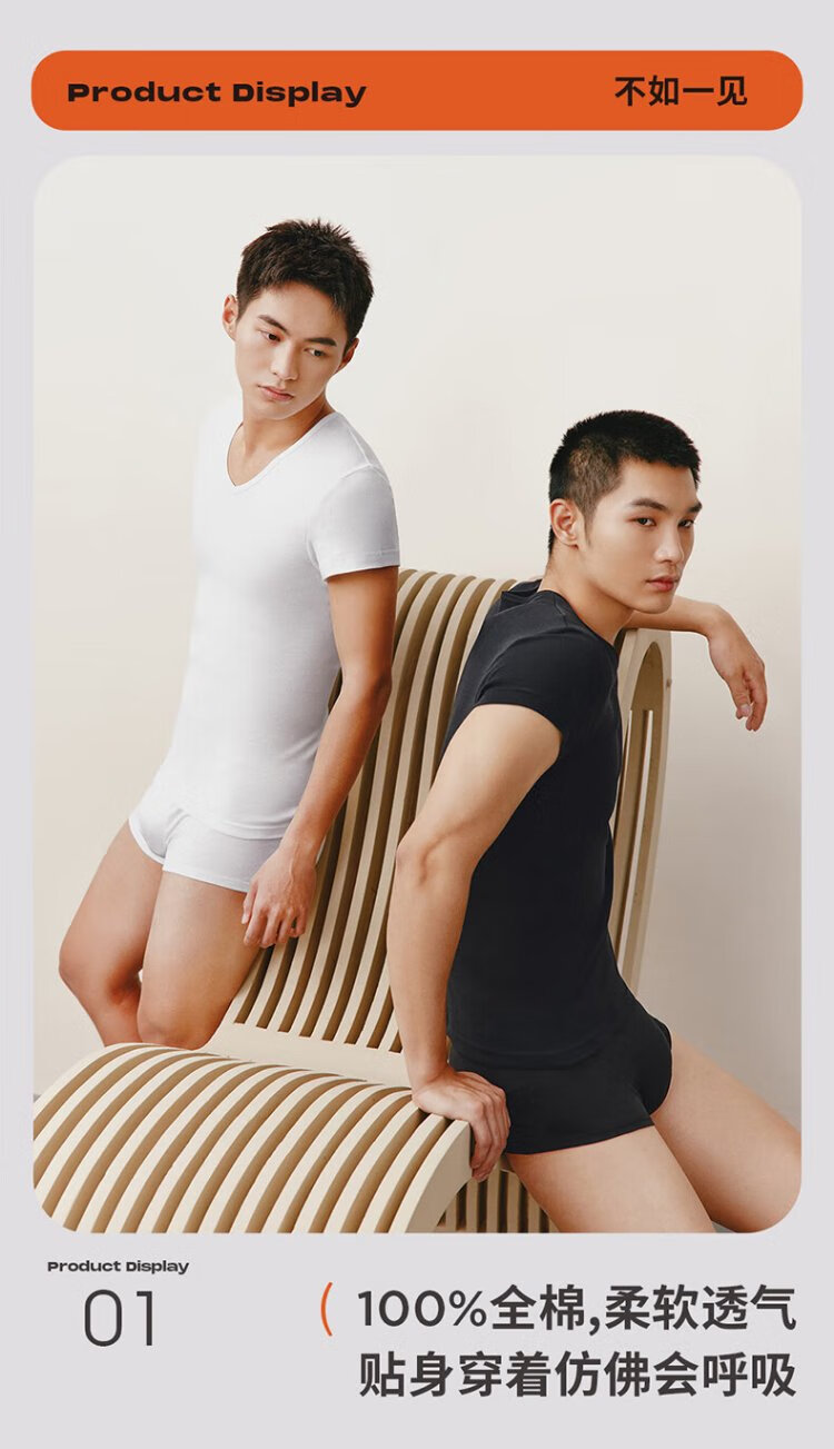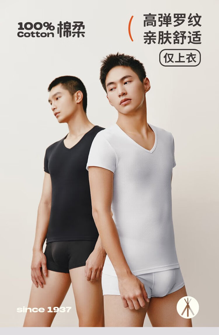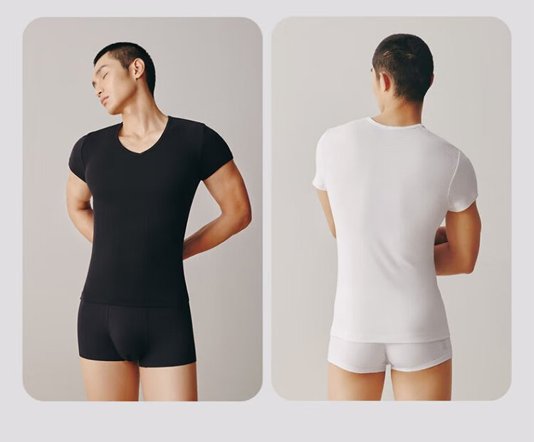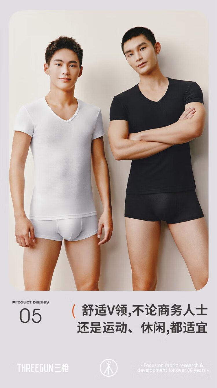 THREEGUN 2 pieces pure cotton short-sleeved men's T-shirt Xinjiang cotton rib business V-neck inner layer high elastic breathable bottoming shirt white + white L
