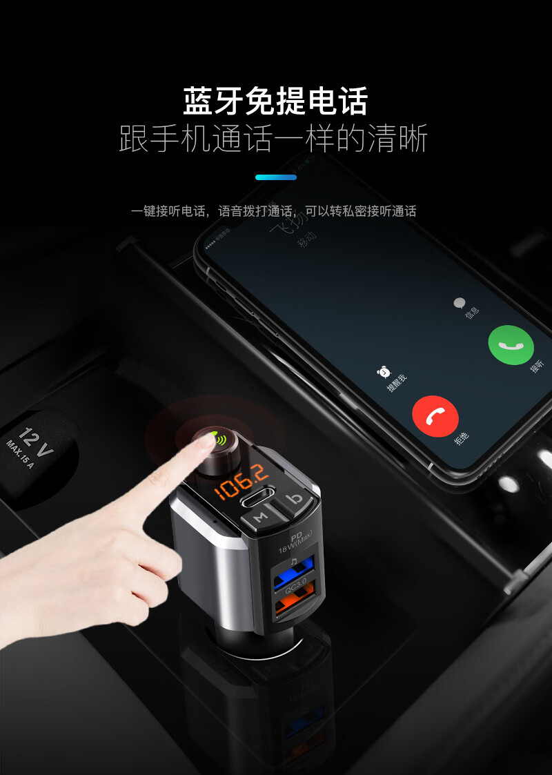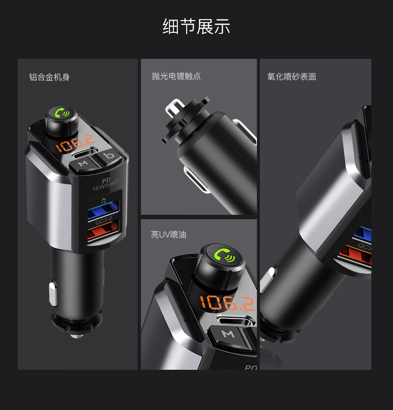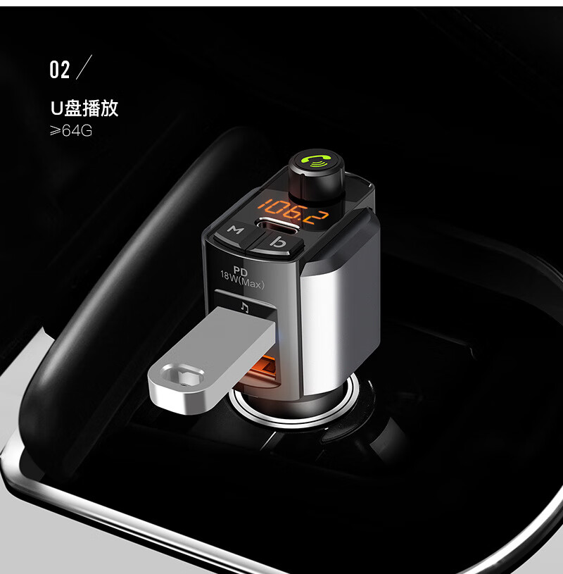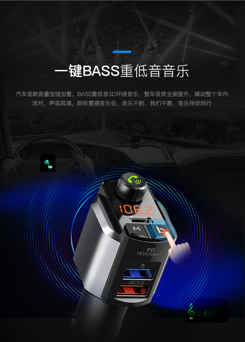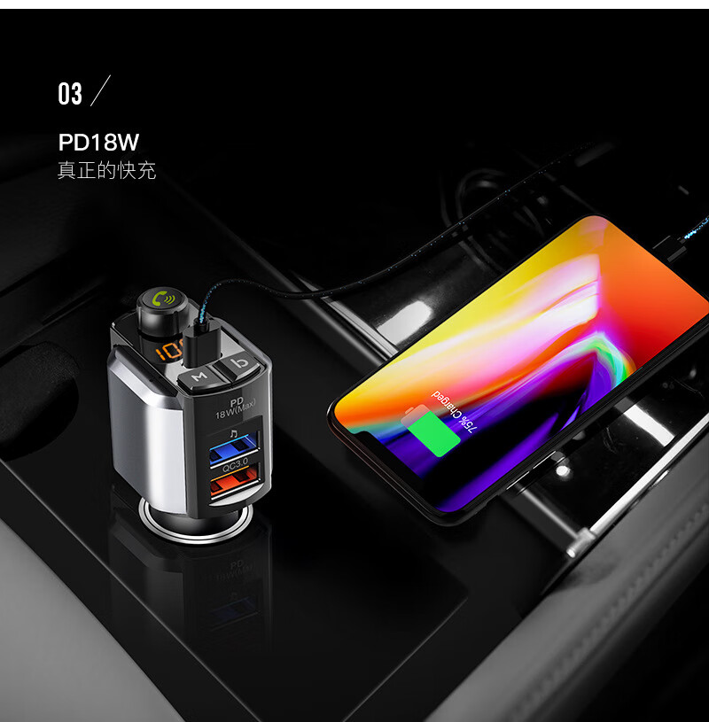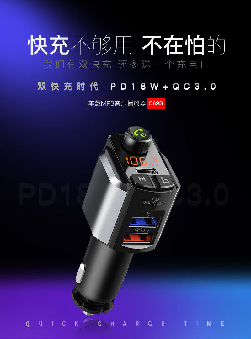 C69 Car Bluetooth MP3 Player U Disk Music Car PD Fast Charging 18W Hands-Free Call Car FM Transmitter Black C69