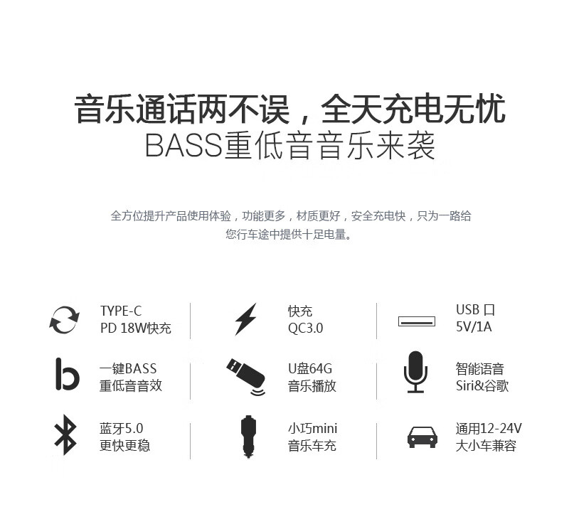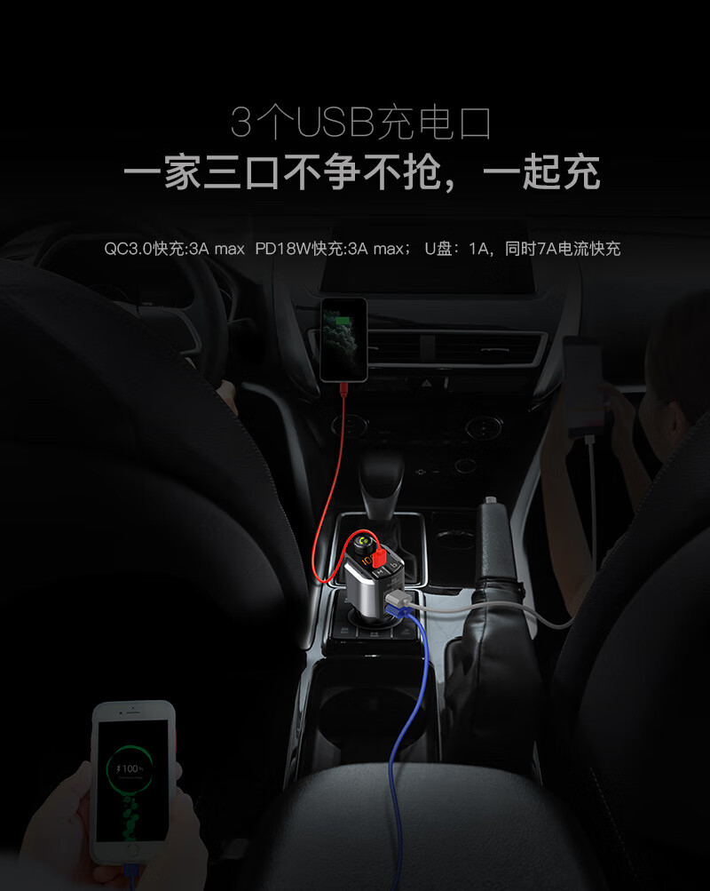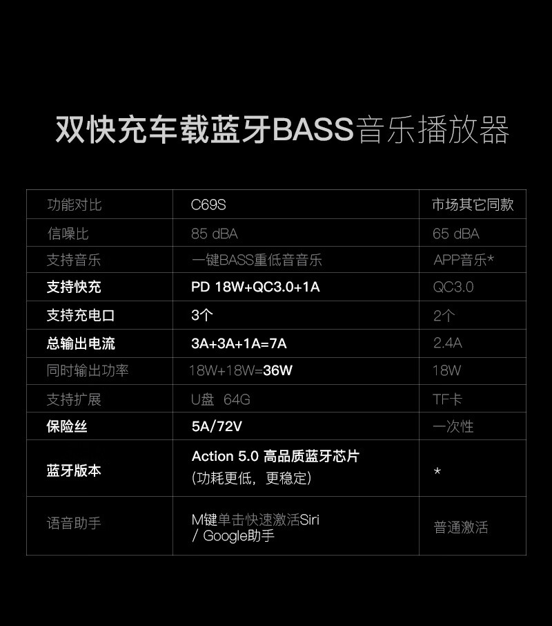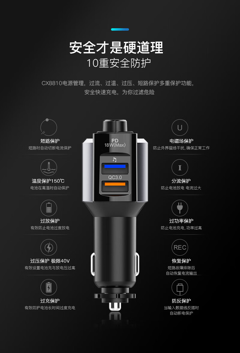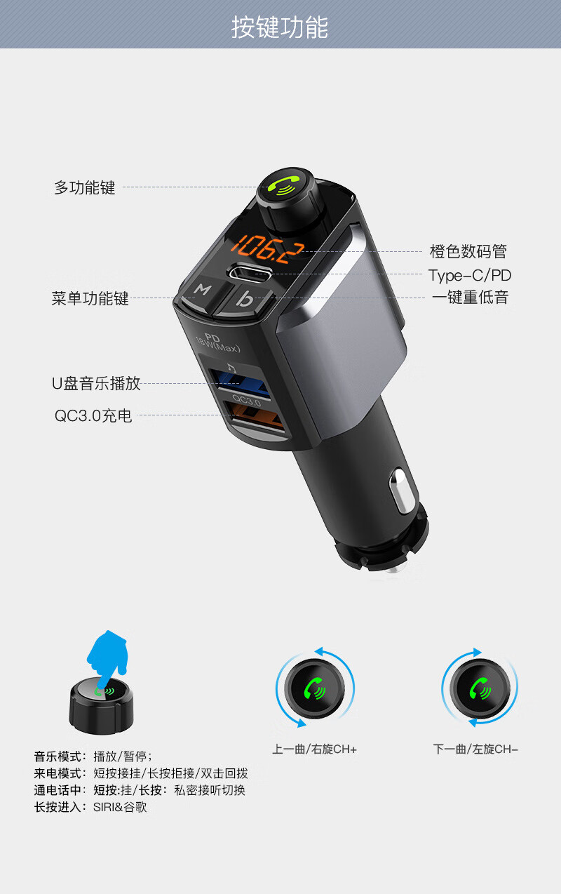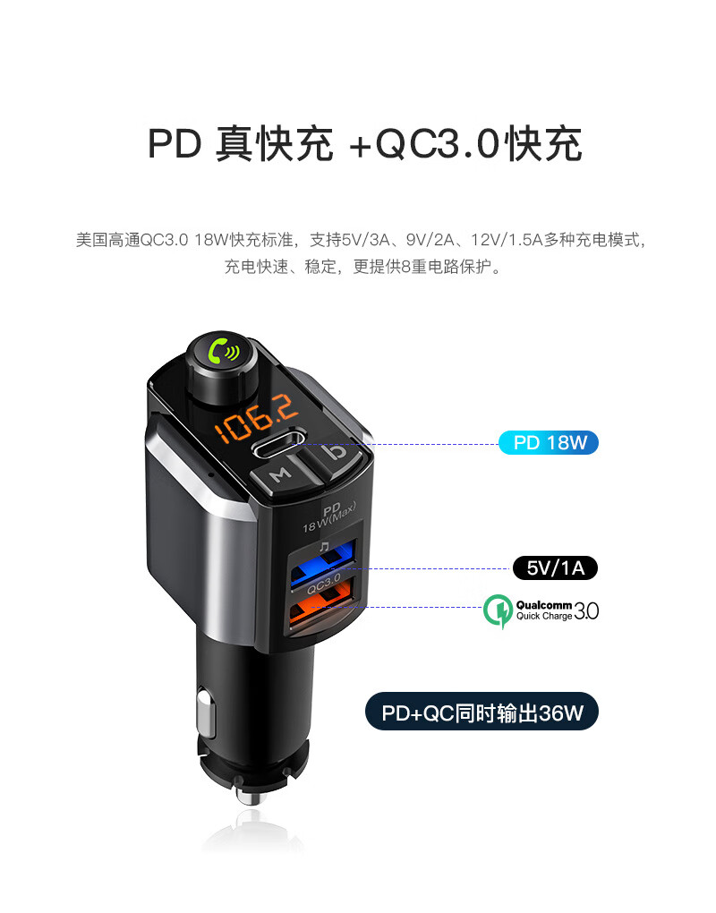 C69 Car Bluetooth MP3 Player U Disk Music Car PD Fast Charging 18W Hands-Free Call Car FM Transmitter Black C69