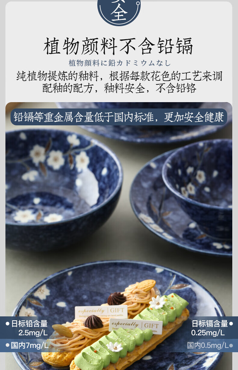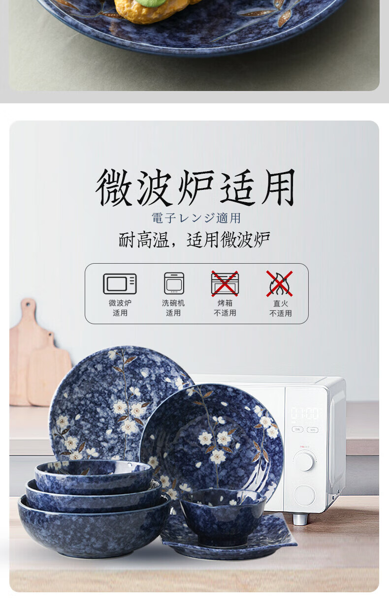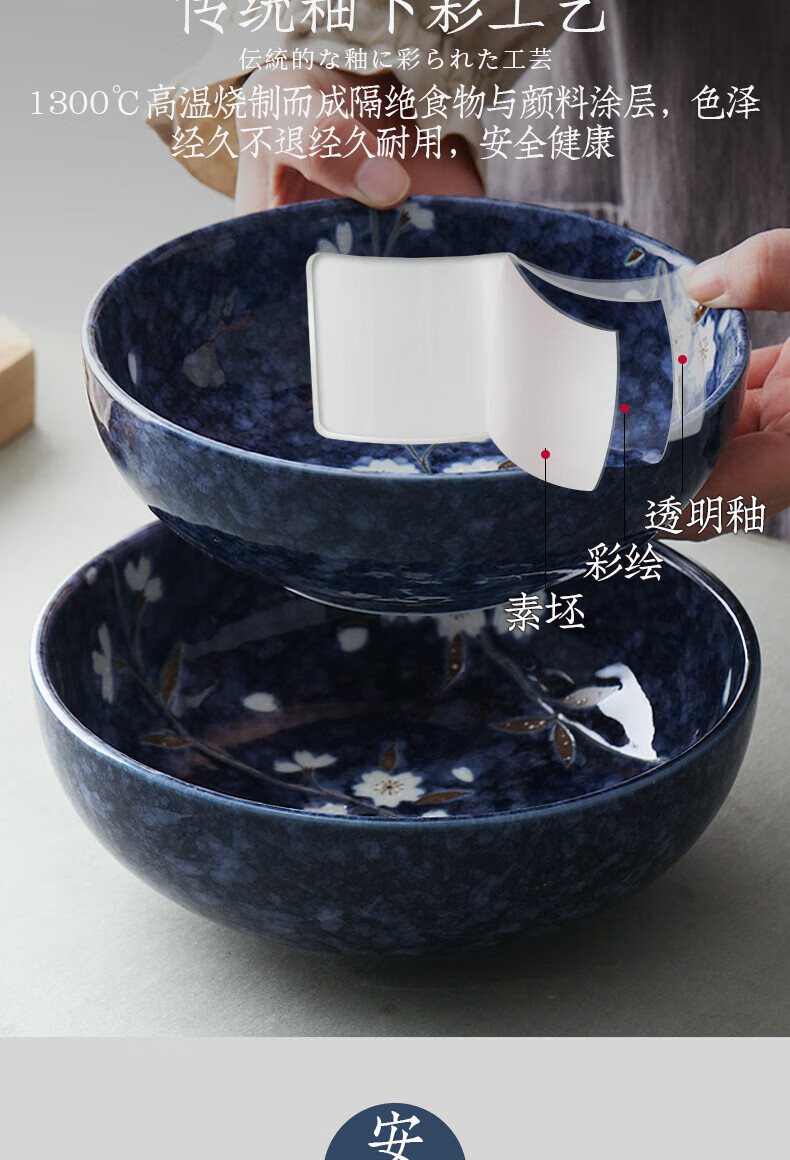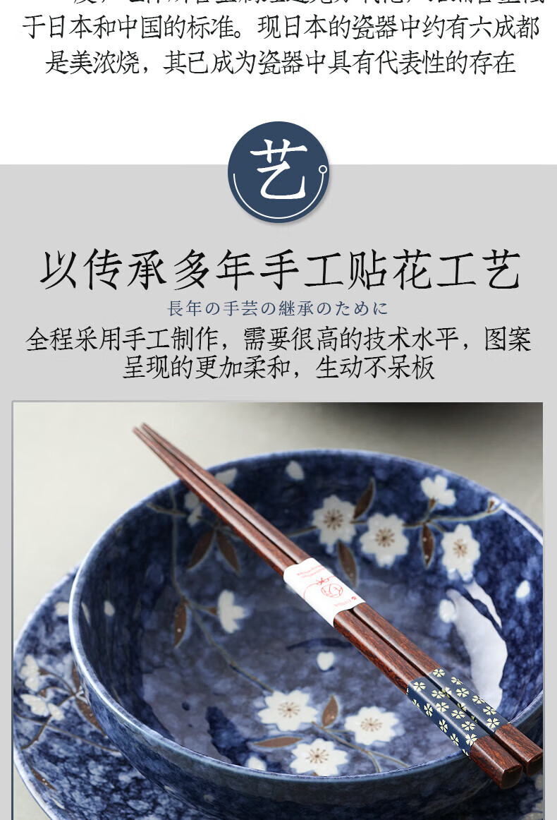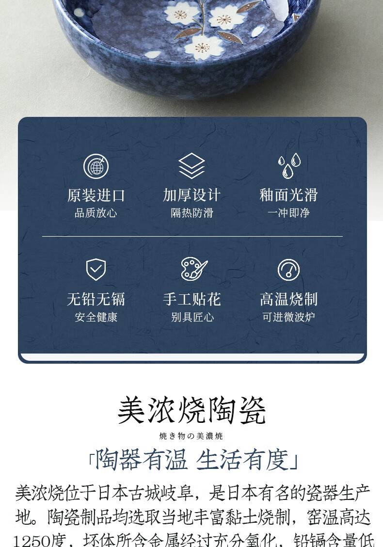 Lucky Lychee Japan imported Mino-yaki indigo painted cherry blossom ceramic bowl dipping saucer fruit plate soup noodle bowl rice bowl Japanese tableware bowl 19.5cm 1 head