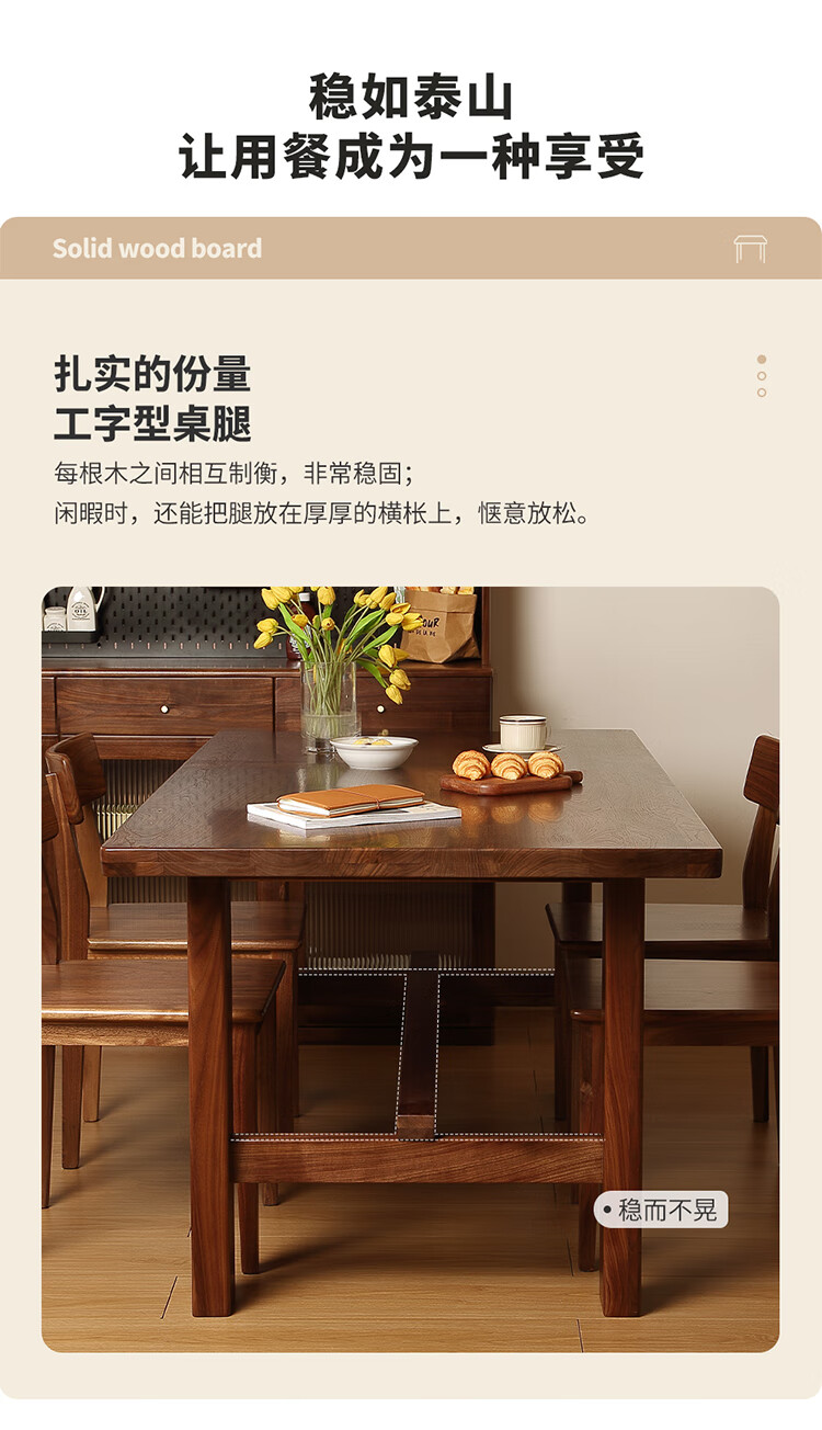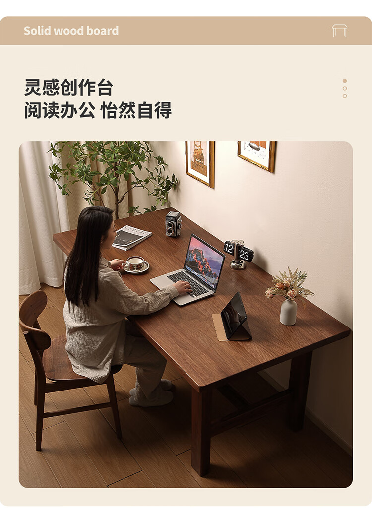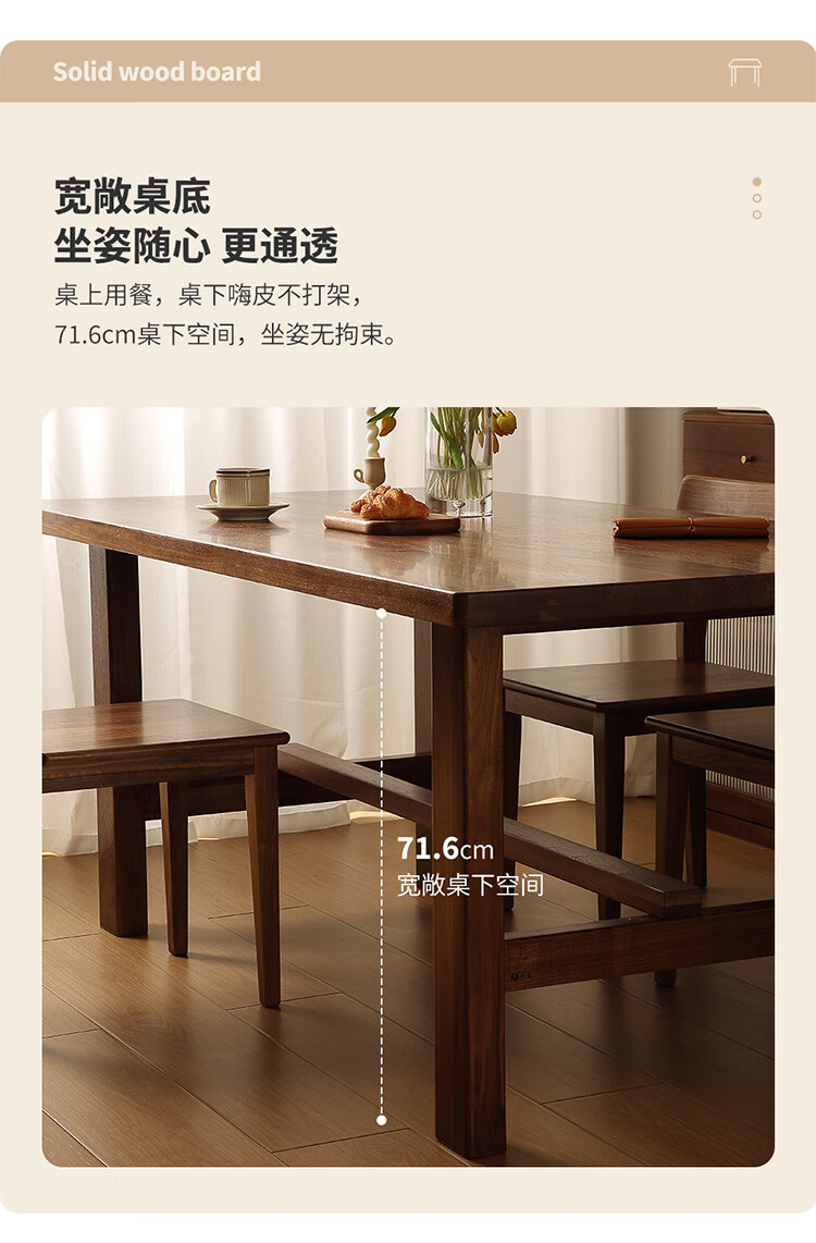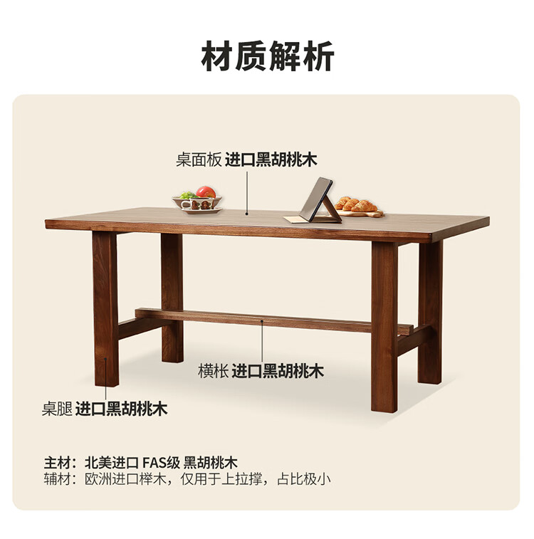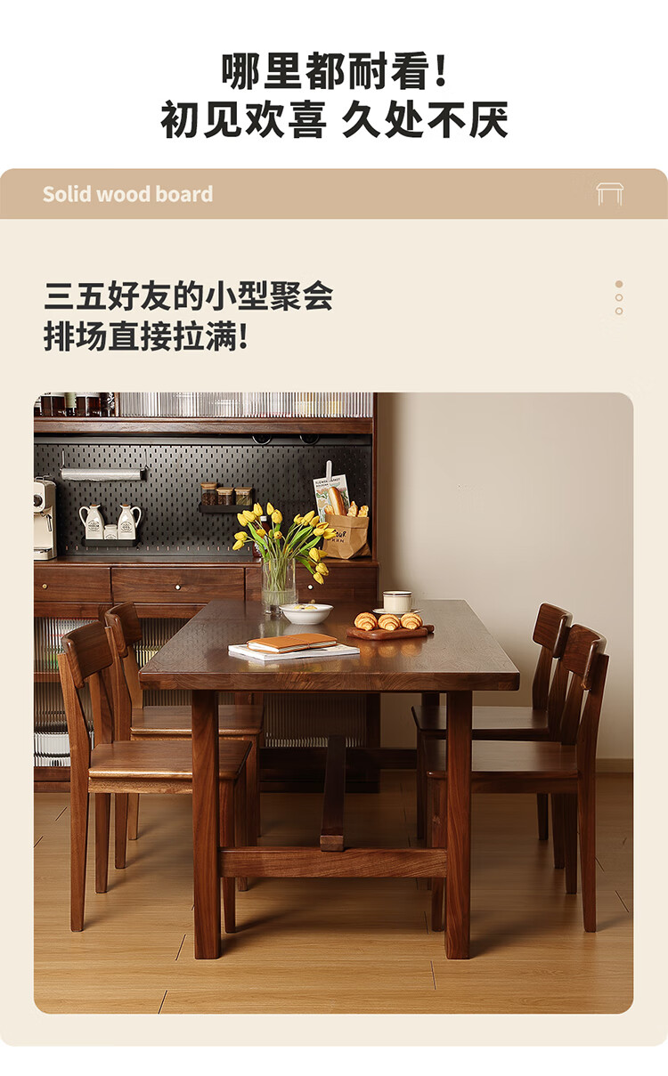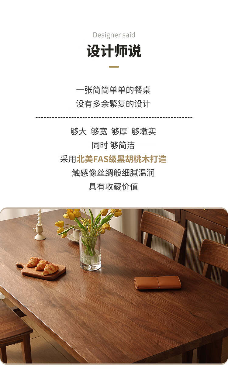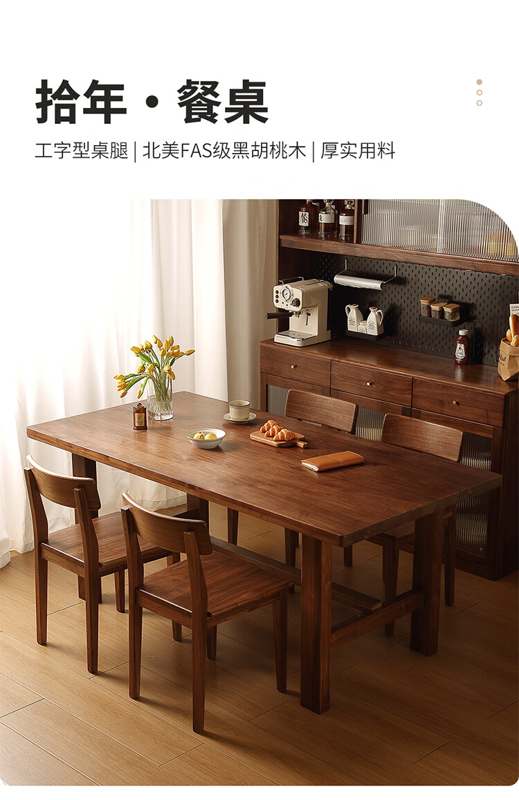 One solid wood dining table, North American black walnut dining table and chair combination, modern simple dining table, large table, tea table, 1.6 dining table, single table