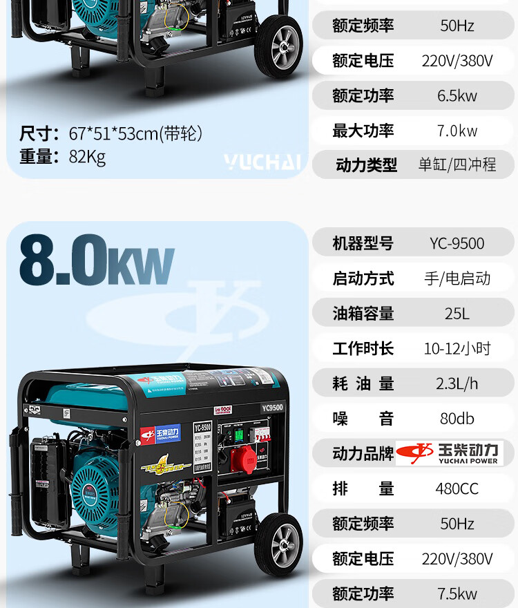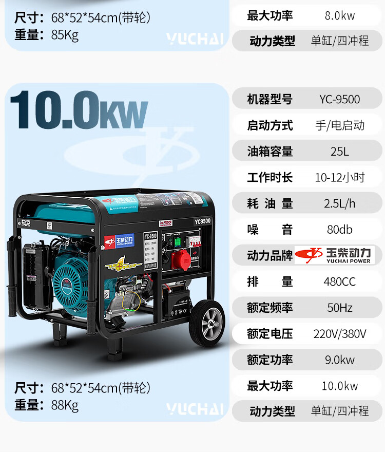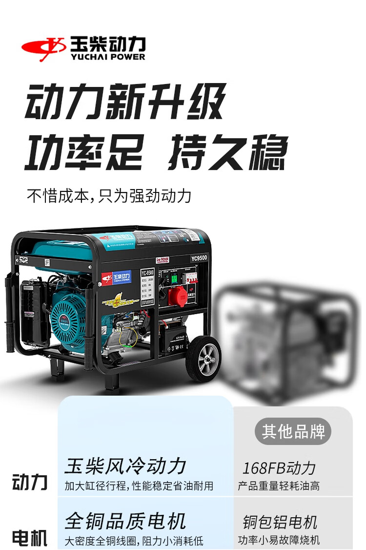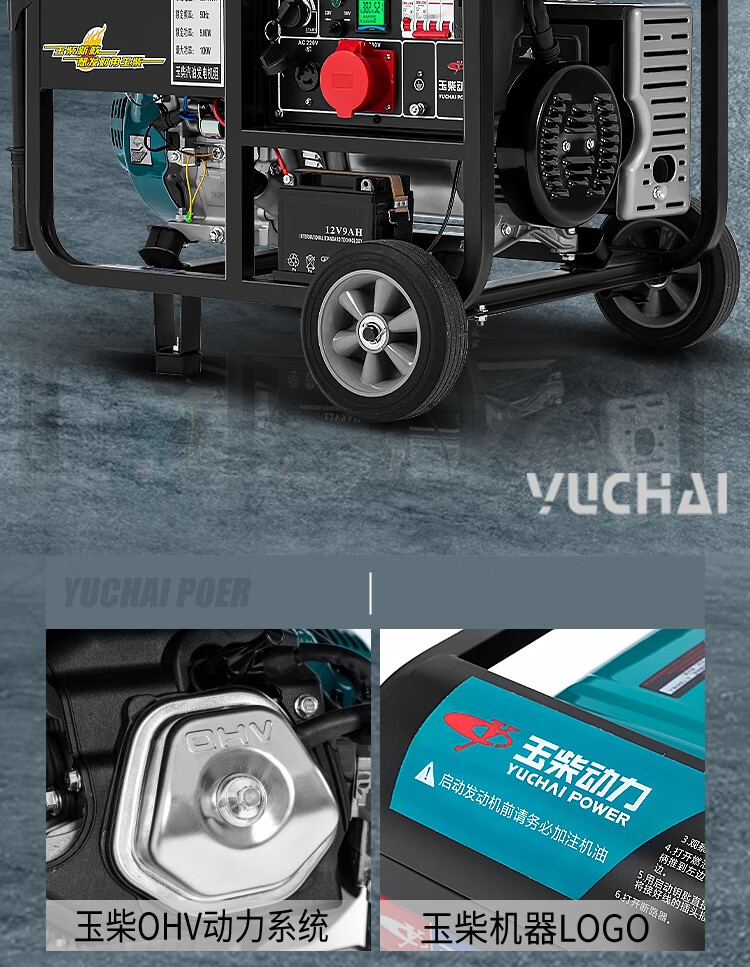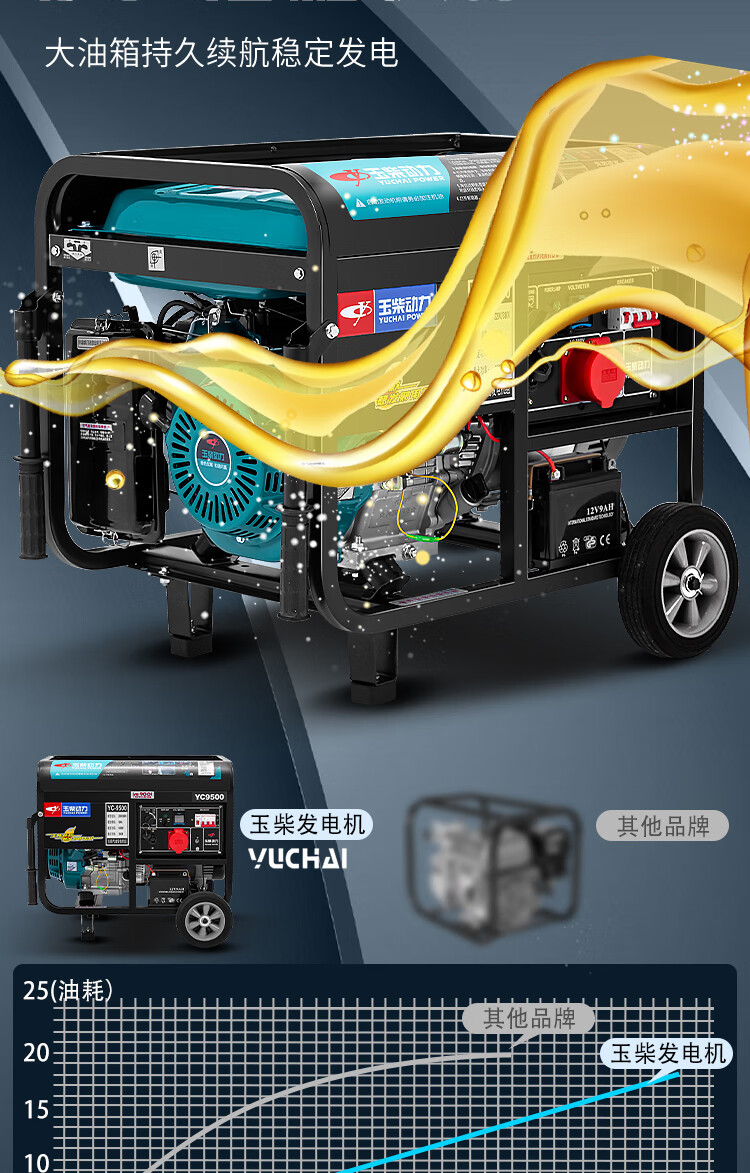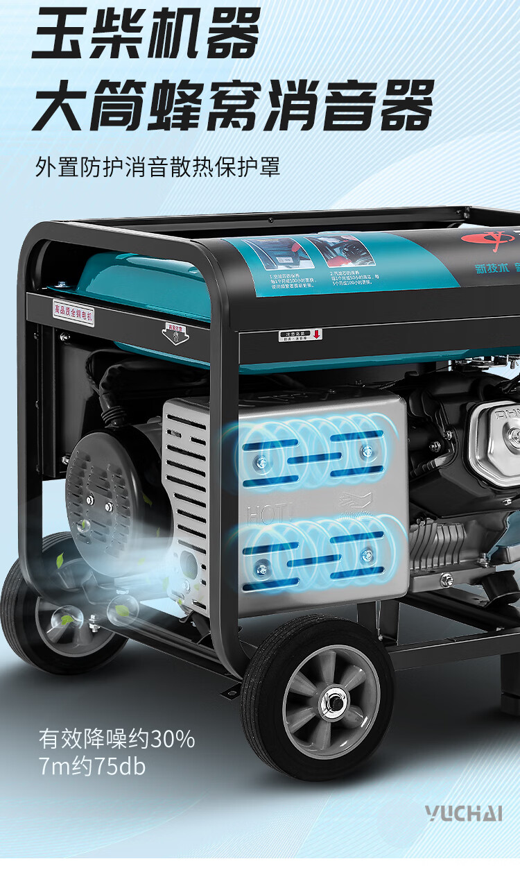 Yuchai Power (YUCHAI POWER) copper wire small household 3KW gasoline generator set 5/6/8/10 kW 220 single-phase three-phase 380V multi-fuel 3.5KW hand-start gasoline 220V