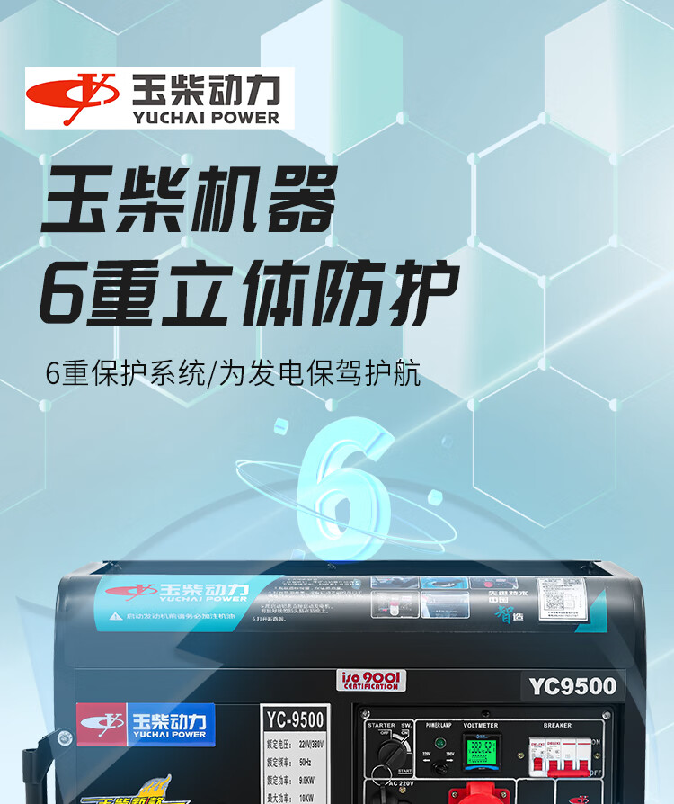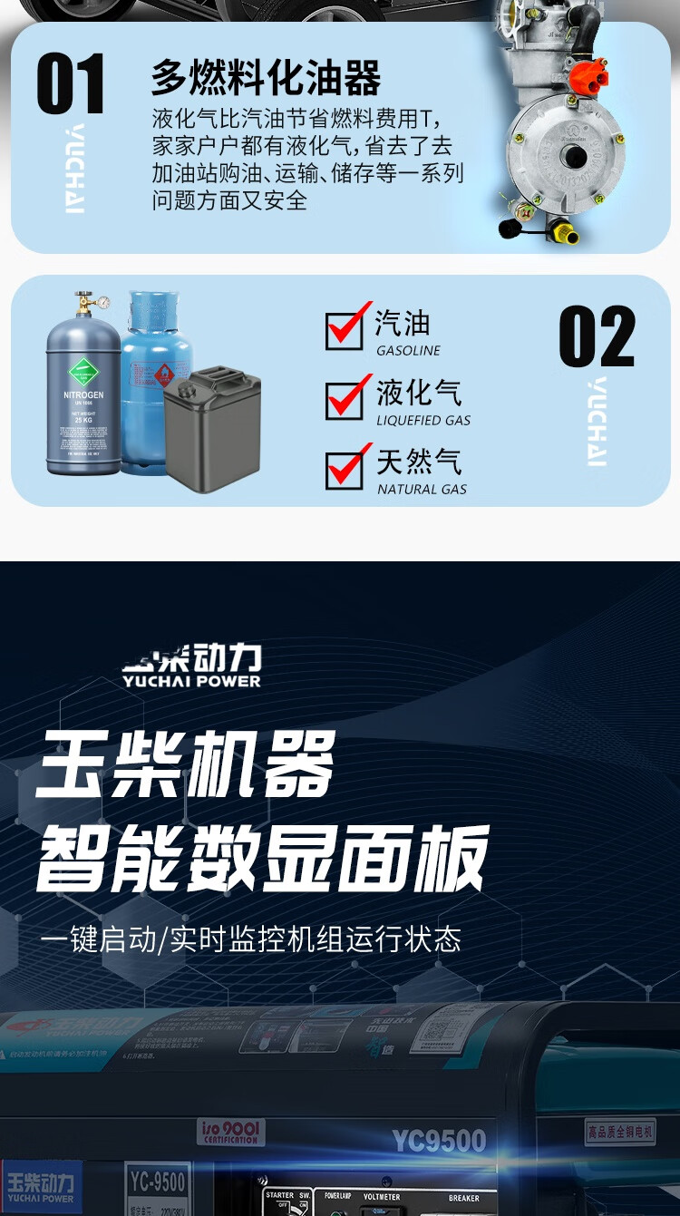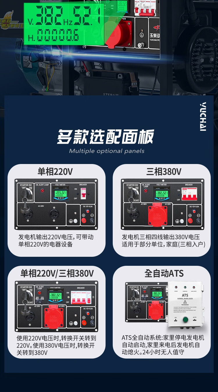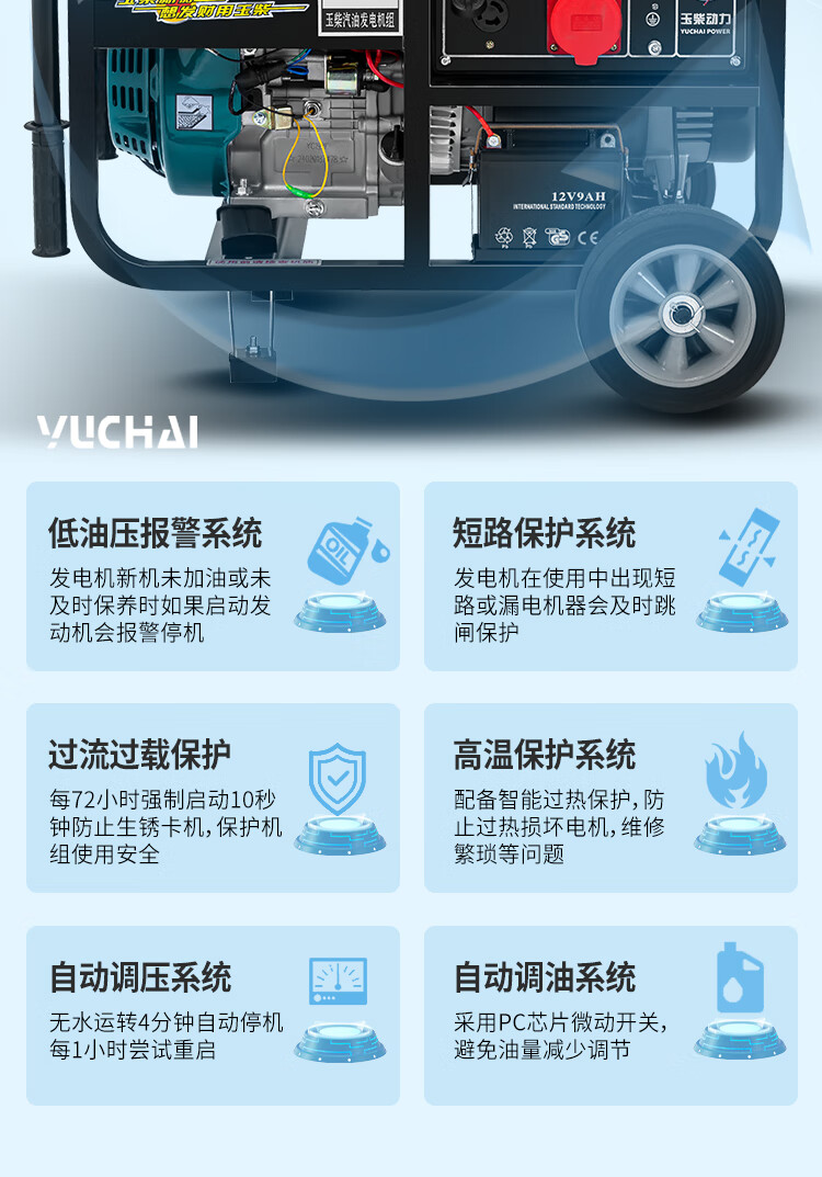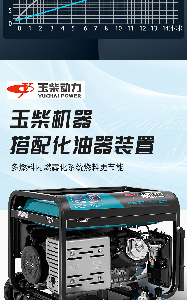 Yuchai Power (YUCHAI POWER) copper wire small household 3KW gasoline generator set 5/6/8/10 kW 220 single-phase three-phase 380V multi-fuel 3.5KW hand-start gasoline 220V