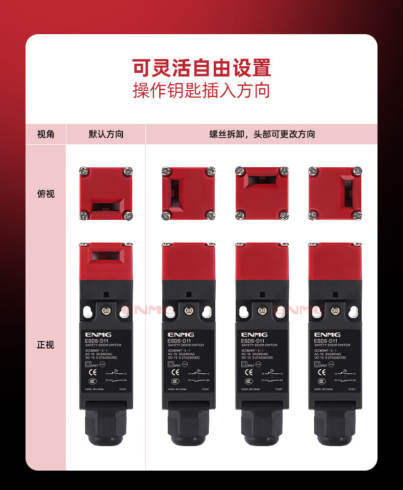 Enjue safety door switch latch-type door-opening power supply elevator equipment limit stroke safety door switch forced breaking contact horizontal key latch ESDS-K1
