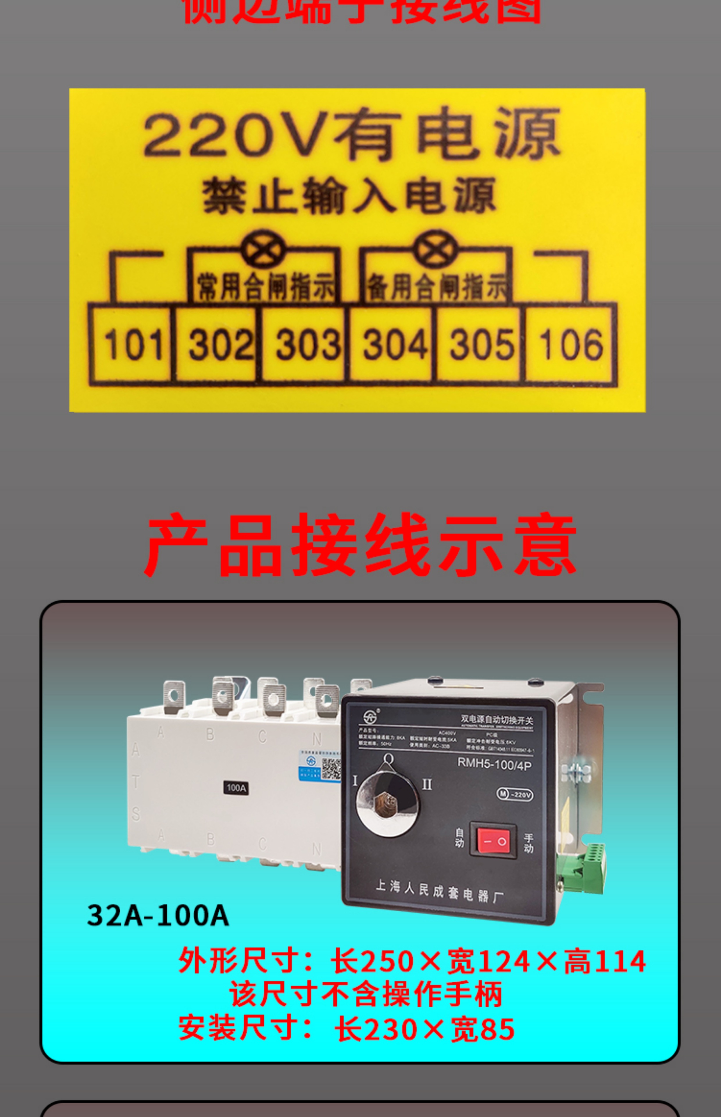Dual power automatic transfer switch 380V three-phase four-wire 4P63A two in and one out ATS switch 16A 4p