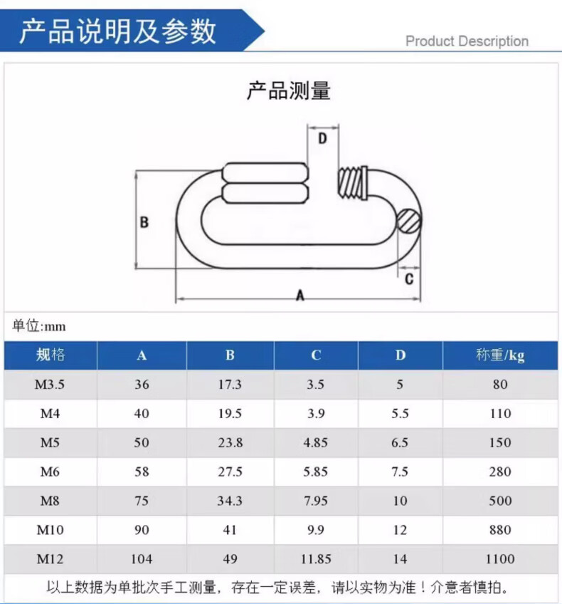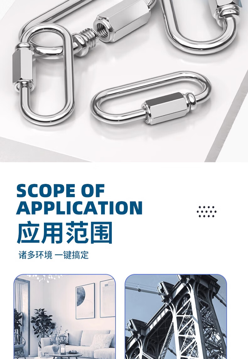 Tianzhuo Hardware Quick Connector 304 Stainless Steel Connector Ring Track Buckle Rock Climbing Mountaineering Safety Buckle Chain Buckle Ring with Lock Hanging Buckle M5