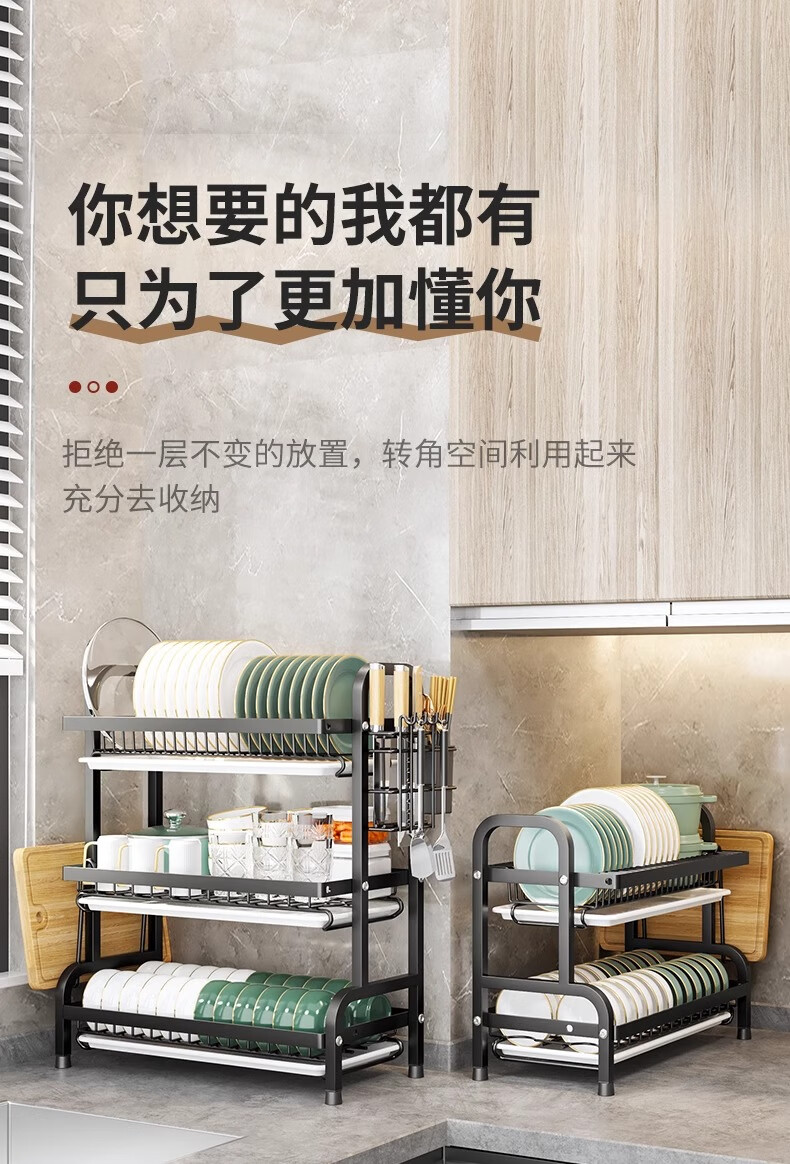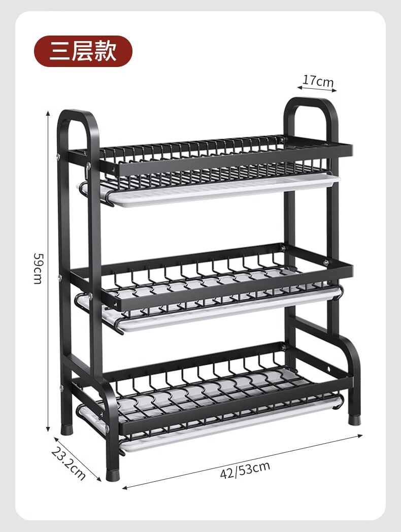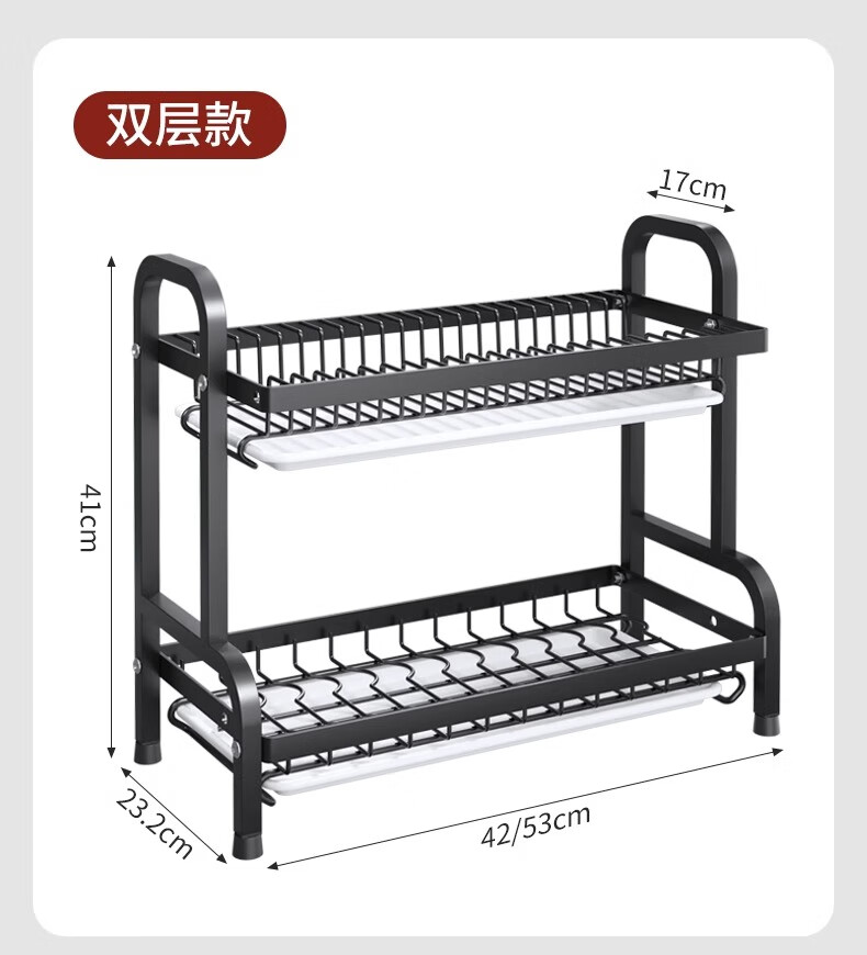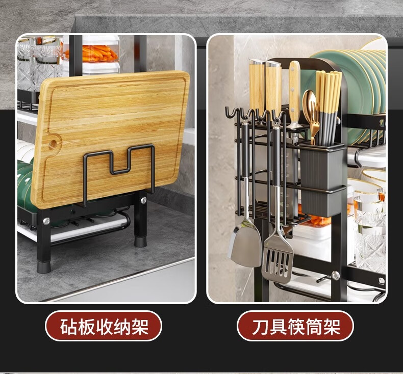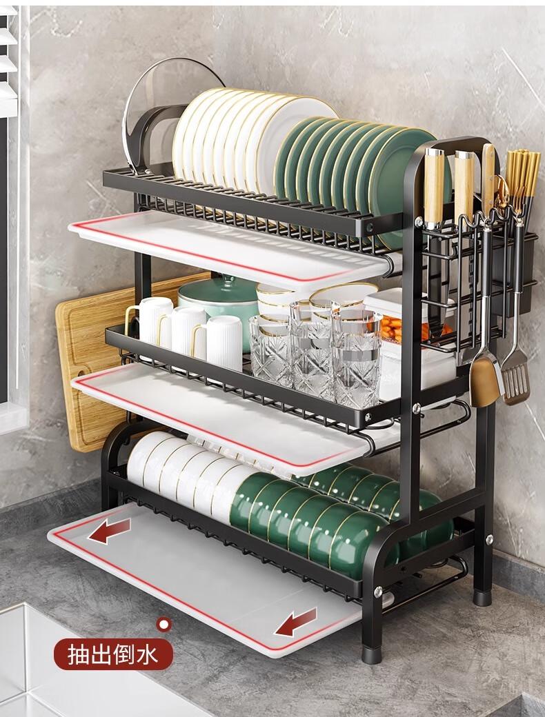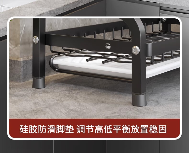 Nifeng Kitchen Dish Drain Rack Dishes Pull-out Storage Rack Countertop Chopsticks Knife Rack Dishes Rack Cupboard Black Small Double Layer - With Drainage Tray