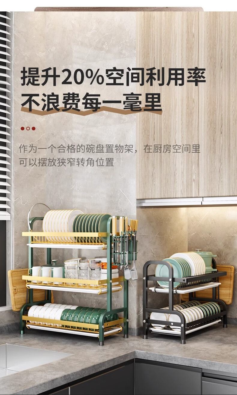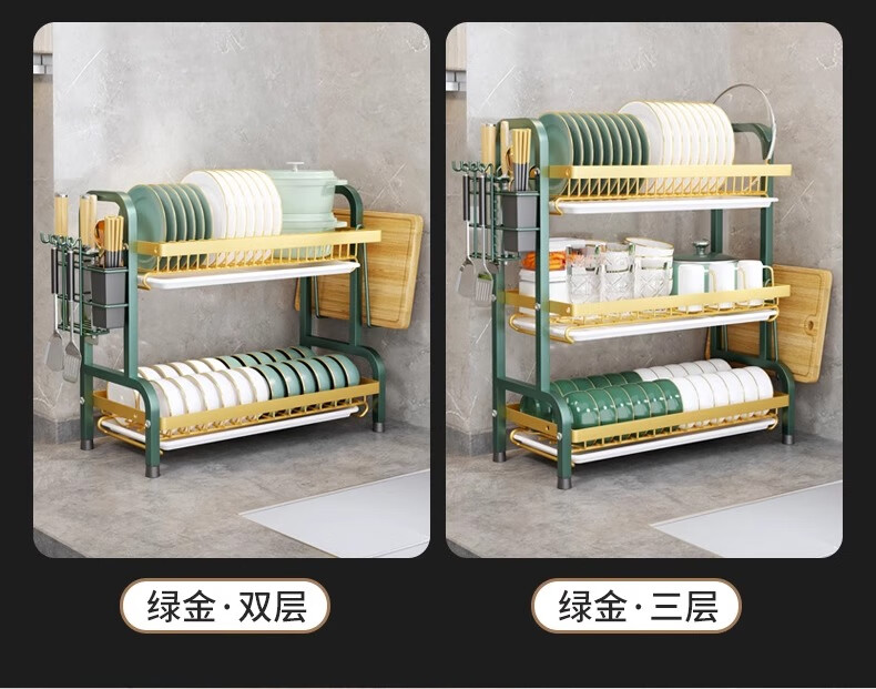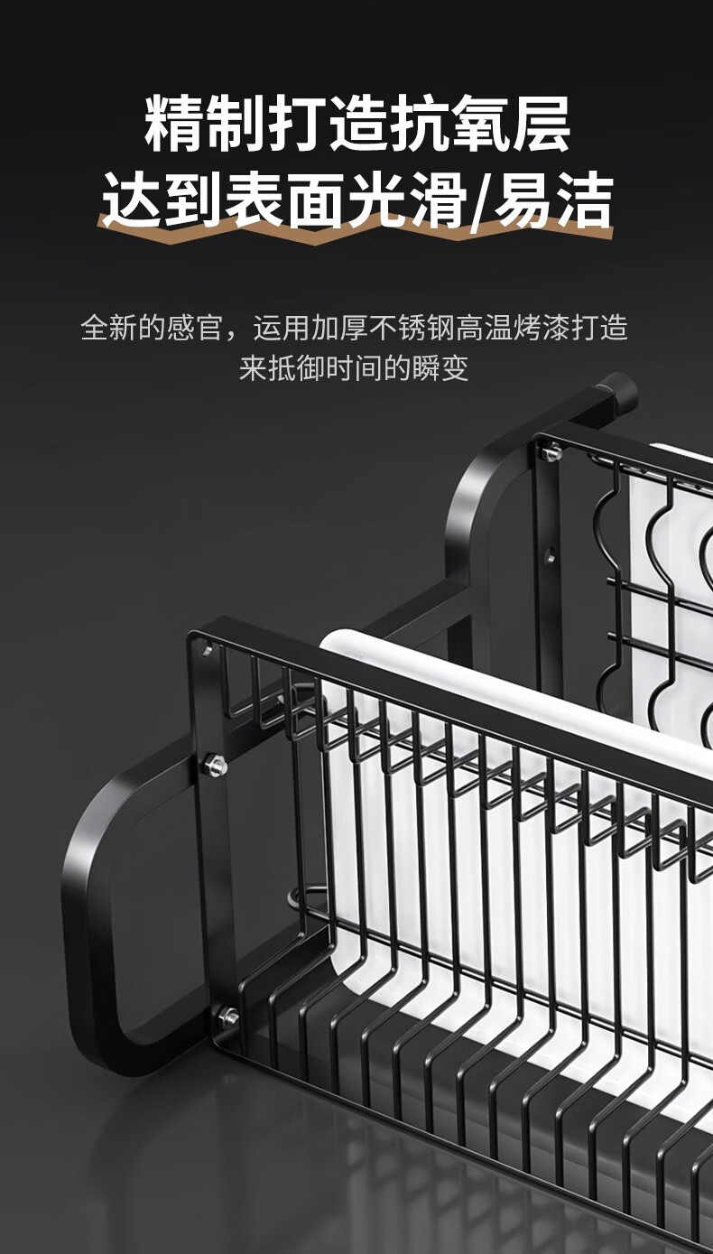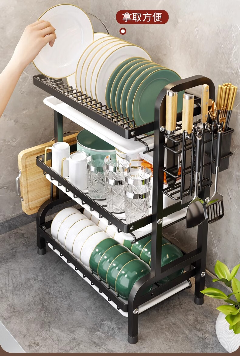Nifeng Kitchen Dish Drain Rack Dishes Pull-out Storage Rack Countertop Chopsticks Knife Rack Dishes Rack Cupboard Black Small Double Layer - With Drainage Tray