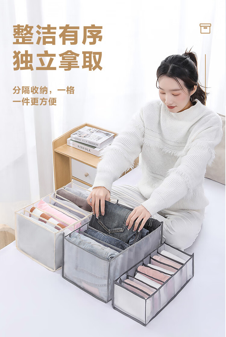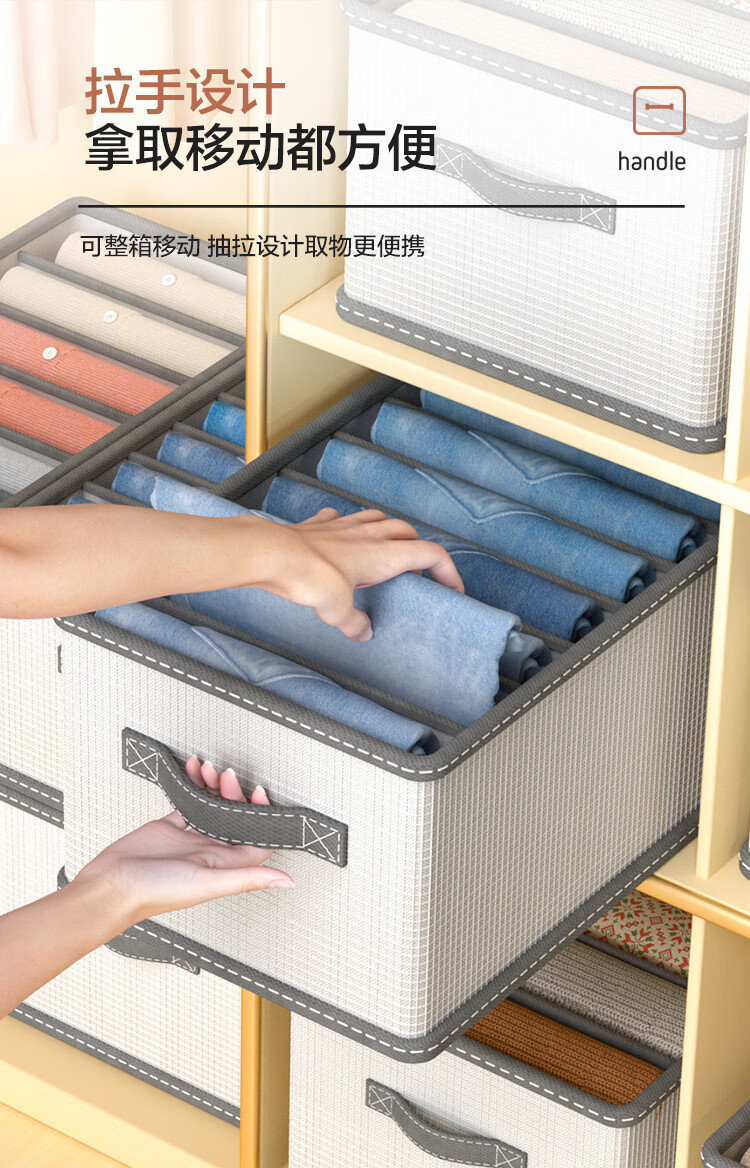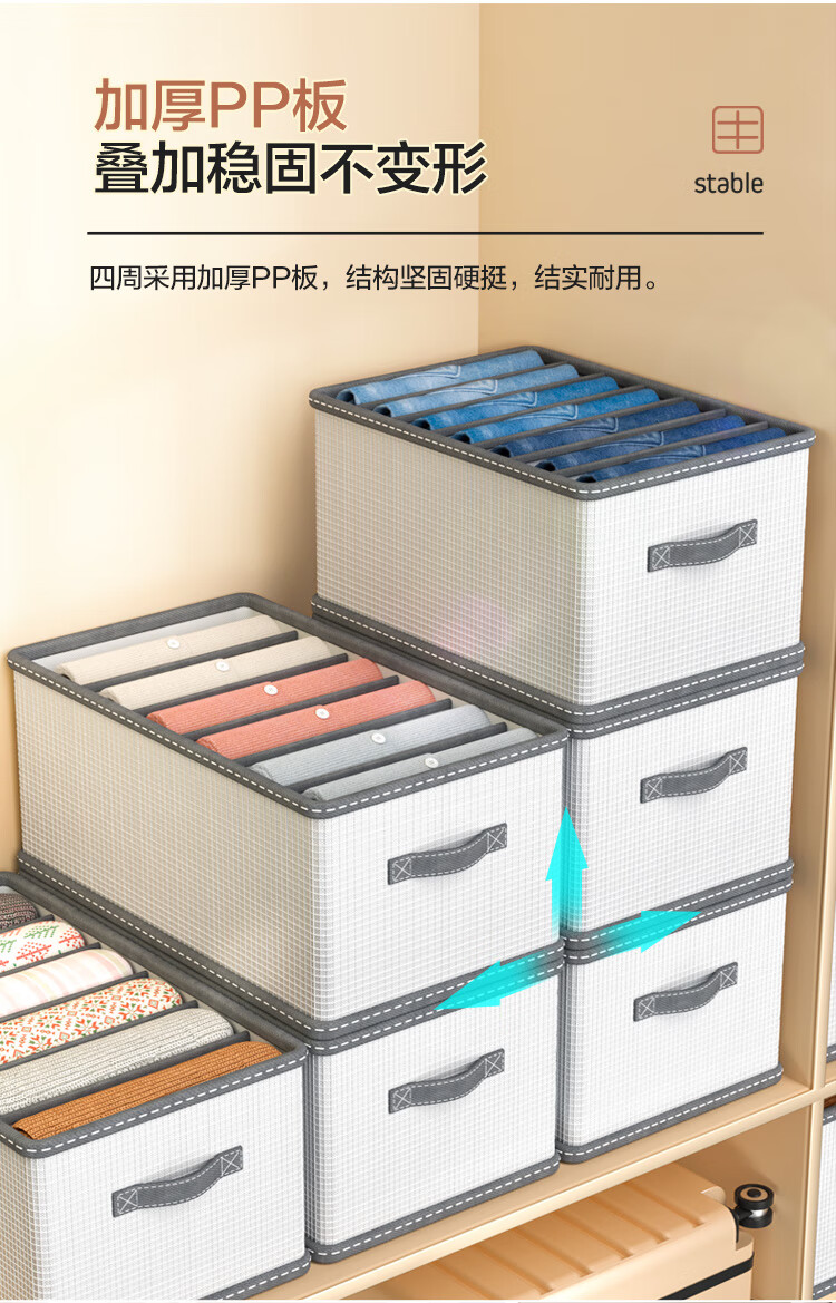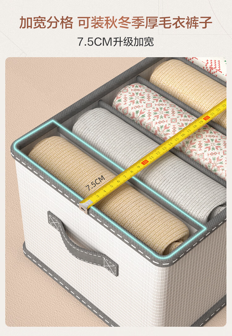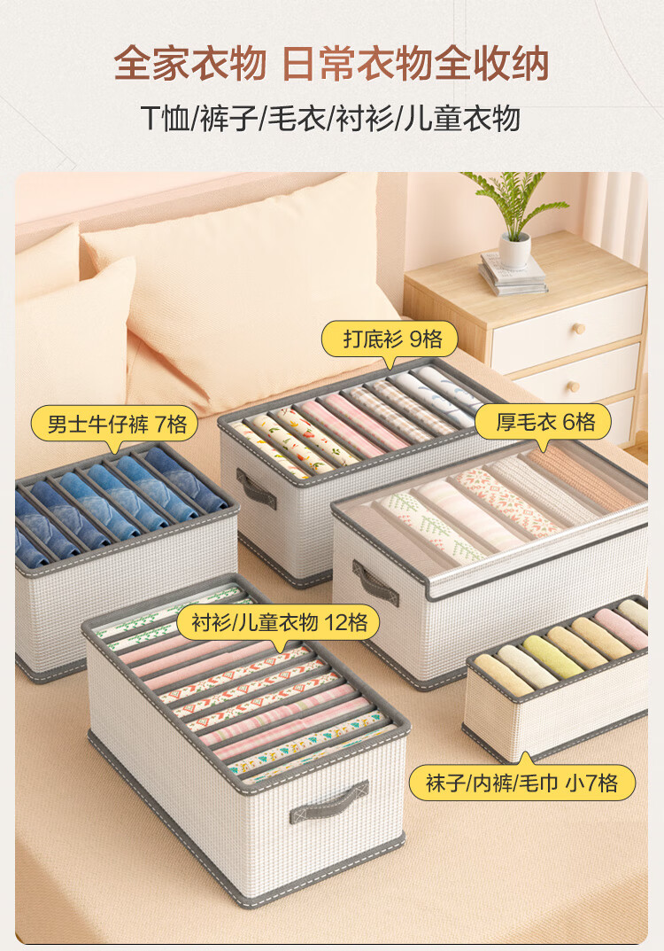 JD Logistics Clothing Storage Basket Foldable Household Seasonal Clothes and Pants Fabric Non-Woven Wardrobe Organizer Upgraded Storage Compartment Huge 7 Grids