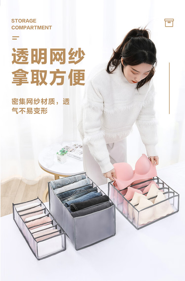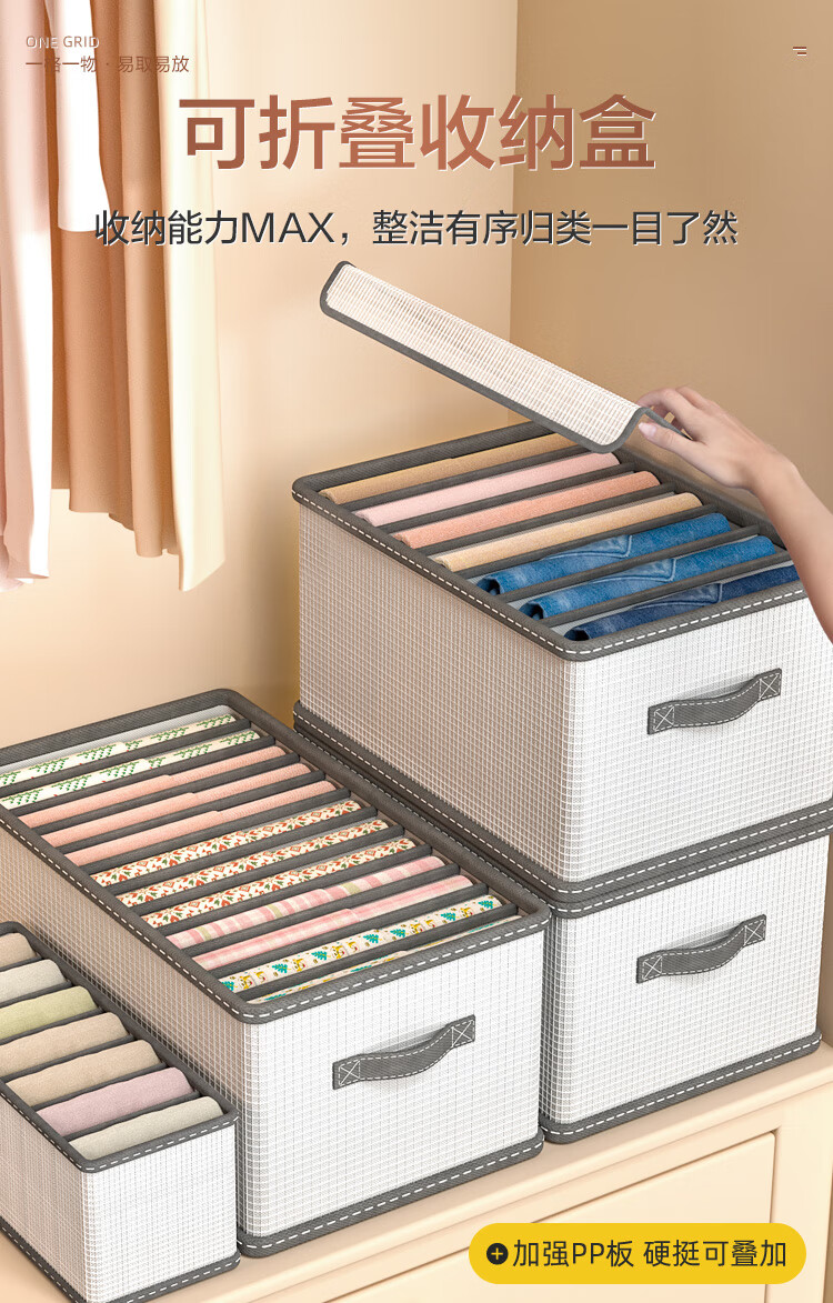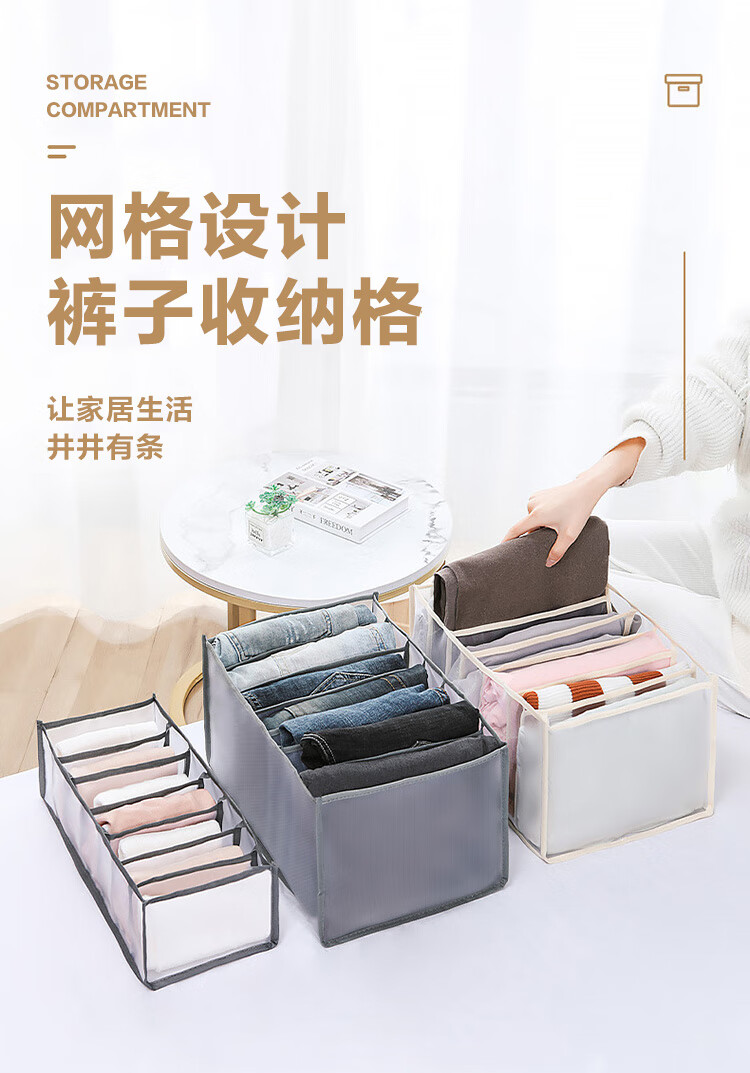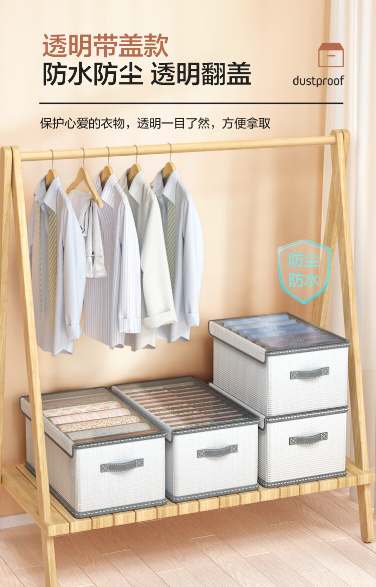 JD Logistics Clothing Storage Basket Foldable Household Seasonal Clothes and Pants Fabric Non-Woven Wardrobe Organizer Upgraded Storage Compartment Huge 7 Grids