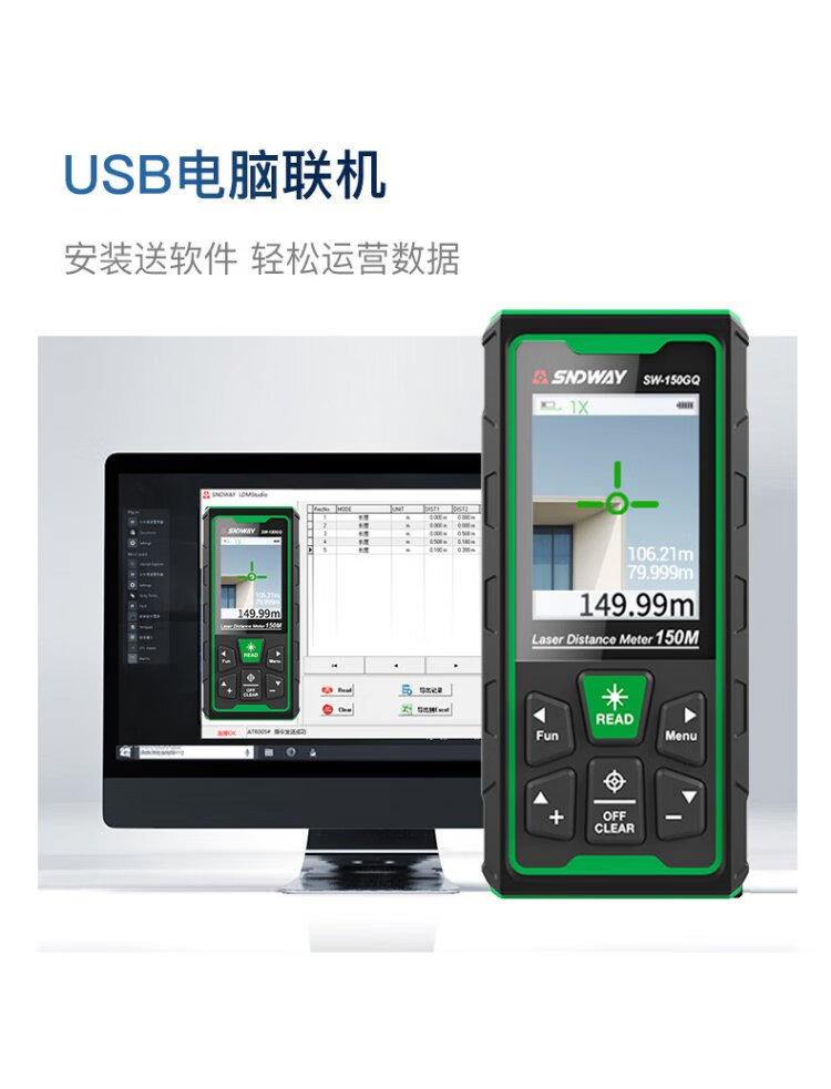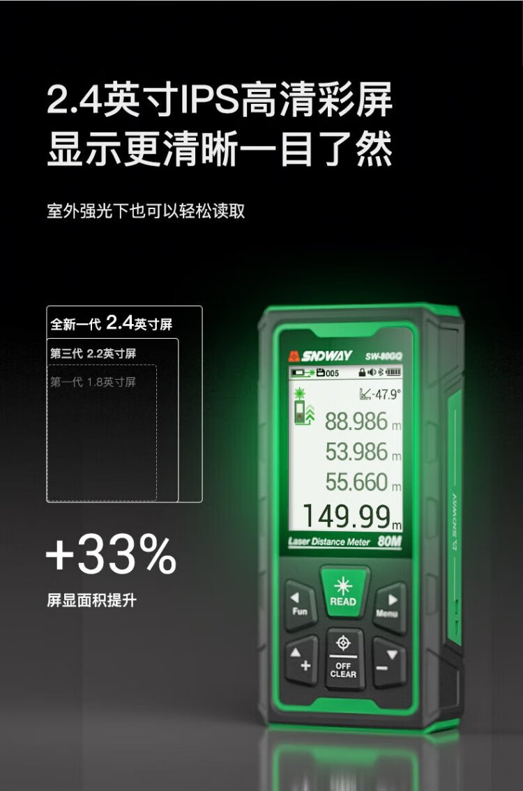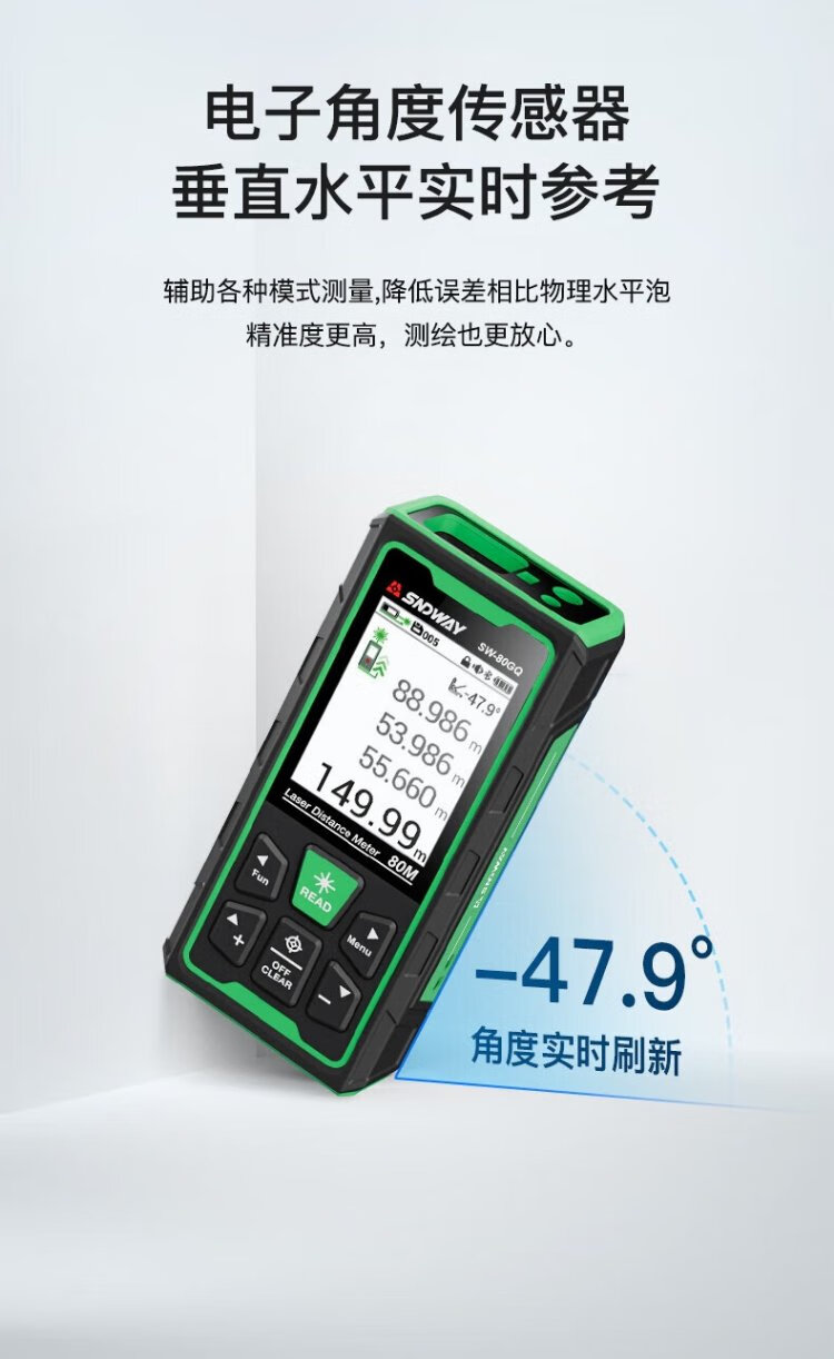 Shendawei outdoor laser rangefinder infrared industrial measuring instrument high-precision handheld green light electronic ruler with camera assist SW-GQ80 (80 meters outdoor camera assist)
