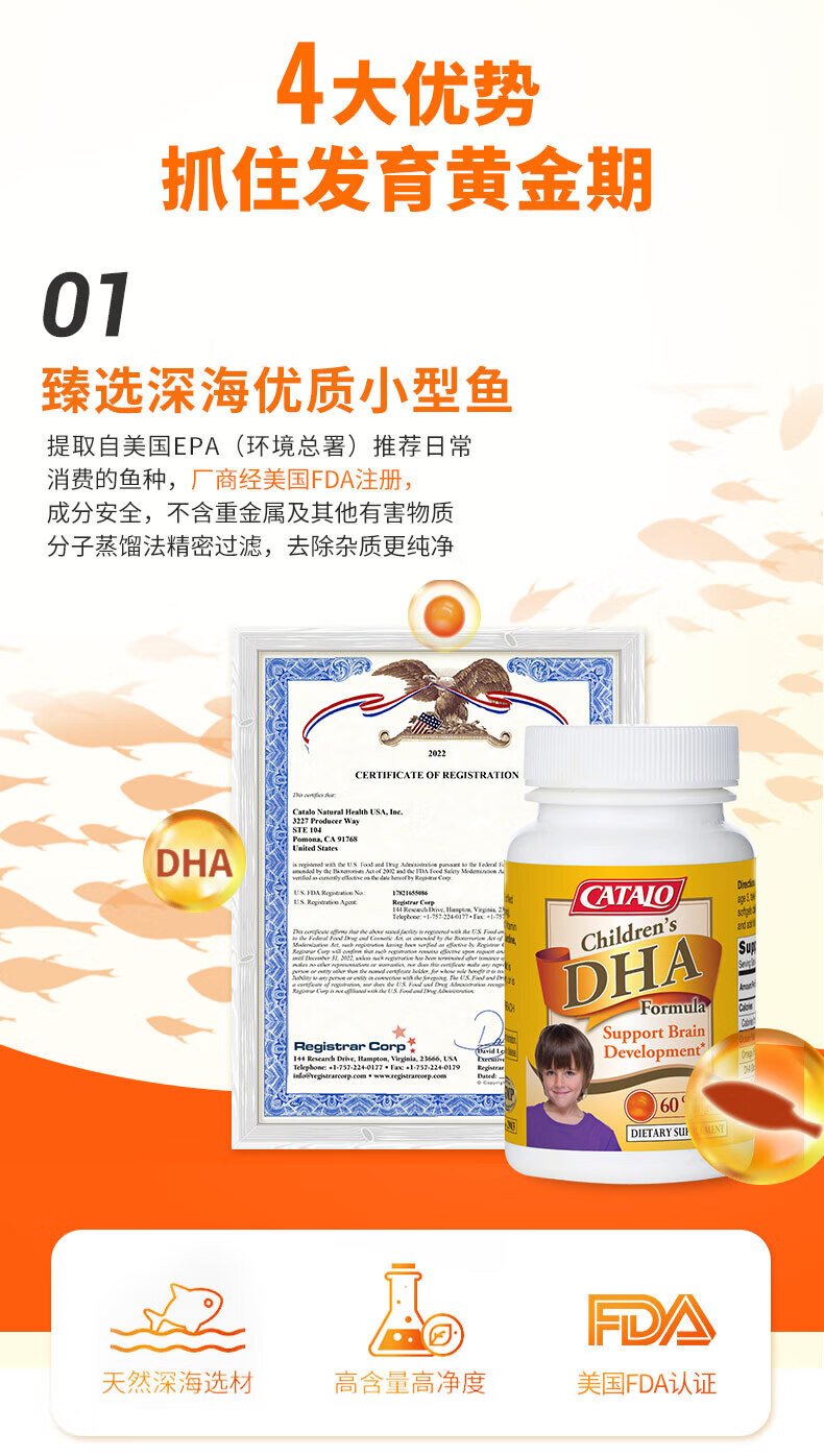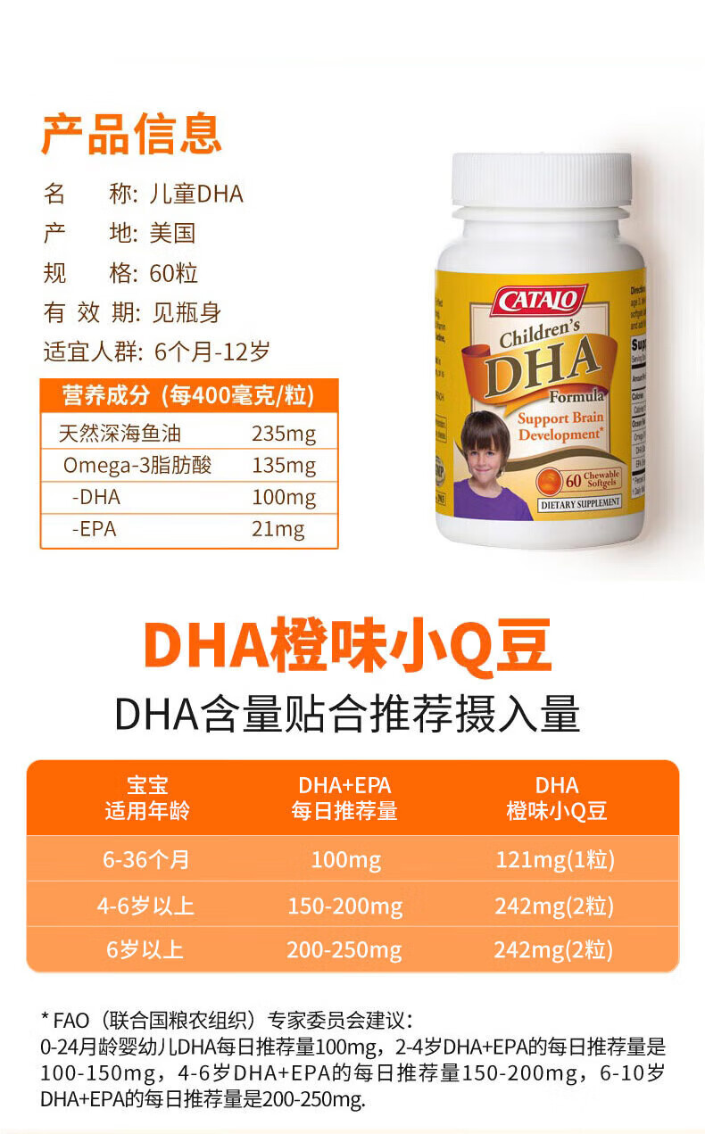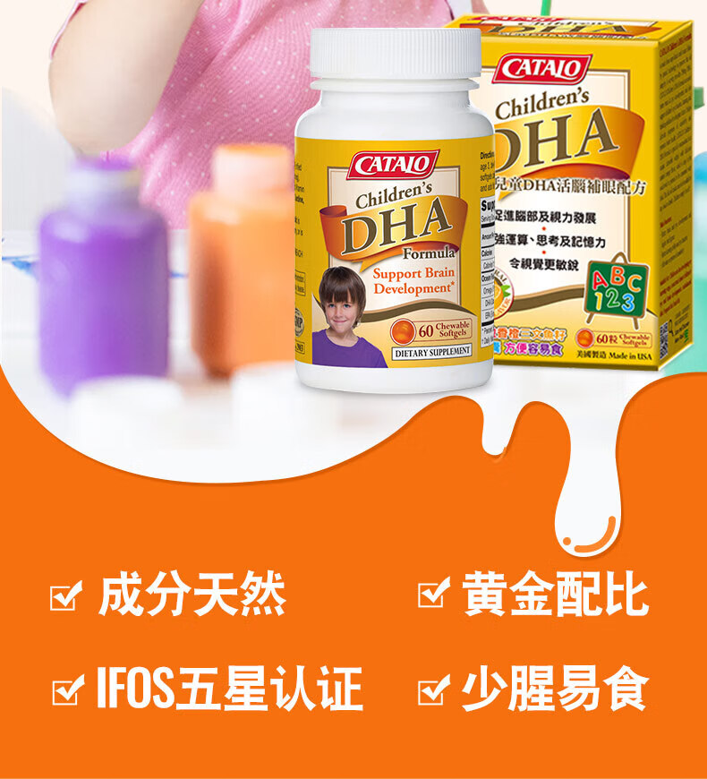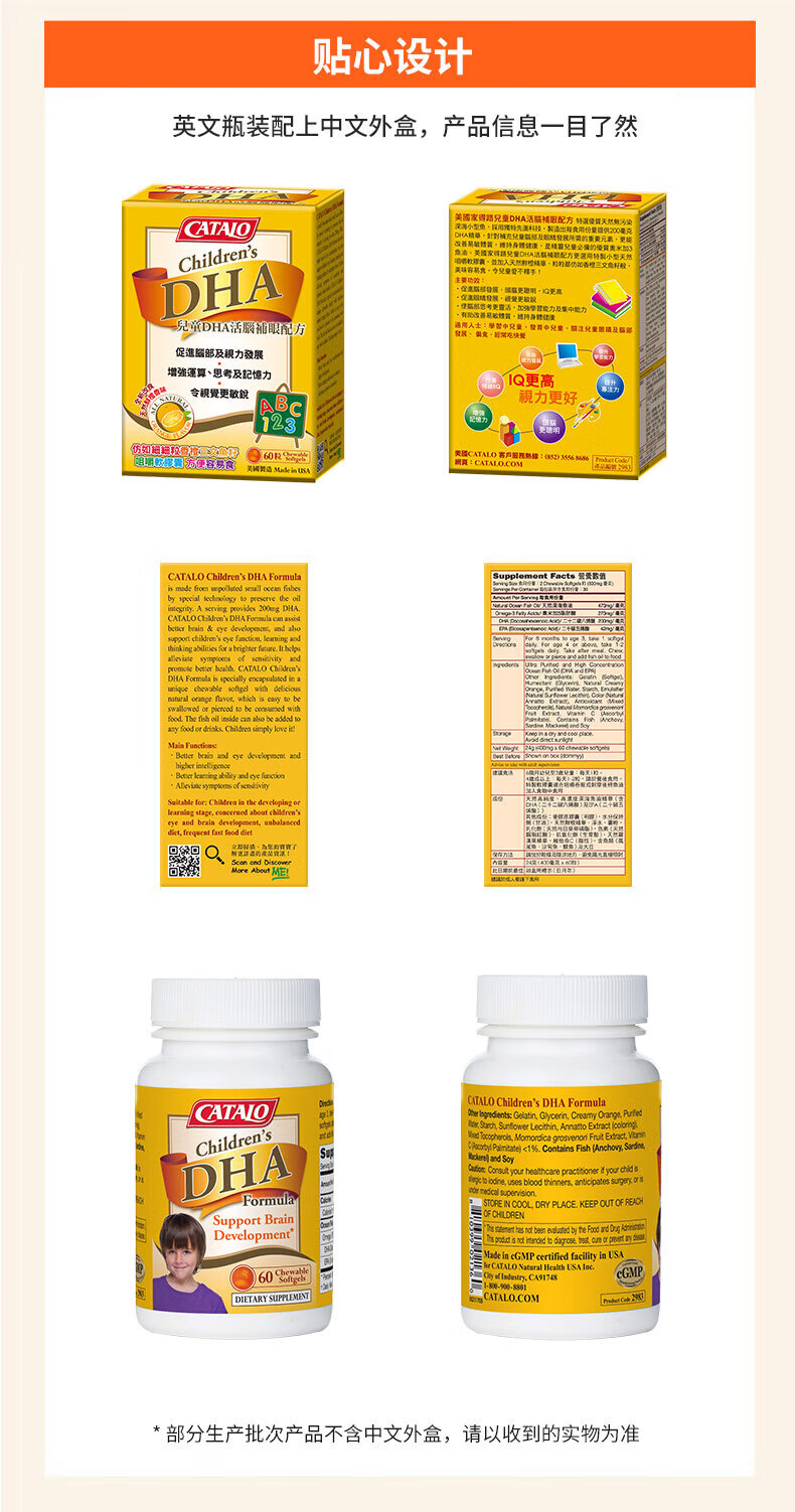 CATALO Children's DHA Fish Oil Soft Capsules Containing Lutein Infant Nutritional Products Little Q Beans Orange Flavor 60 Capsules