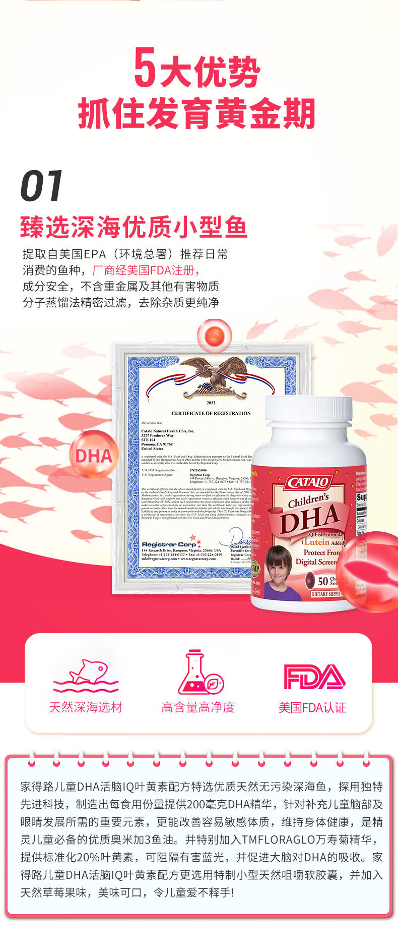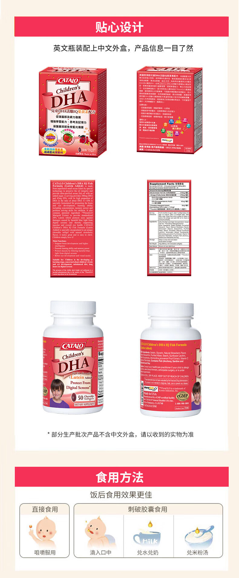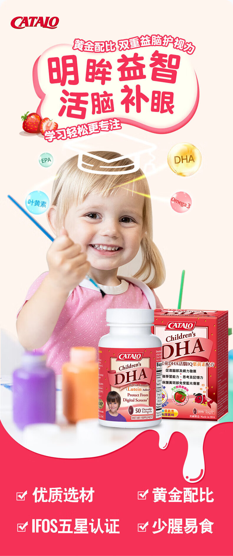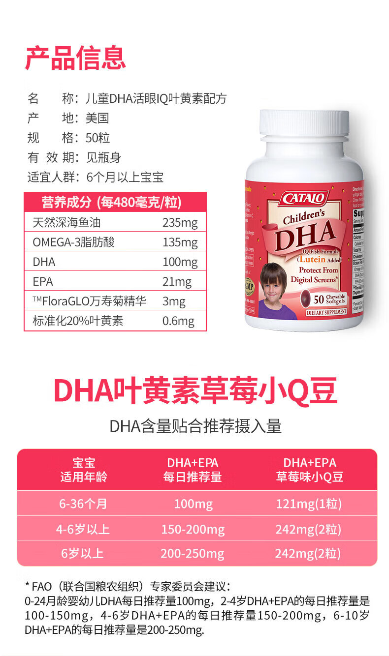 CATALO Children's DHA Fish Oil Soft Capsules Containing Lutein Infant Nutritional Products Little Q Beans Orange Flavor 60 Capsules