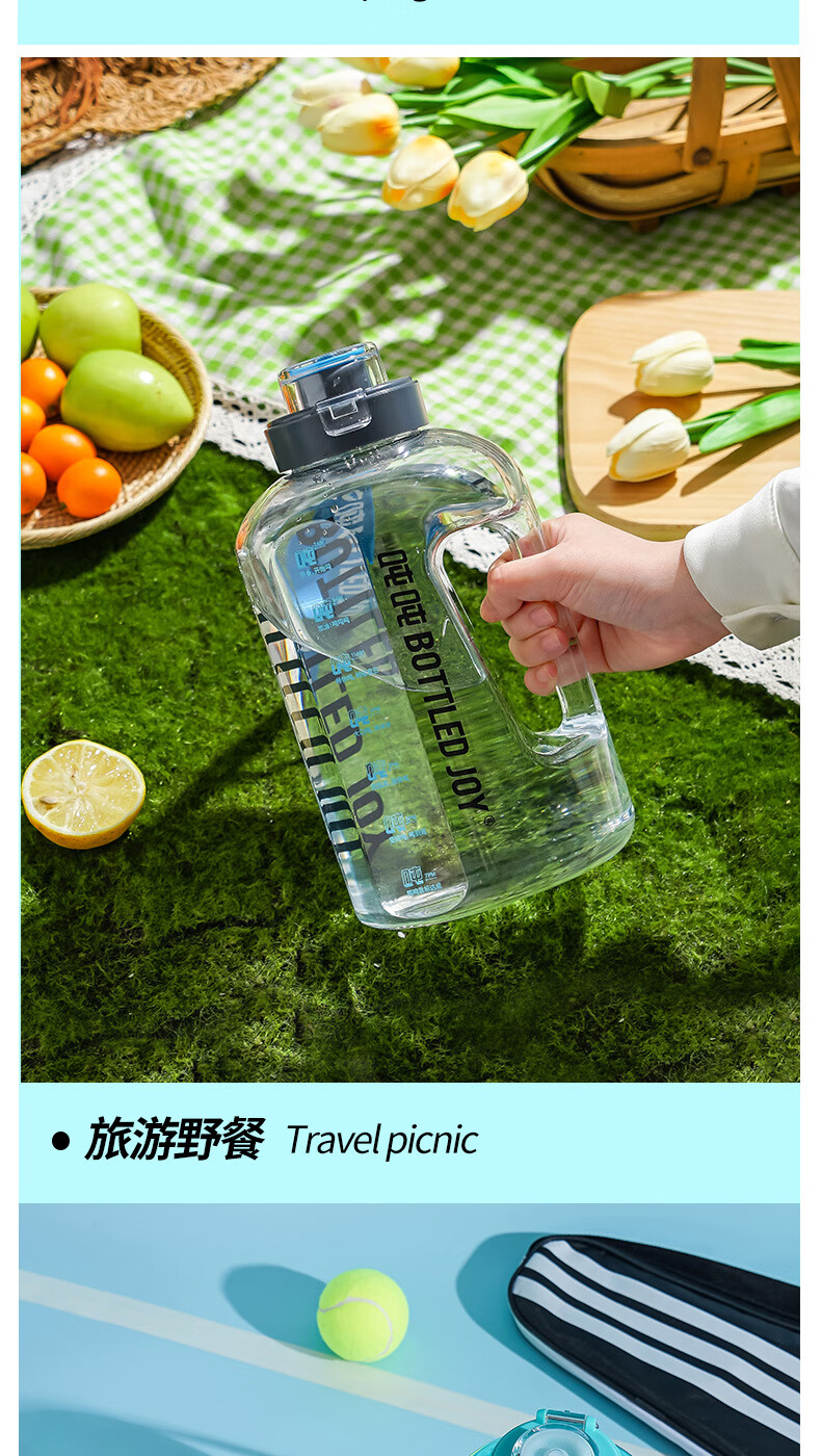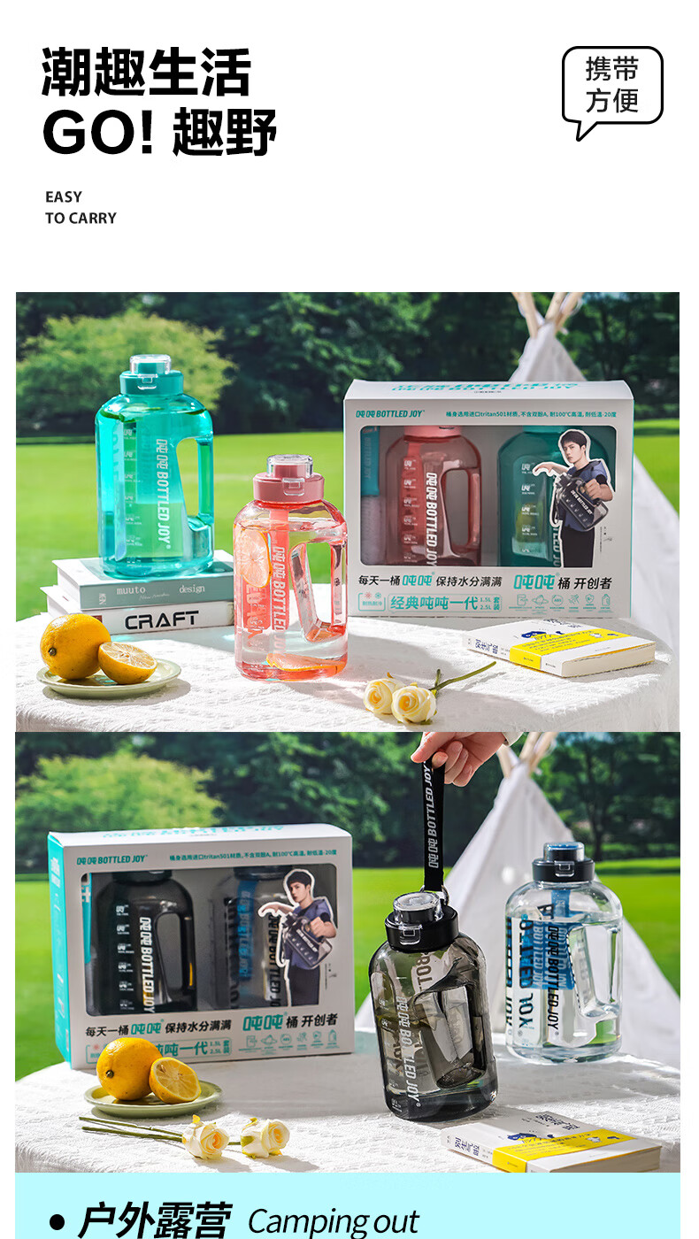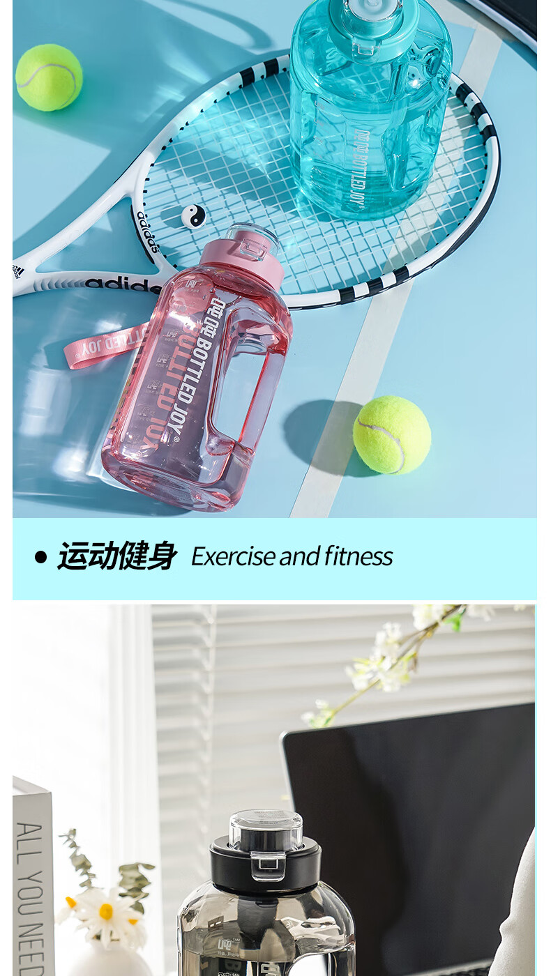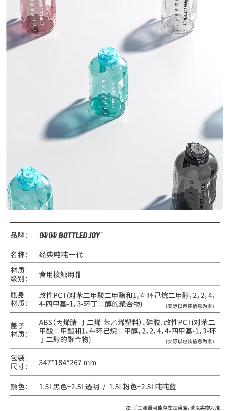 Tons of BOTTLED JOY Classic Generation Sports Water Bottle Set for Men and Women Large Capacity Tons of BOTTLE Fitness Dayton Cup Classic Generation - Black 1.5L + Transparent 2.5L