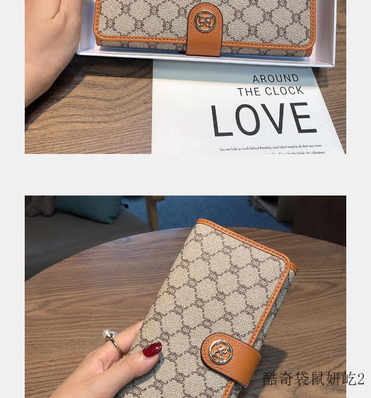 Kuqi Kangaroo long clip mobile phone wallet all-in-one bag women's genuine leather 2025 new wallet women's large capacity high-end exquisite card apricot 10 card slot gift box