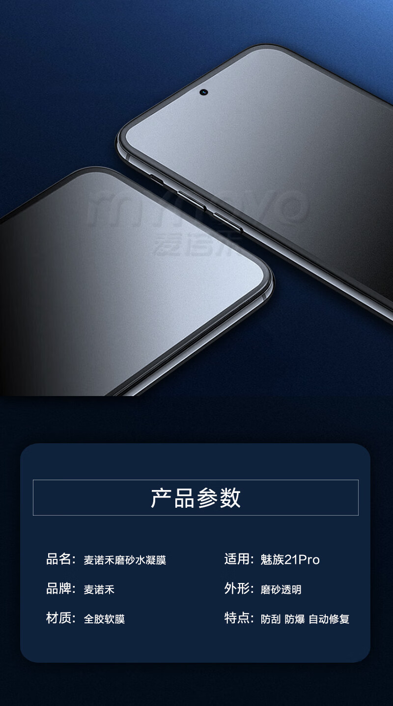 Manuohe fingerprint instant solution is suitable for Meizu 21pro e-sports frosted hydrogel film, strong anti-fingerprint, non-tempered mobile phone protective film, full screen coverage, game explosion-proof, Meizu 21pro e-sports frosted hydrogel film, 2 pieces