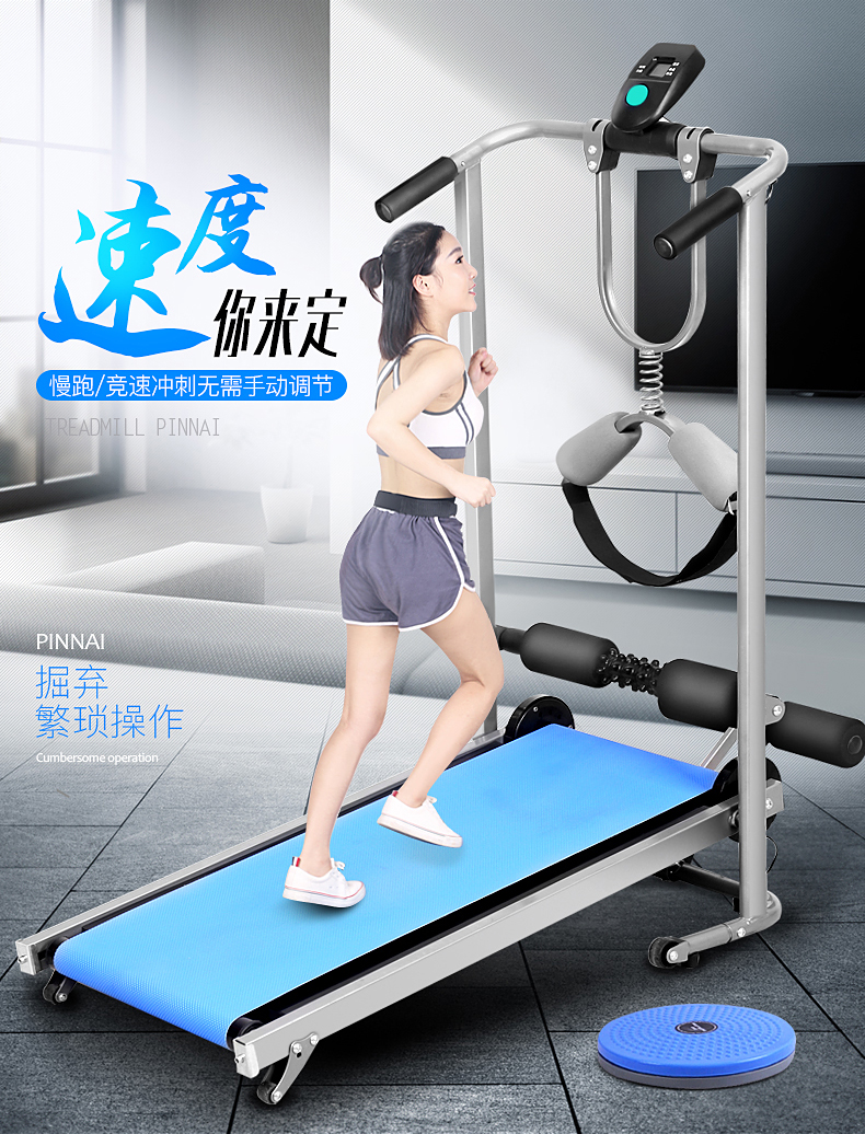Wankai home walking machine multi-functional indoor fitness equipment simple installation-free mechanical folding treadmill non-silent luxury model + sit-up frame + sweat belt