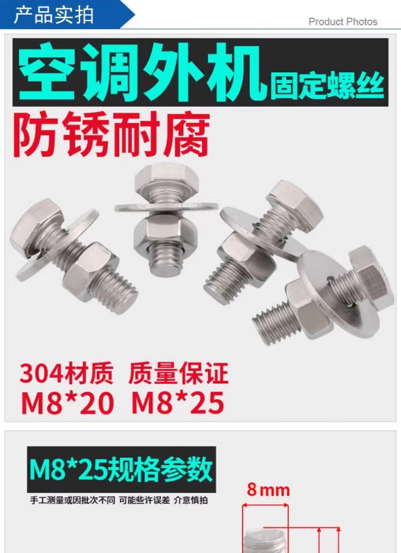 Tianzhuo Hardware 304 stainless steel air conditioner outdoor unit base mounting screw set bracket triangle assembly fixed base foot machine foot 304 stainless steel 8*25 5 sets