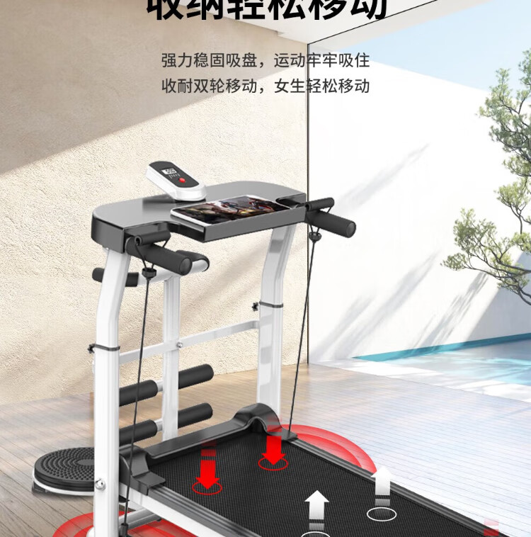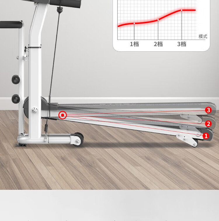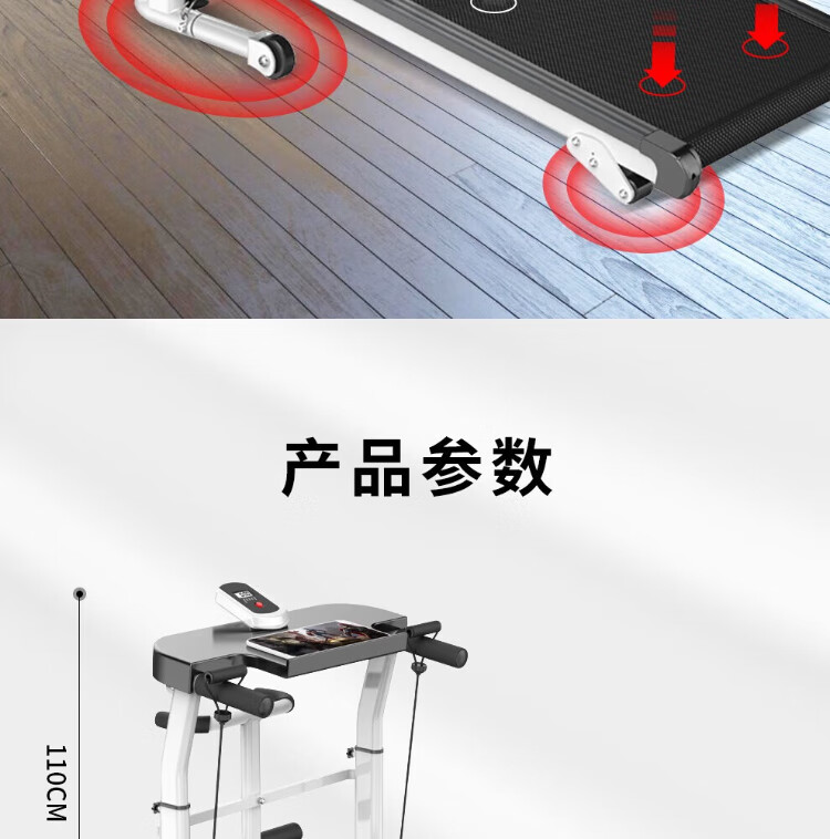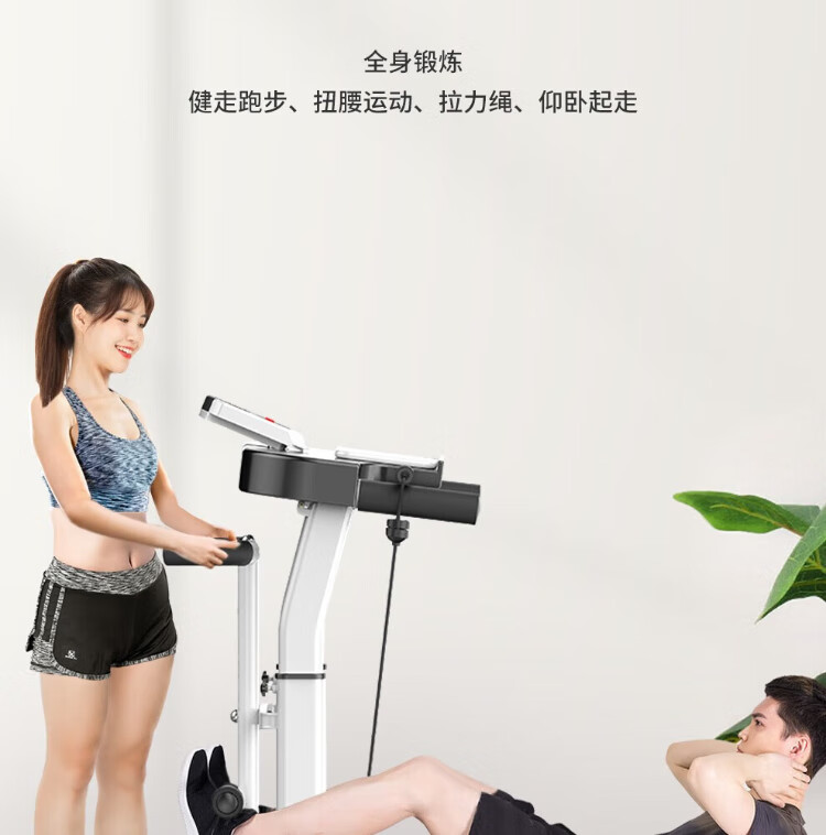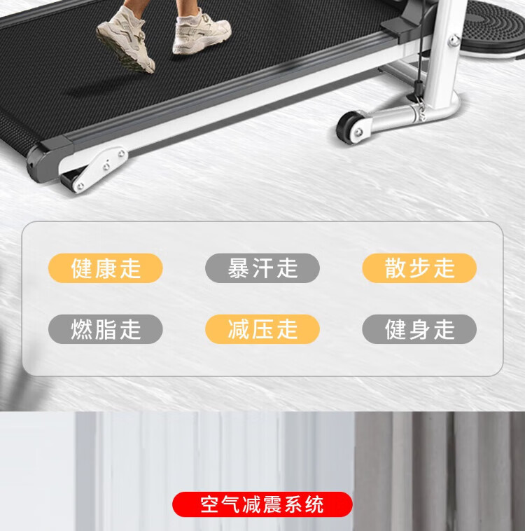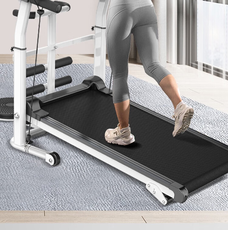Wankai household mini foldable multi-functional fitness equipment small simple walking machine mechanical treadmill without installation black A3 model + tension rope + sweat belt