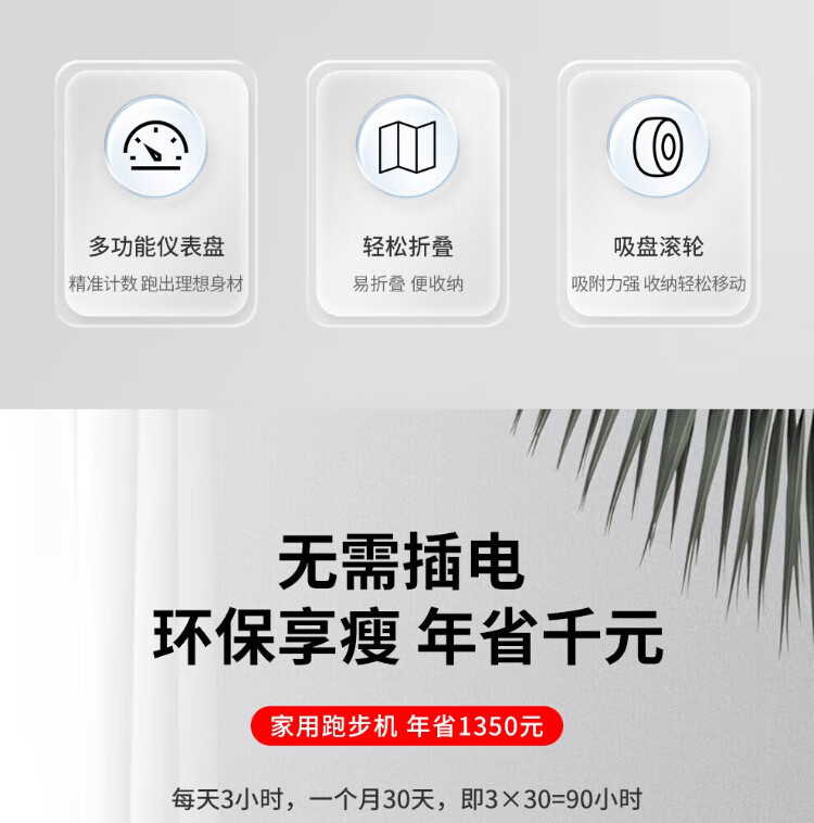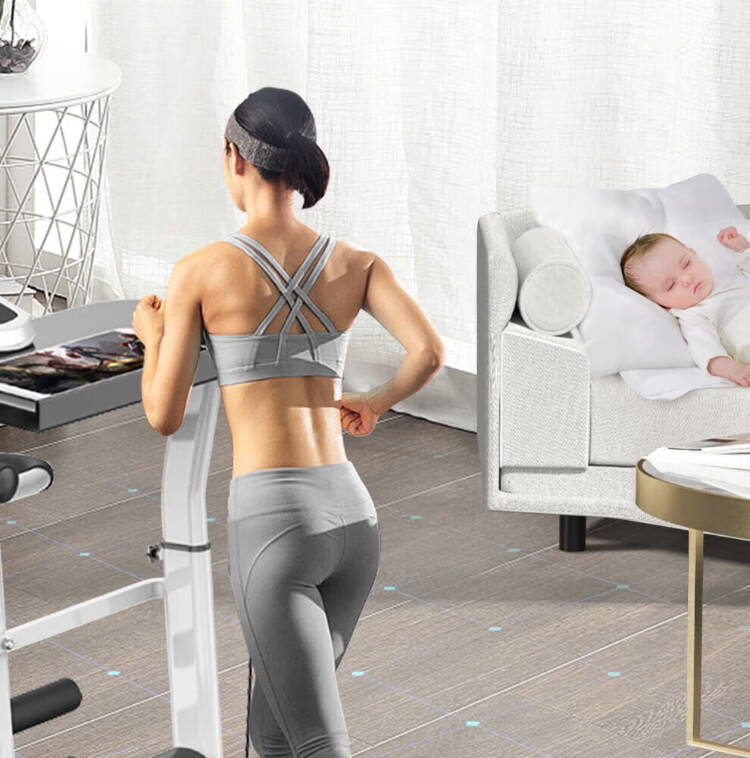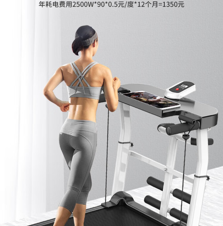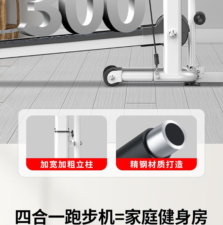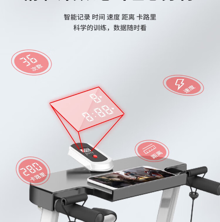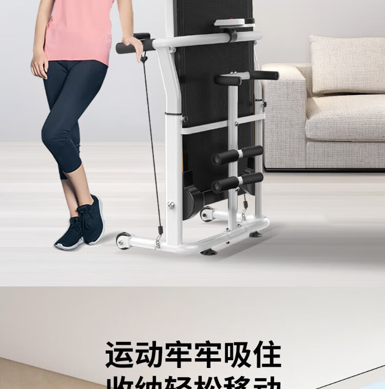 Wankai household mini foldable multi-functional fitness equipment small simple walking machine mechanical treadmill without installation black A3 model + tension rope + sweat belt