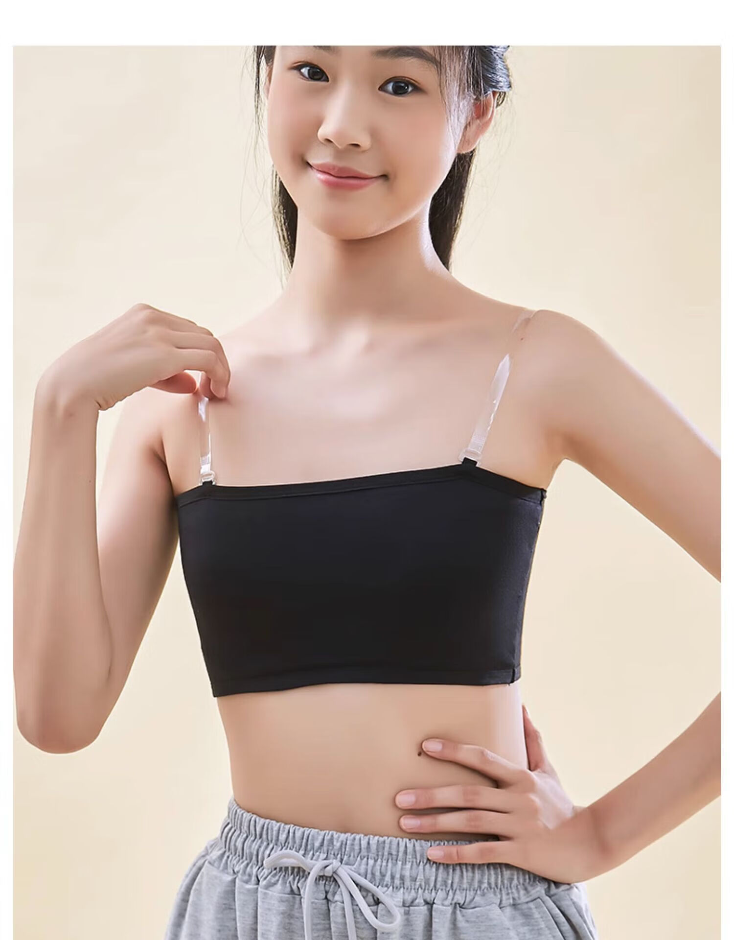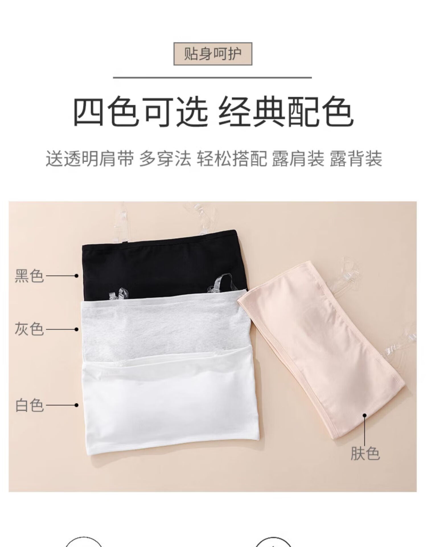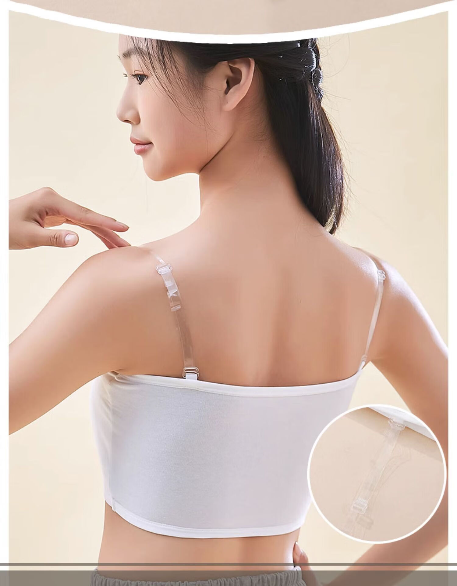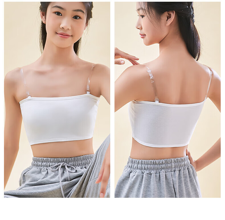 LangSha strapless underwear for women with transparent shoulder straps, junior high school students and high school students, anti-exposure, traceless tube top, small chest, thin style, white, 1 pair of transparent shoulder straps, no buckle on the back, S size 70-85 catties