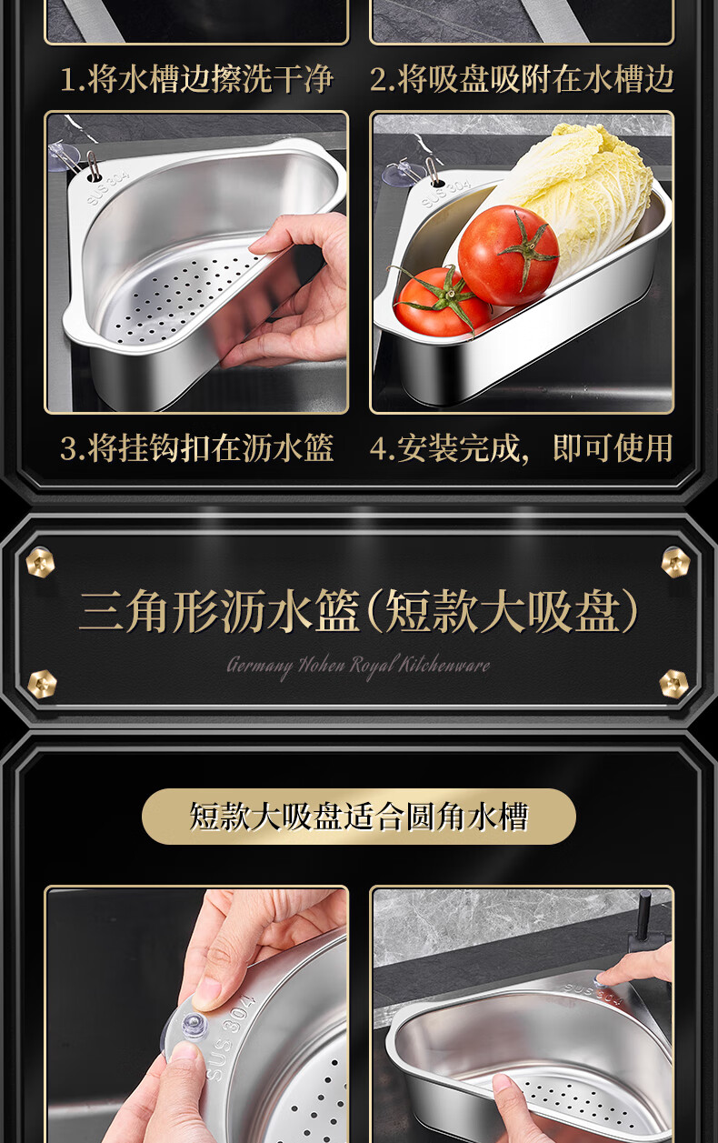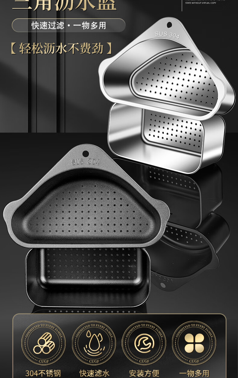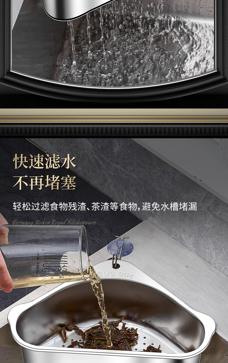 Kitchen Princess Stainless Steel Drain Basket Kitchen Sink Strainer Wash Basin Sink Leftovers Drain Triangular Drain Rack Square Silver 304 Steel Sink Strainer