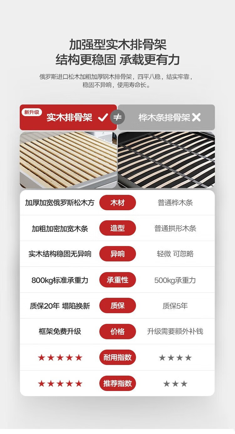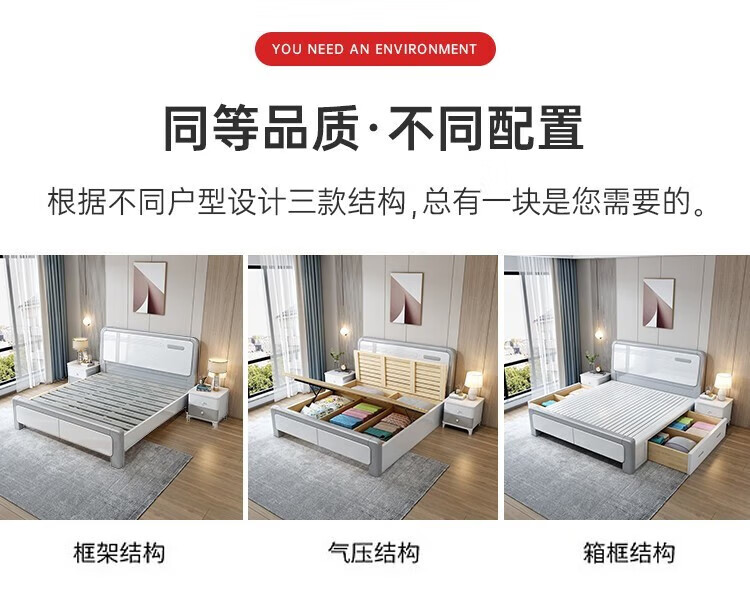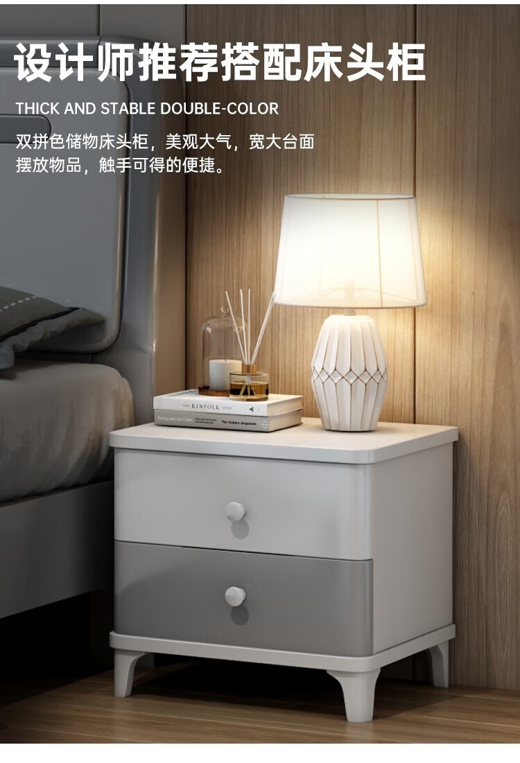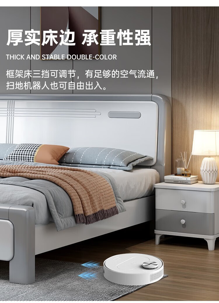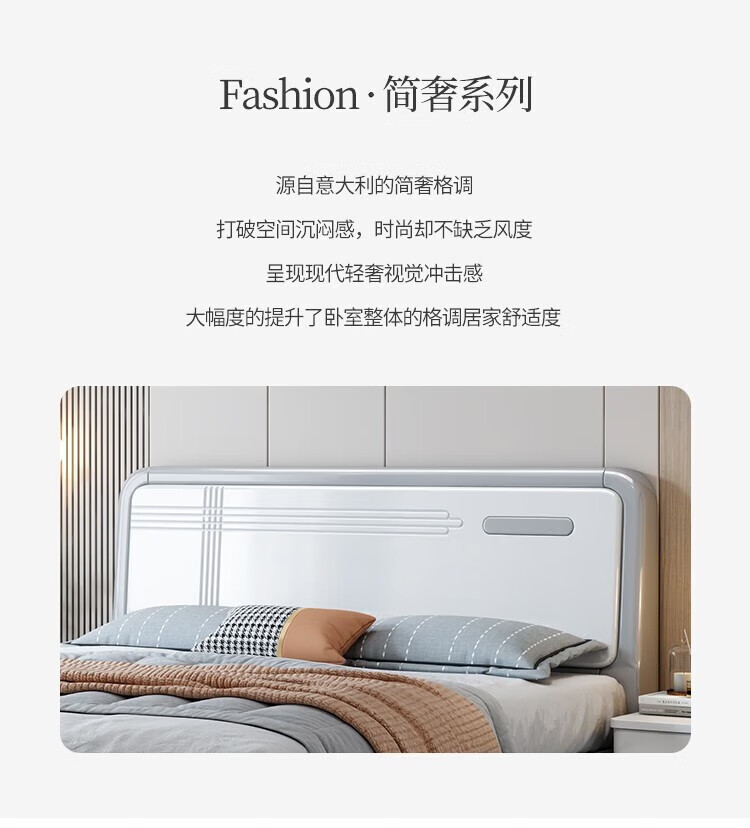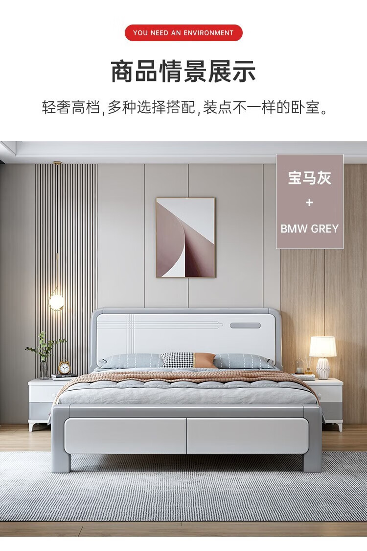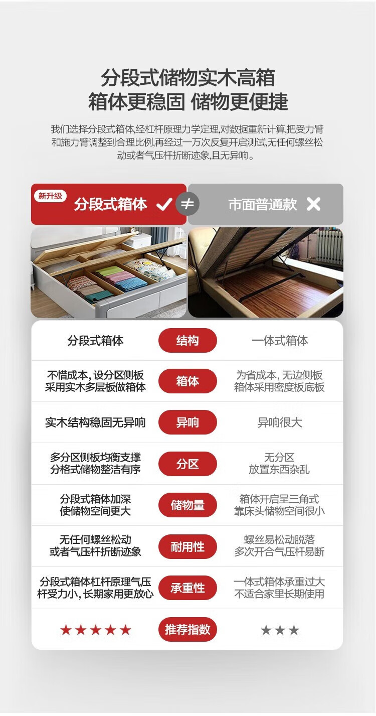 First year all solid wood bed light luxury bed modern simple master bedroom double bed white high box storage wedding bed bedroom furniture silent bed + bedside table * 1 + Tencel latex mattress 1.8 meters * 2 meters frame style
